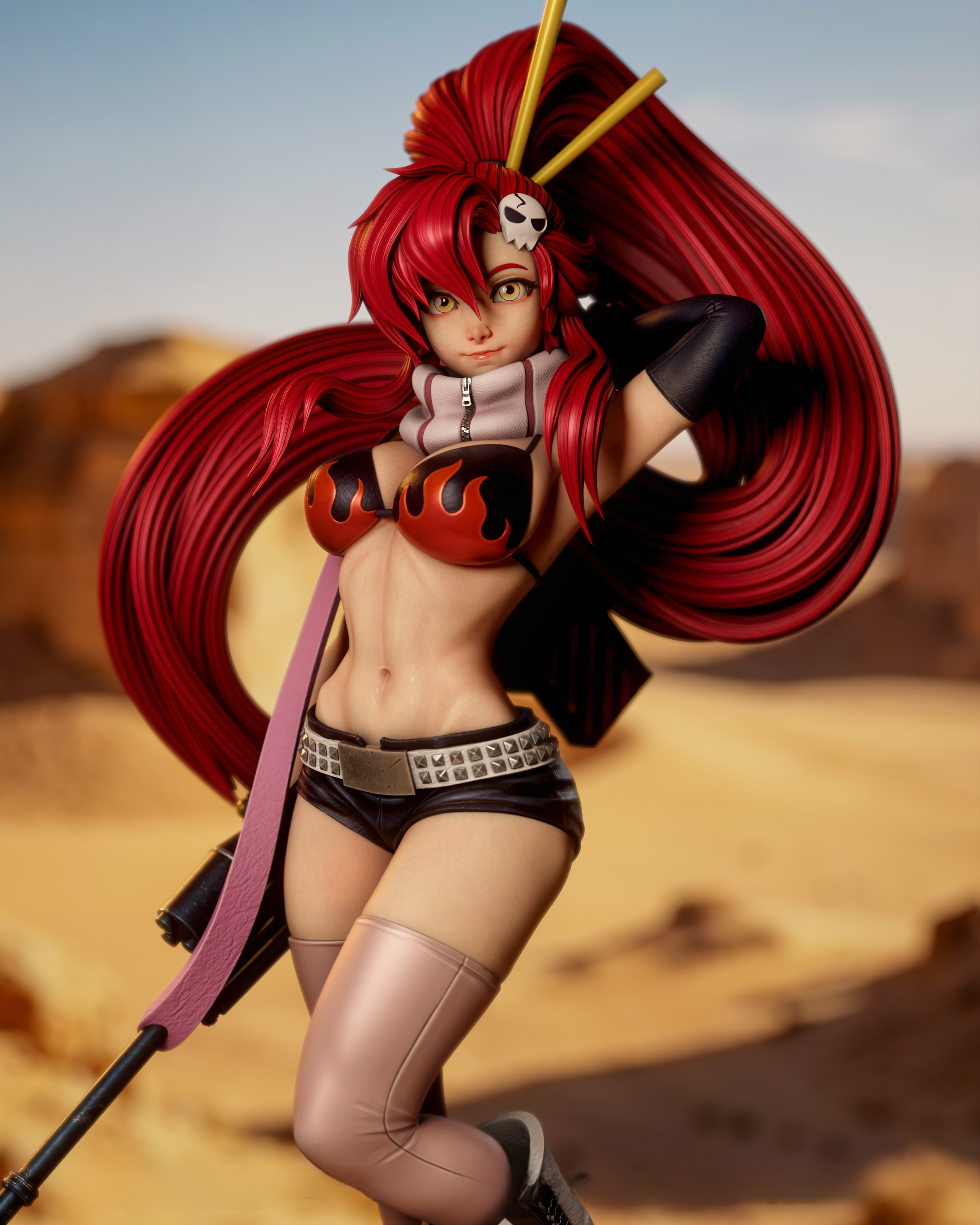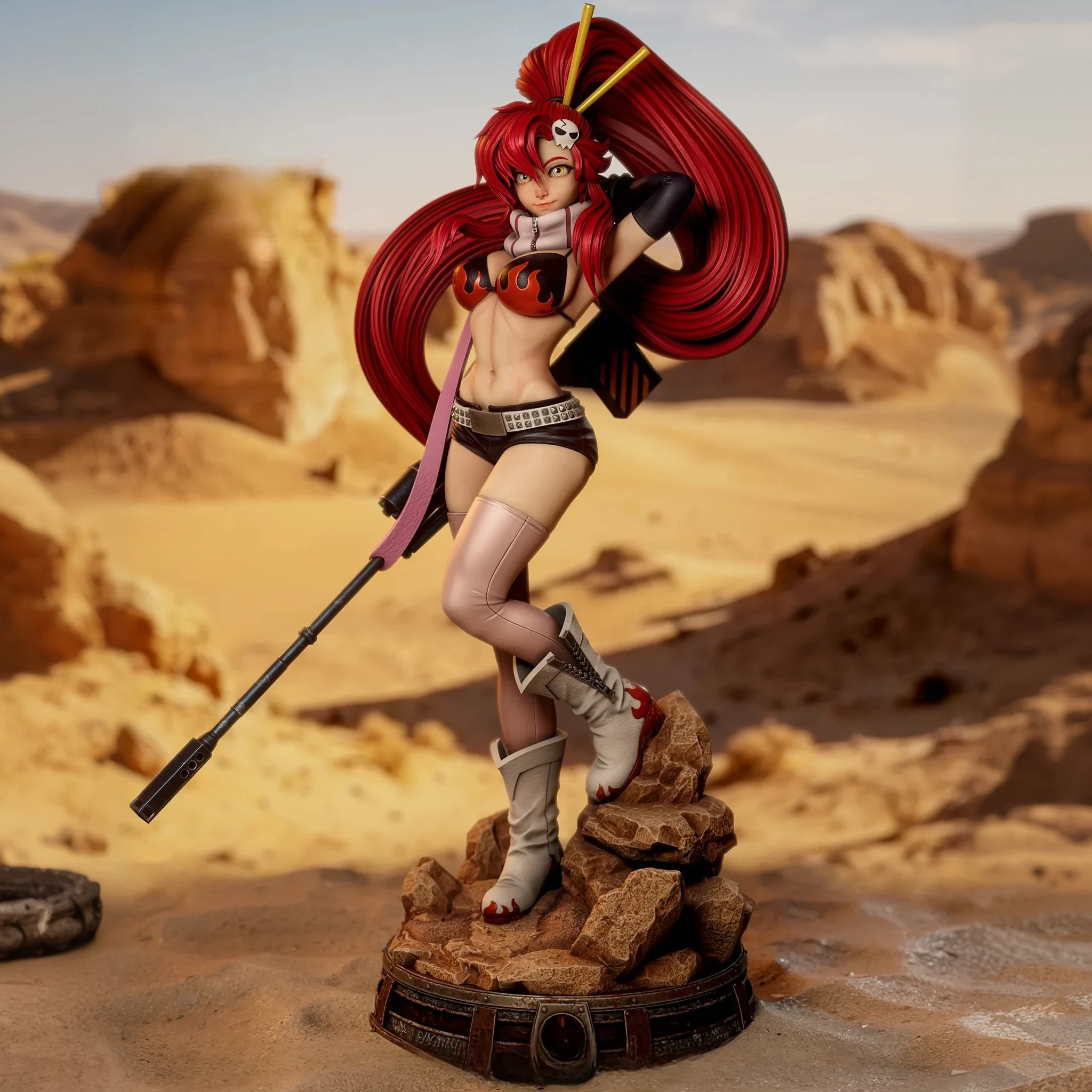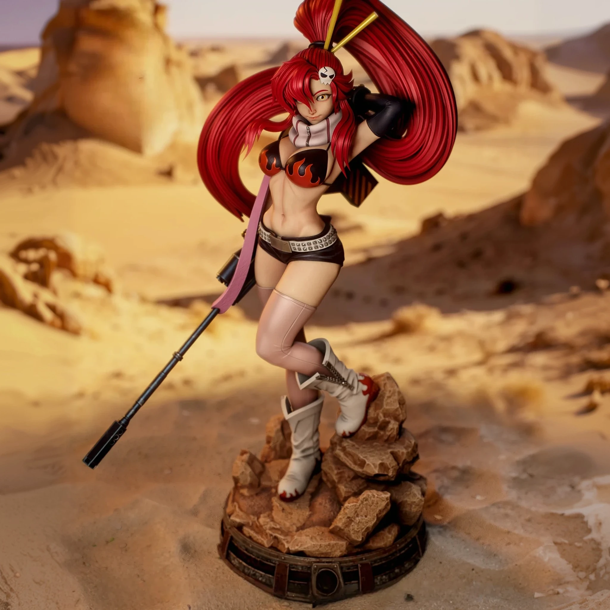 Фигура Йоко Литтнер из Gurren Lagann передаёт её как высокую, поджаро‑силуэтную девушку с ярко‑красными волосами, собранными в высокий конский хвост, и выразительными желтыми глазами, в которых видно сочетание решимости, задора и лёгкой иронии. Внешне она выглядит как молодая, но уже опытная боец и наставница, в которой заметно чувство пространства и прицела, как у человека, который привык смотреть далеко, а не только на себя. В фигурке подчёркнут её фирменный, почти сценичный, но практичный стиль: облегающий короткий топ или бюстгальтер, напоминающий огненный узор, плотные чулки и короткие кожаные шорты, из‑под которых выглядывают сапоги с высоким каблуком, как будто она не собирается бегать в лёгкой обуви, а всё равно чувствует себя уверенно на любой позиции. В её руках ощущается крупная винтовка, из которой она не торопится стрелять, а, как правило, держит её на изготовку, как часть своего тела, а не просто как оружие. Эта фигура фиксирует Йоко в момент, когда она не только снайпер‑защитница Гуррен Лаганн, но и человек, который сочетает сексуальную уверенность с реальной боевой дисциплиной, умеет вести себя и как шутливая, немного дерзкая старшая сестра, и как серьёзный воин, который не позволяет страху и неуверенности мешать прямой цели. В таком образе она остаётся заметной, яркой, но не перегруженной эмоциями героиней, опирающейся на меткий огонь, сильный характер и умение смотреть вперёд, а не назад.