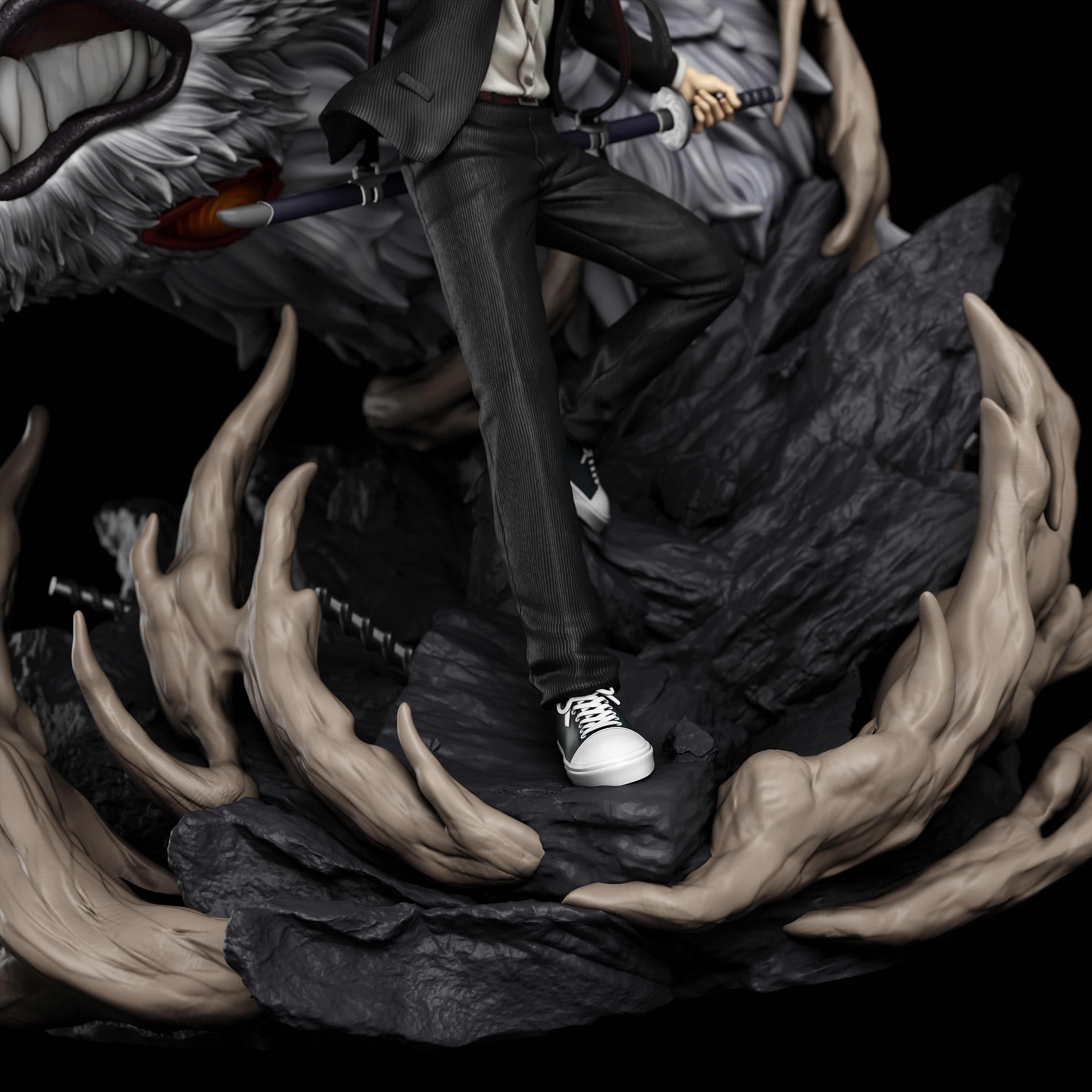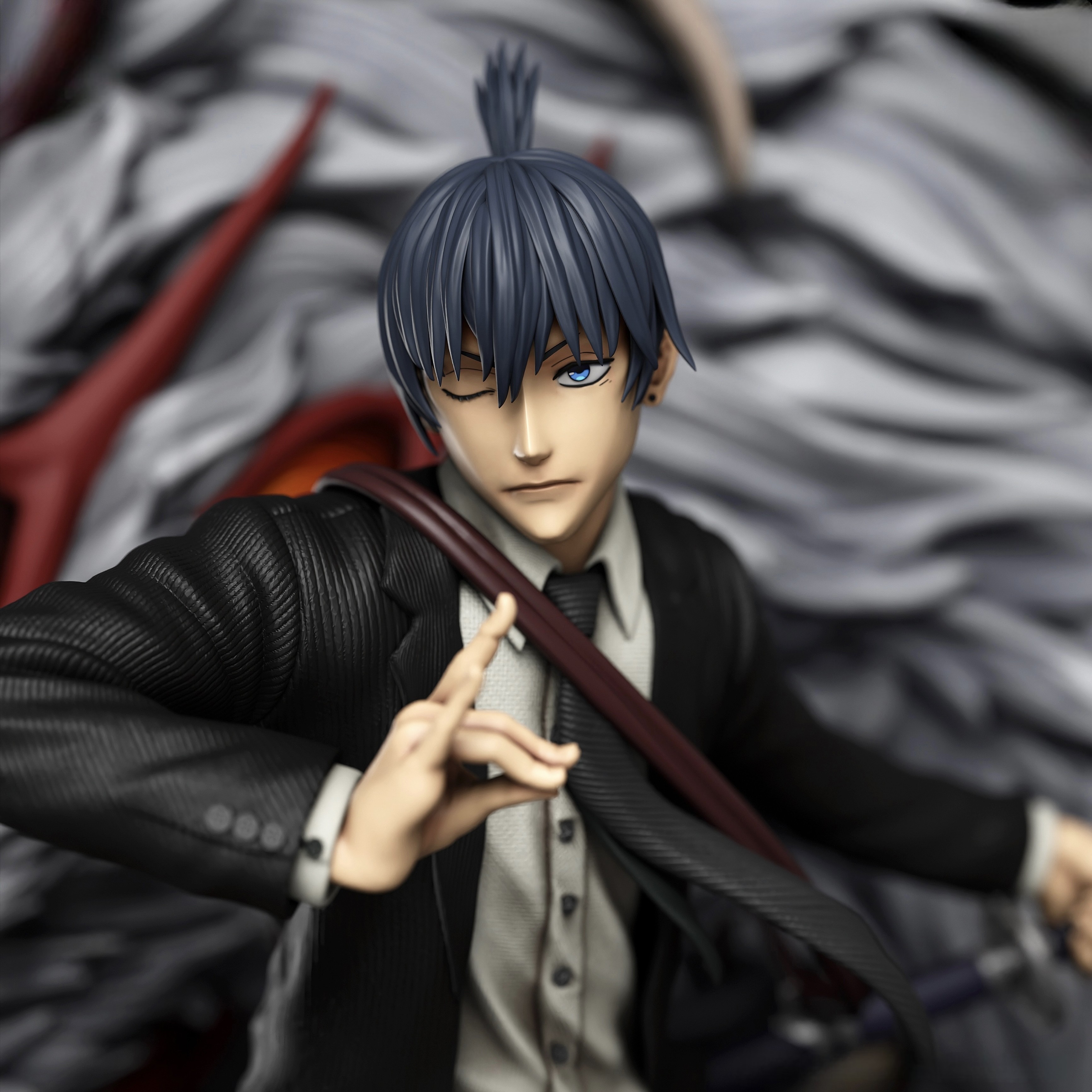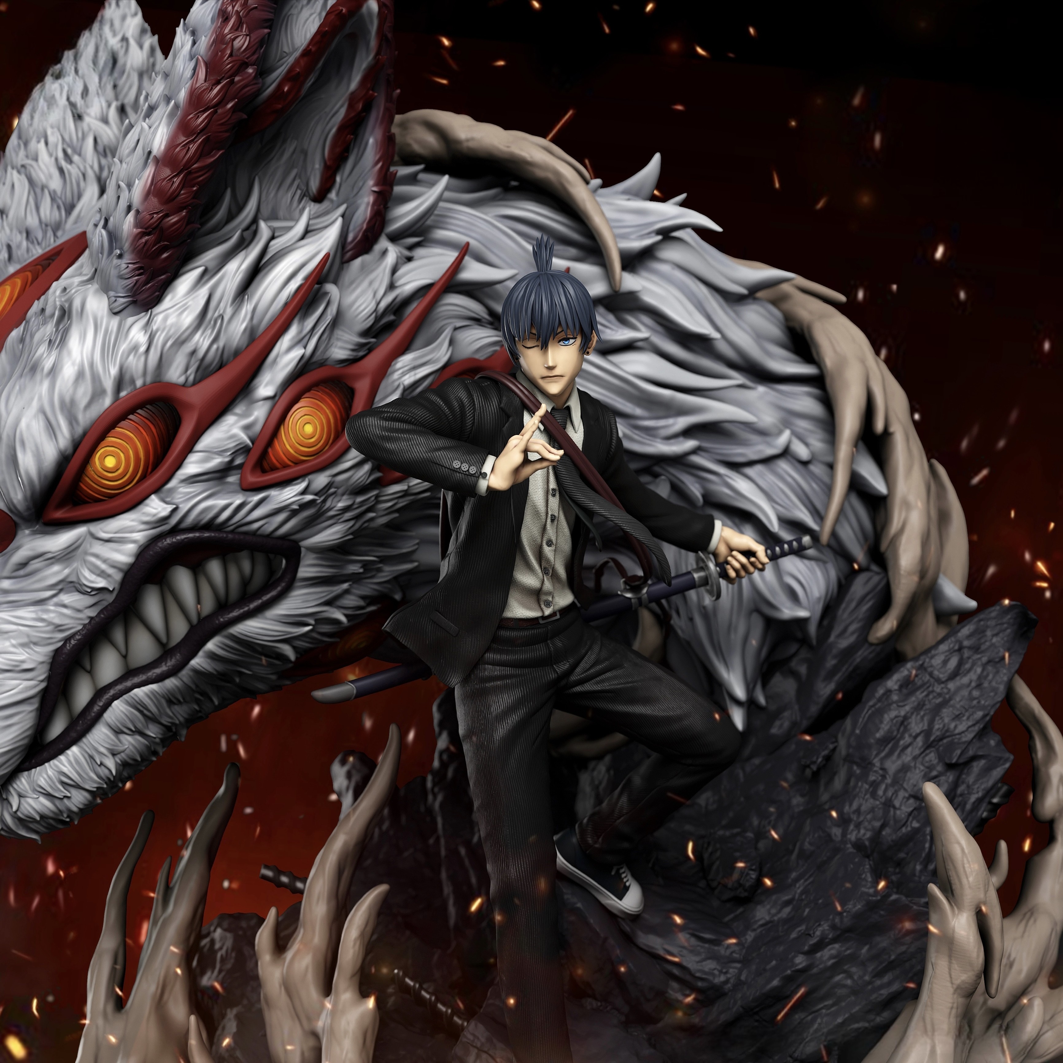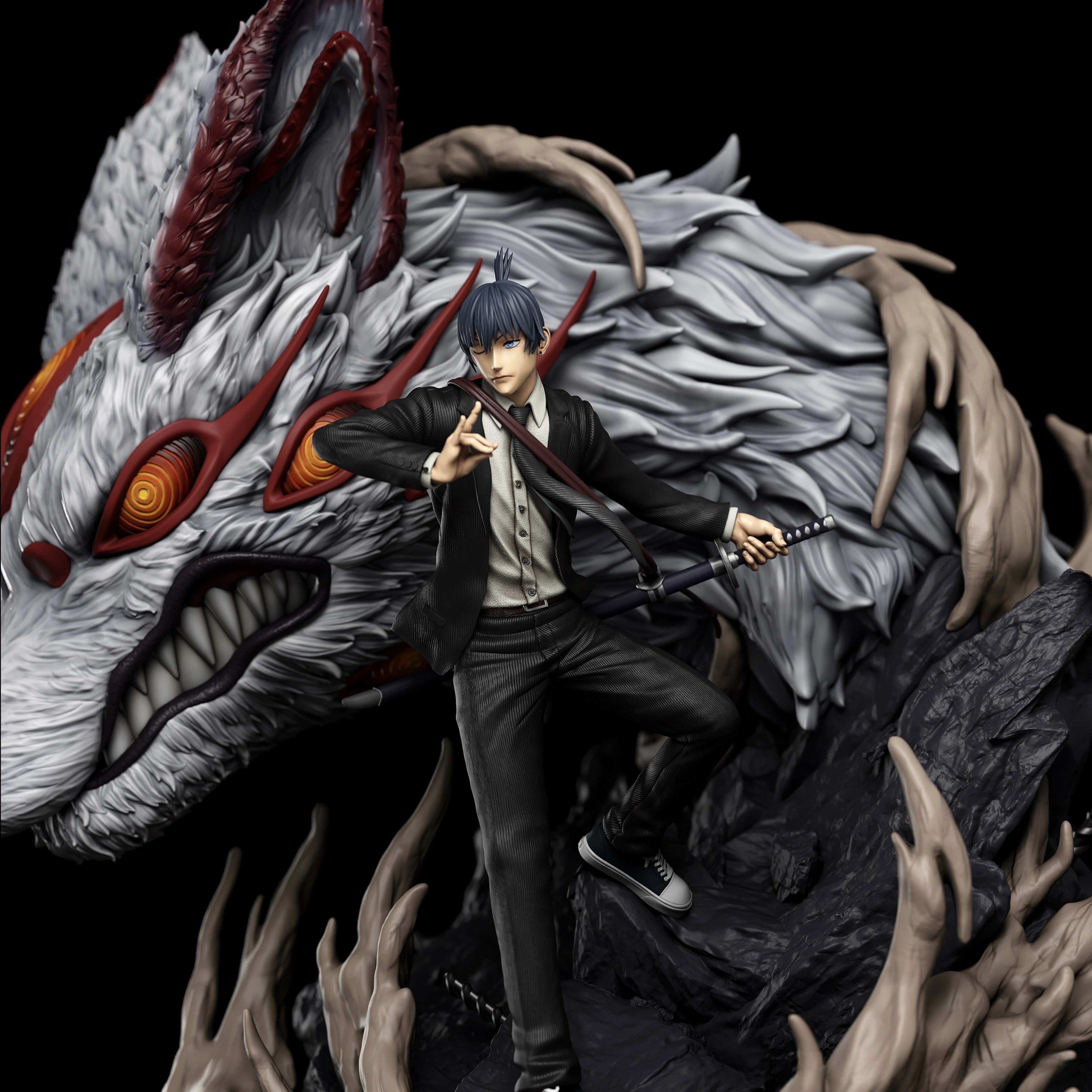 Фигурка Аки Хаякавы с Дьяволом-Лисом из Chainsaw Man передаёт их как неразрывный дуэт охотника и призванного зверя — момент, когда Аки резко выдыхает "Кон Мари!" и лиса вырывается из его рта, чтобы разорвать врага. Аки застыла в напряжённой стойке: тело слегка наклонено вперёд, рука прижата ко рту, а в глазах холодная решимость профессионального дьявольского охотника, знающего цену каждому призыву. Детали подчёркивают их симбиоз — острая лисья морда с горящими глазами вырывается изо рта Аки, клыки блестят в оскале, а хвост извивается в воздухе, создавая ощущение молниеносной атаки. Его чёрный костюм, галстук и привычная сигарета в кармане контрастируют с первобытной яростью лиса, напоминая о контрасте между строгой службой и звериной силой, которую он контролирует. Эта фигурка ловит суть их связи — Аки не просто использует Дьявола-Лиса, а делит с ним свою волю к мести за семью, превращая контракт в акт отчаянной верности. Такой образ идеален для коллекции, где ценят не только стиль, но и трагическую преданность персонажа, чьи призывы приближают его к собственной гибели.