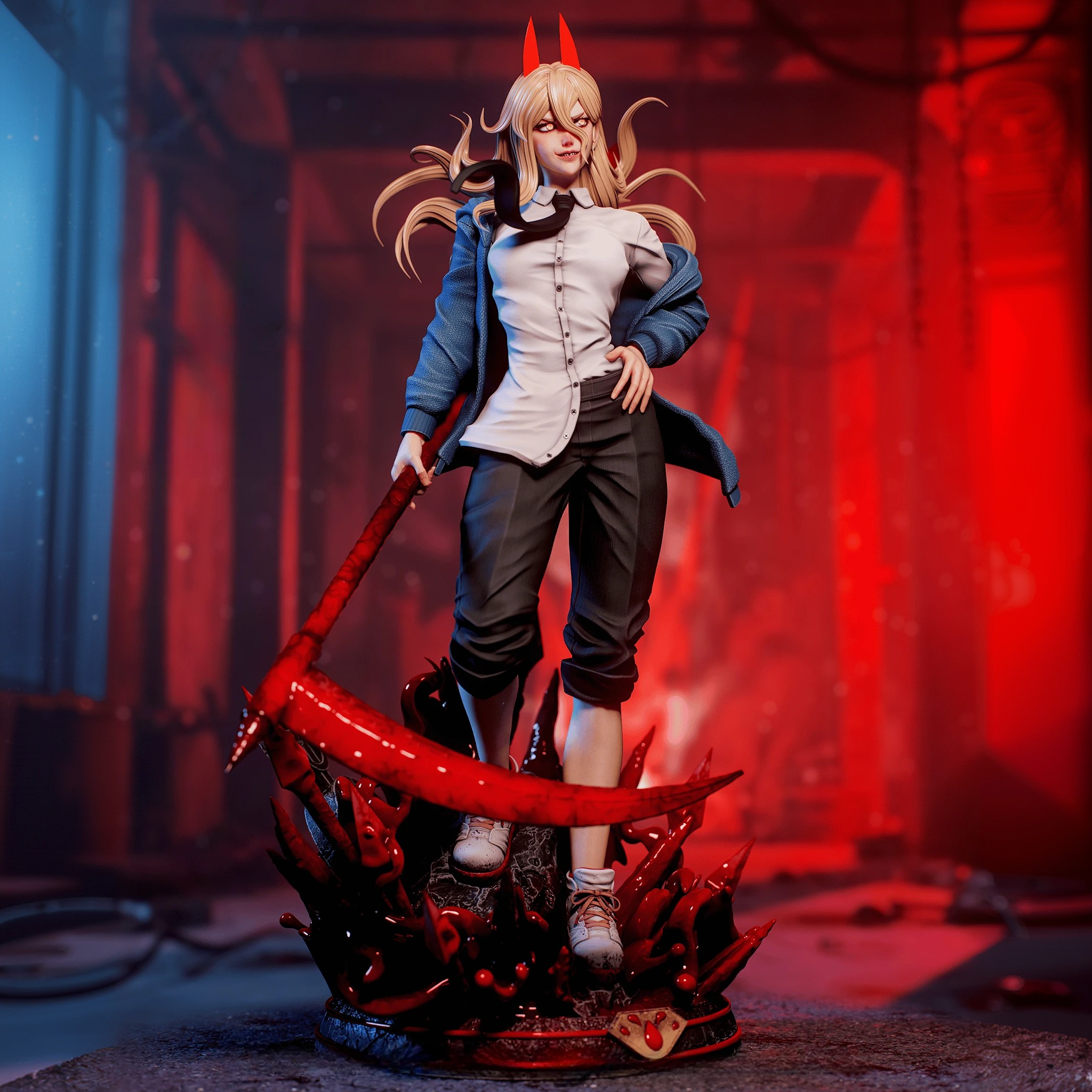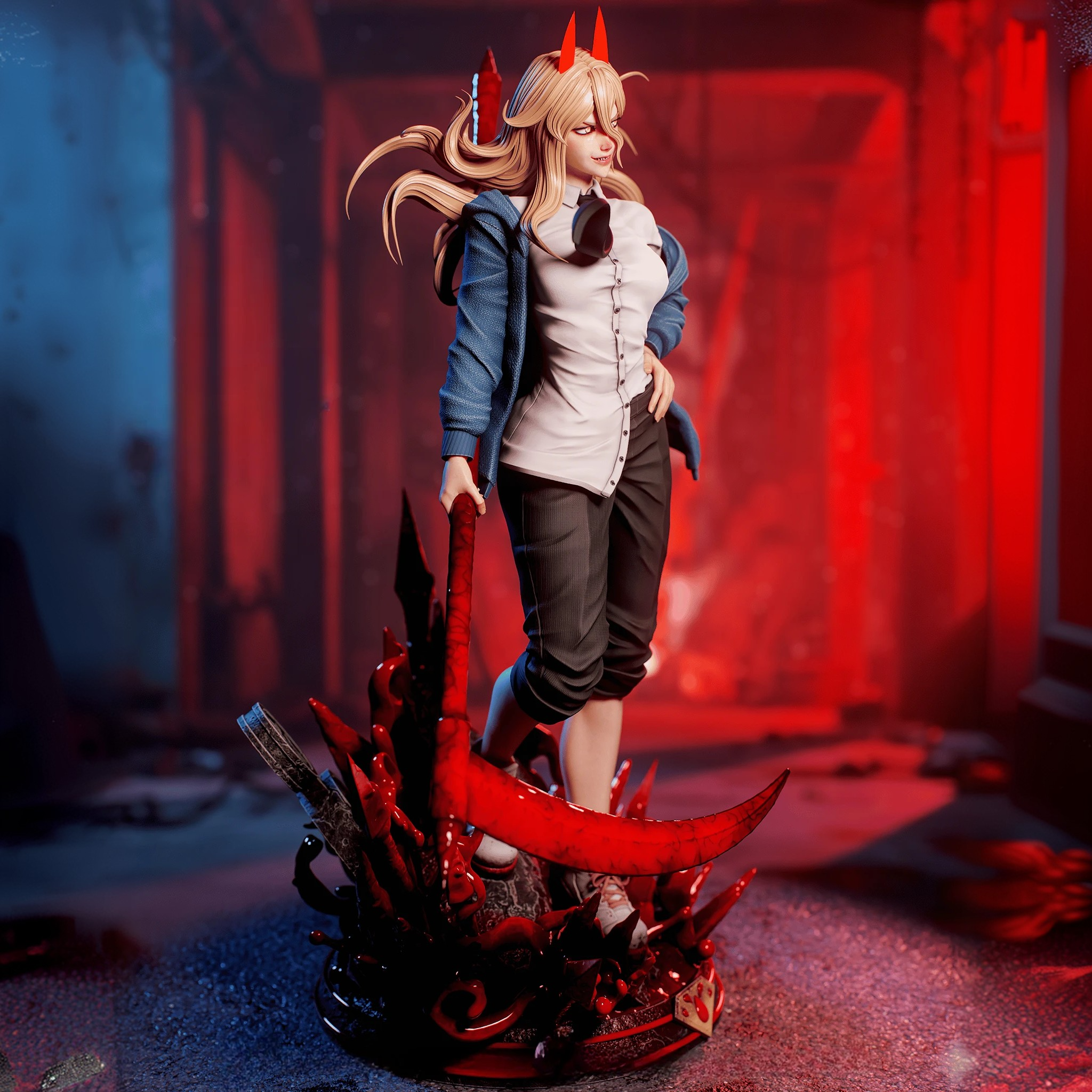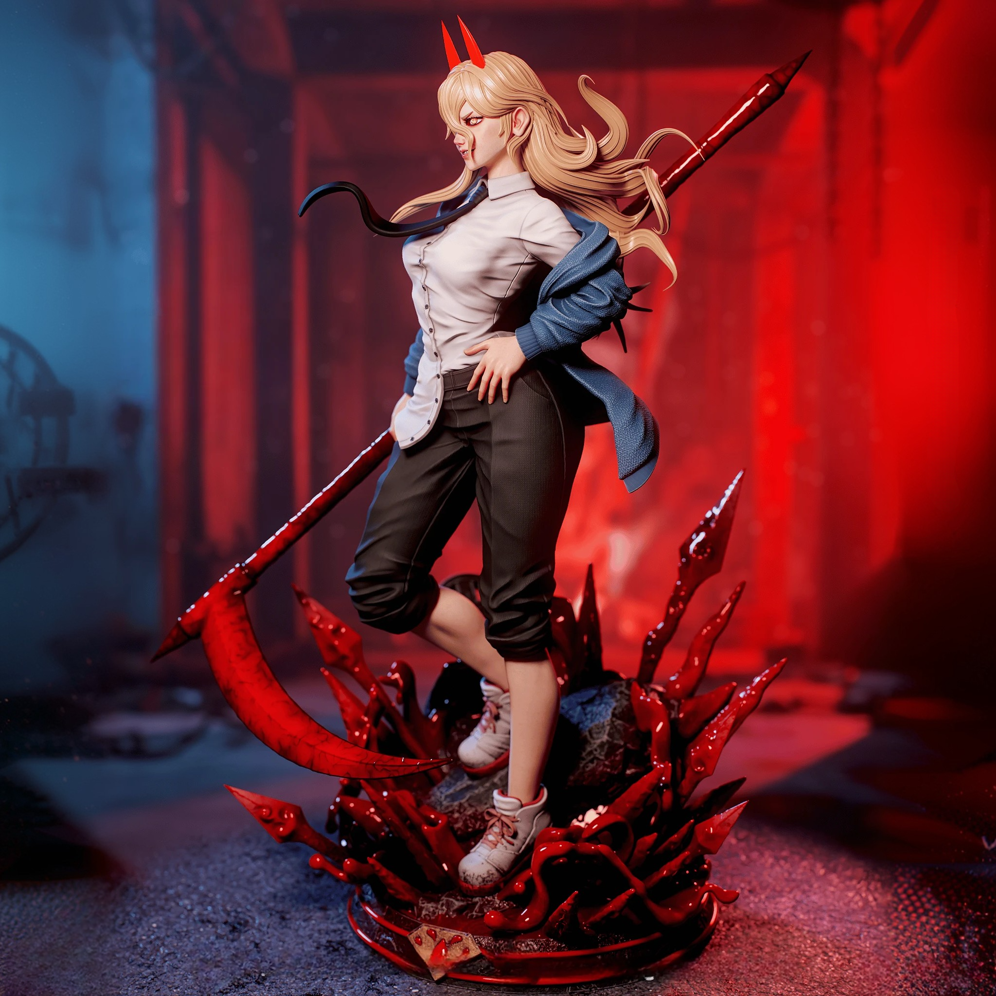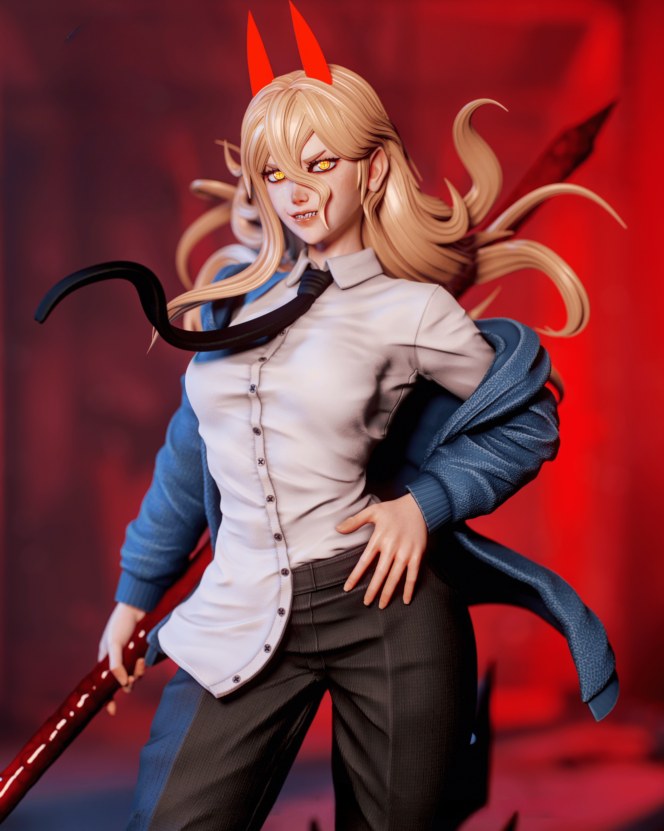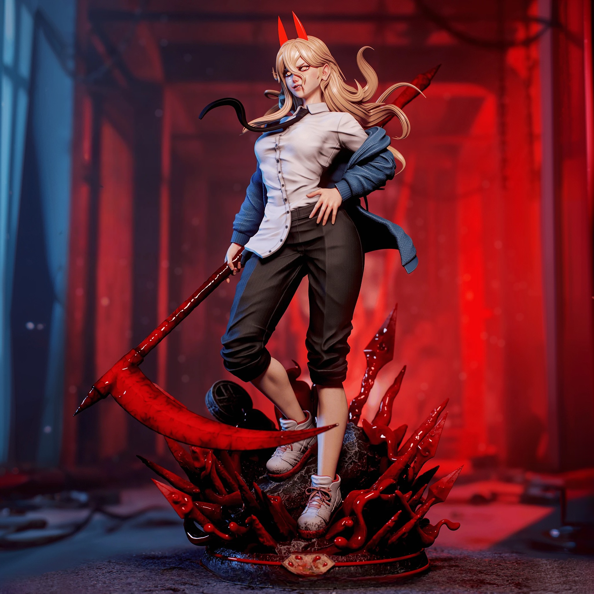 Фигура Пауэр из Chainsaw Man передаёт её дьявольскую харизму и дерзкий характер. Поза динамична: она готова к атаке, с бензопилой наготове, словно готовая в любой момент ворваться в хаос. Детали костюма, оружия и аксессуаров тщательно проработаны — складки одежды, текстура металла и кровь на лезвиях создают ощущение напряжённого действия. Лицо передаёт её характерную смесь самоуверенности, безумного веселья и хищной решимости, благодаря чему образ читается даже на небольшом масштабе. Фигурка превращает сцену в живой момент, подчеркивая дерзкий дух и непредсказуемость Пауэр.