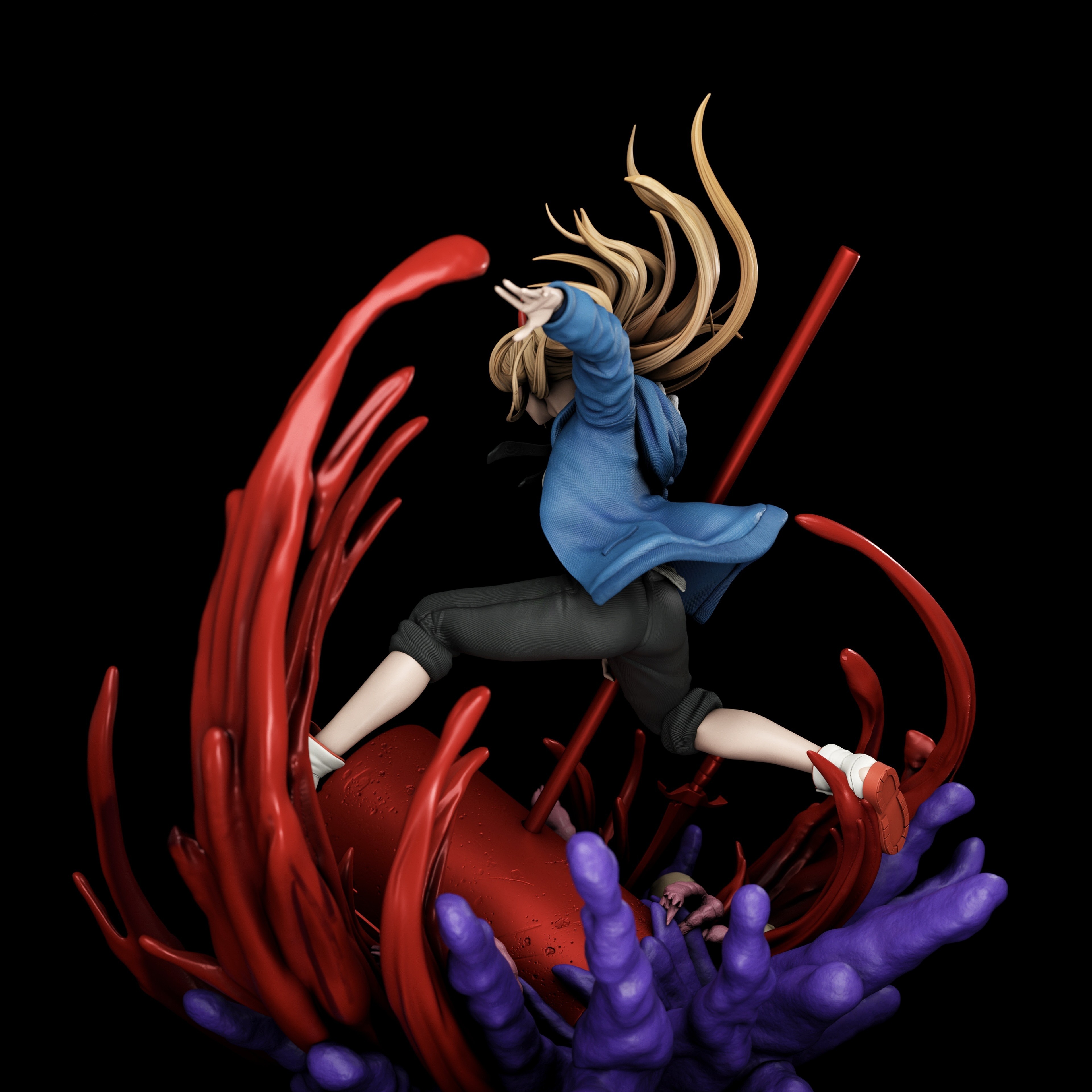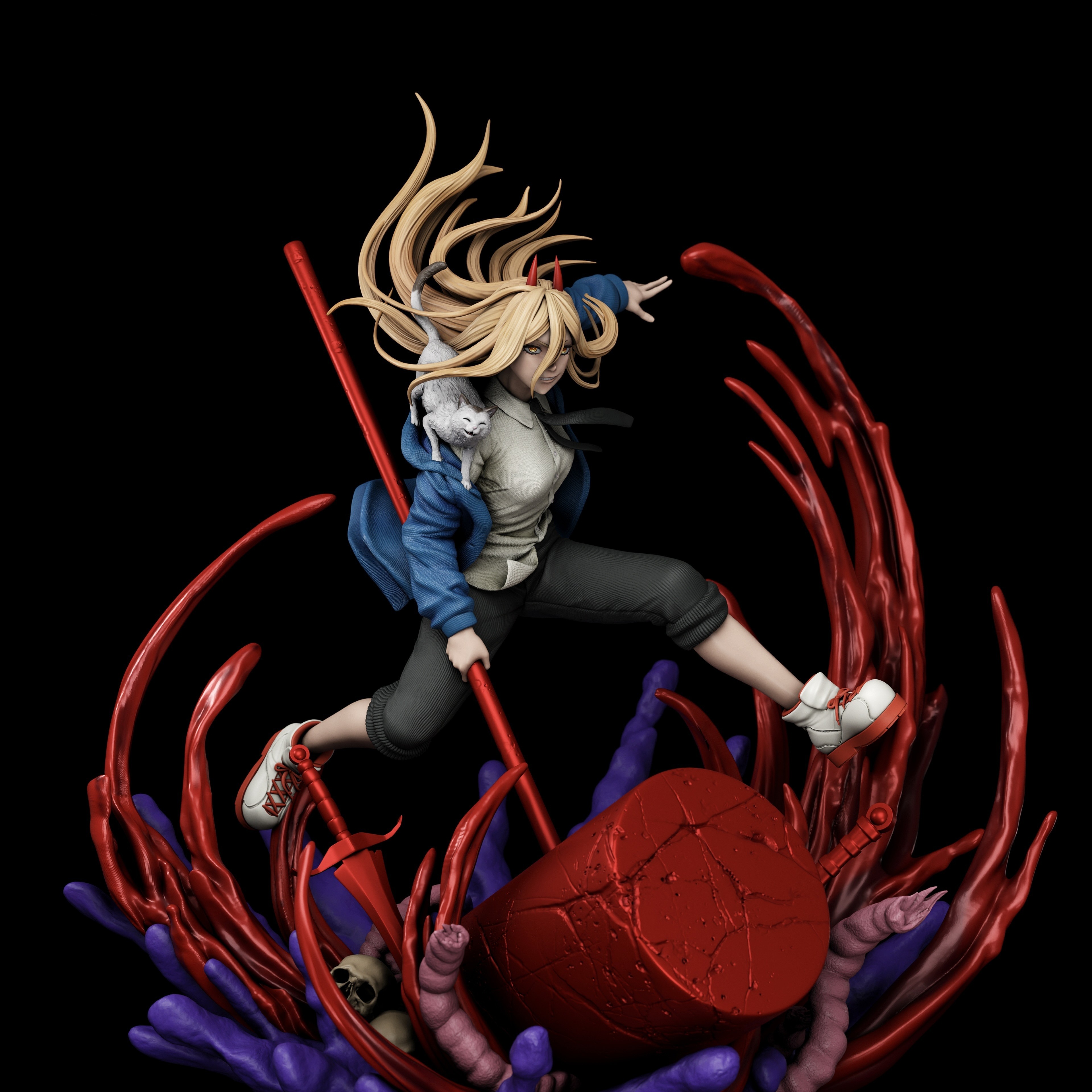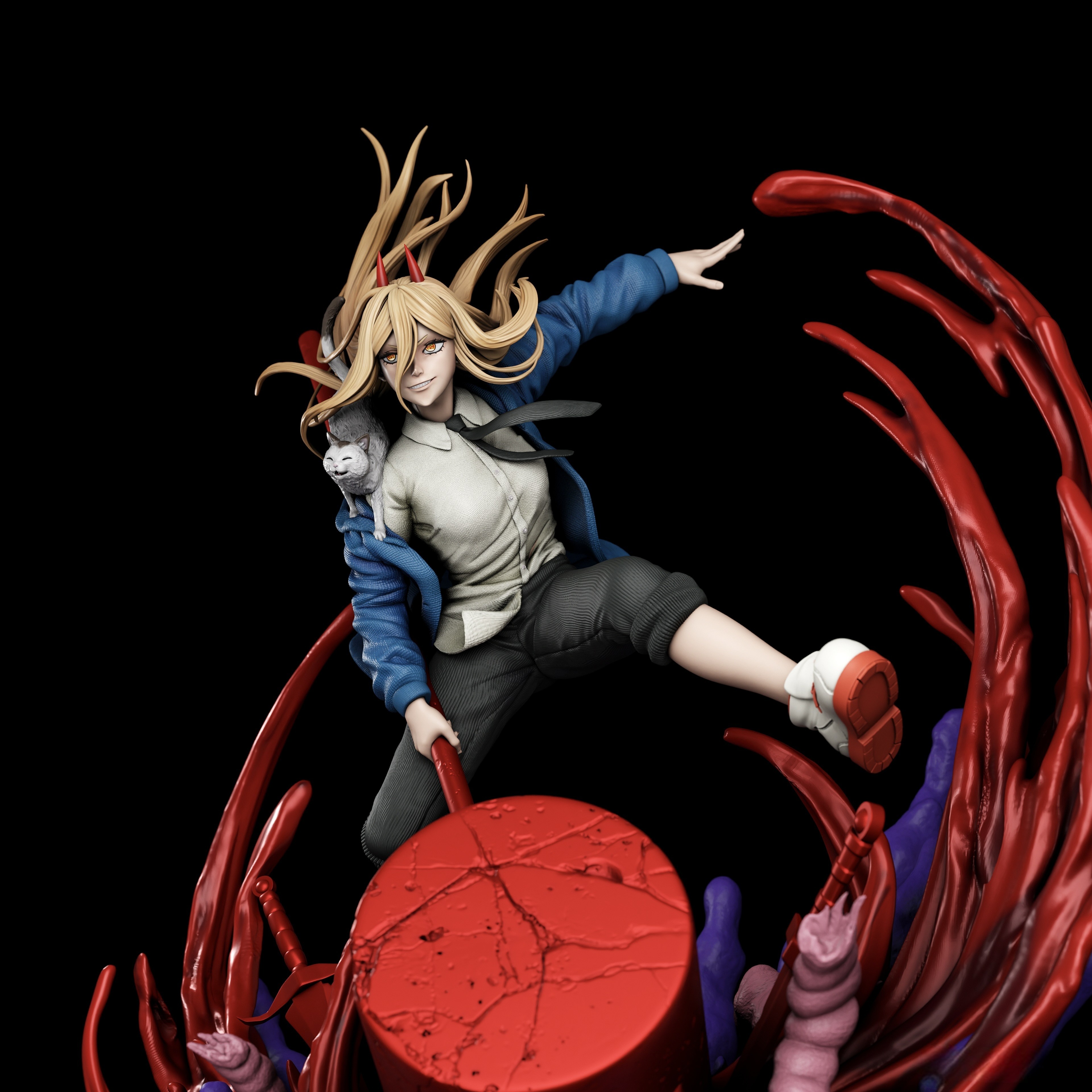 Фигура Power из Chainsaw Man передаёт её хаотичную энергию и непредсказуемый характер, делая образ живым и динамичным. Поза выверена так, чтобы передать движение и лёгкую импульсивность, без театральной застывшей экспрессии — создаётся ощущение, что она готова в любой момент ринуться в бой или пуститься в шалость. Экипировка и детали образа подчёркивают индивидуальность персонажа: её фирменные черты, рога и уникальная прическа детализированы, а линии одежды и аксессуаров создают ощущение объёма и текстуры, делая фигуру цельной и выразительной. Лицо Power передаёт её дерзость и хитрую энергичность: взгляд яркий и цепкий, губы изогнуты в лёгкой ухмылке, подчёркивая непредсказуемый характер. Эта фигурка фиксирует момент, когда Power в своей стихии — энергичная, опасная и абсолютно живая, делая образ запоминающимся для коллекции.