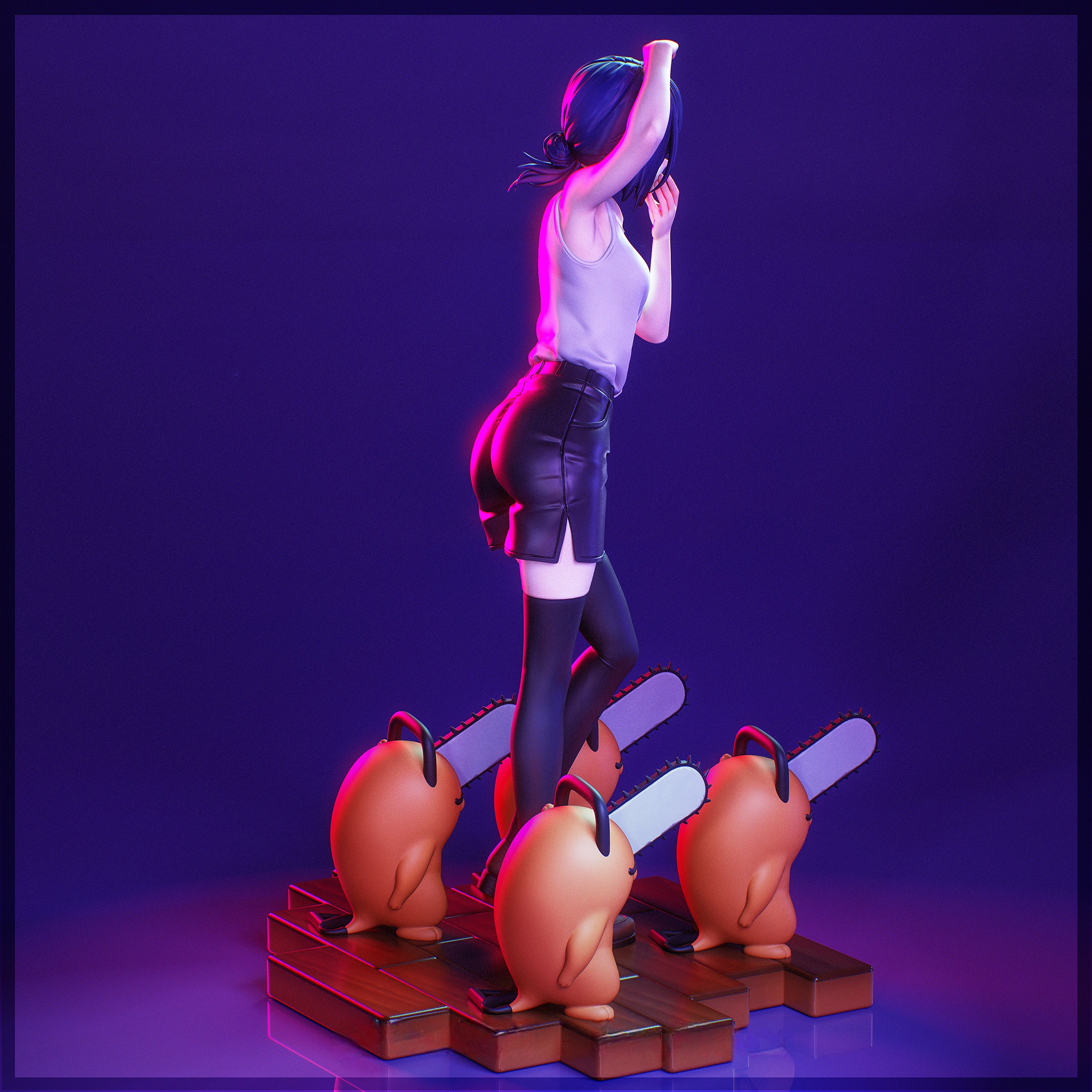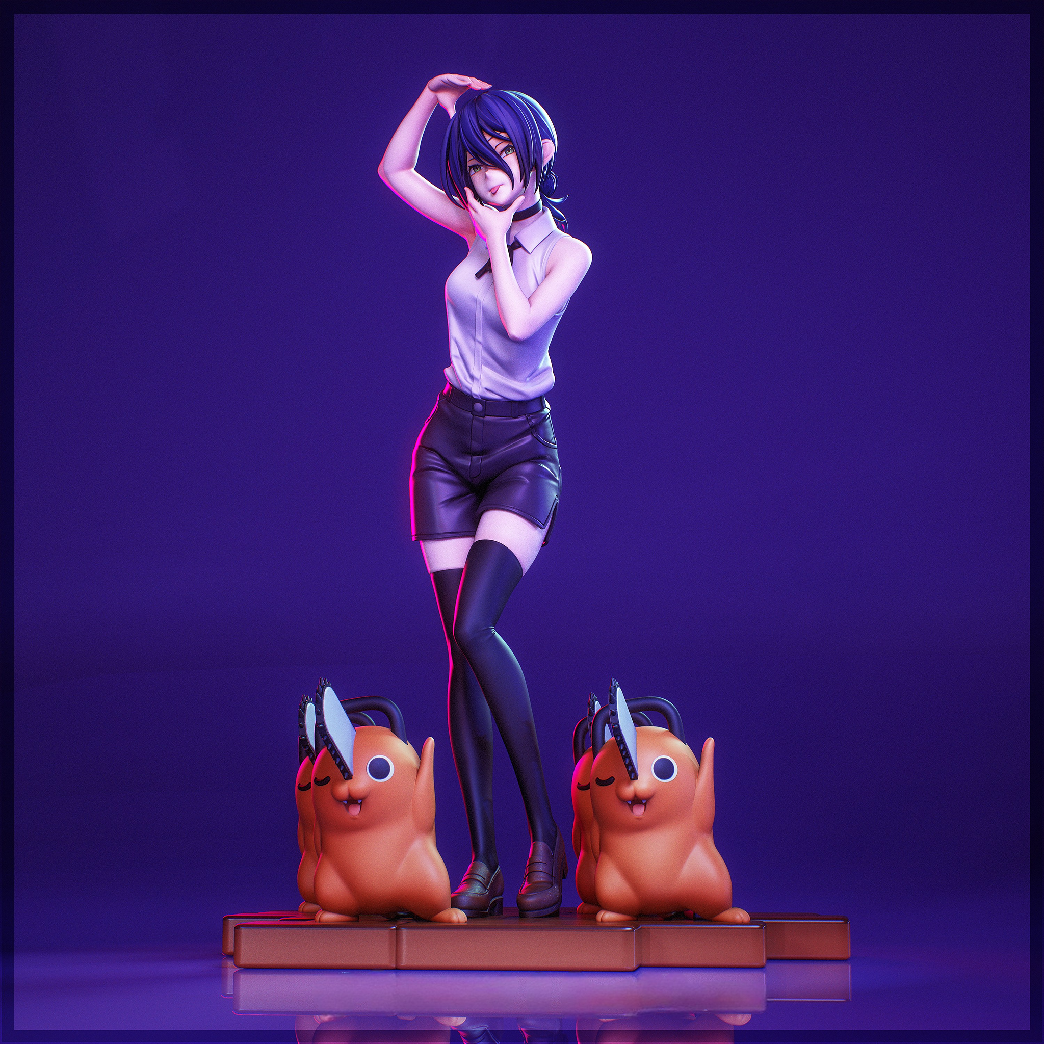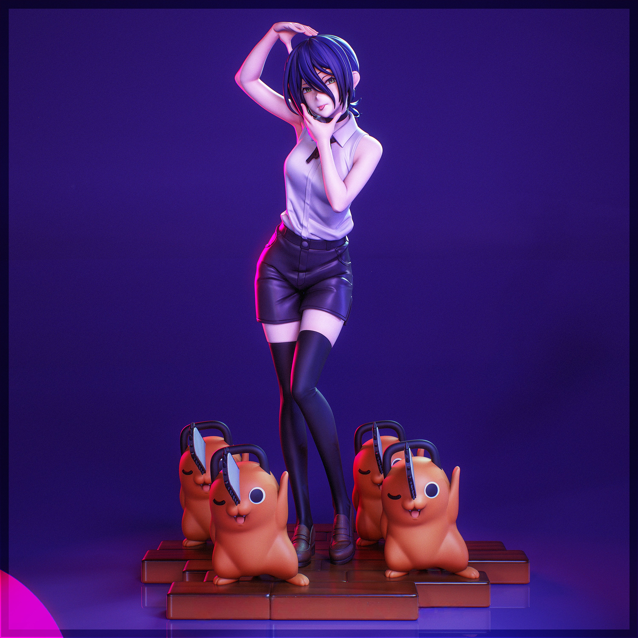 Фигура Reze & Pochita из Chainsaw Man передаёт их как два противоположных, но связанных сердца истории — холодную, расчётливую силу и тёплую, почти наивную преданность. В этой версии сочетаются образы Reze, девушки‑«бомбы», и Pochita, цепной пёс‑дьявол, который спас Маки (Denji) и превратил его в Chainsaw Man. Вместе они создают напряжённую динамику любви, предательства и утраты, которую так ярко раскрывает их арка. Reze в демоническом обличье выглядит как воплощённая угроза, украшенная соблазнительной эстетикой, в то время как Pochita — это напоминание о простой, но искренней привязанности, которая не исчезает даже после всех манипуляций и интриг. В фигурке подчёркнута их двойственность: холодная, взрывная мощь Reze и тёплая, разрушительная сила Pochita, которые переплетаются в истории, полной любви, смерти и надежды. Эта композиция фиксирует момент их близости и одновременной далекости — когда связи между ними уже обречены, но ещё не разорваны. В коллекции такой образ станет символом той сложной, болезненной, но живой эмоции, которая делает отношения Reze и Denji/ Pochita одним из самых запоминающихся в Chainsaw Man.