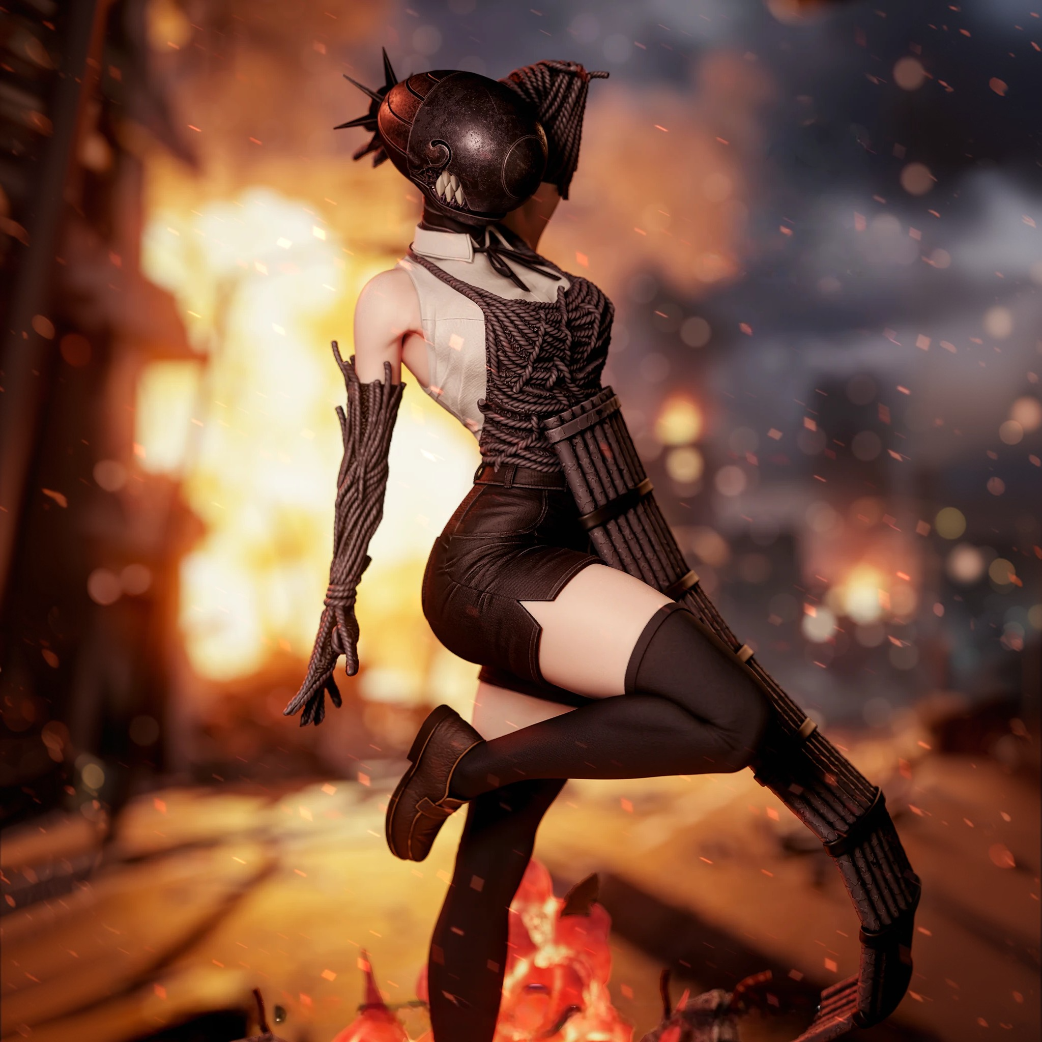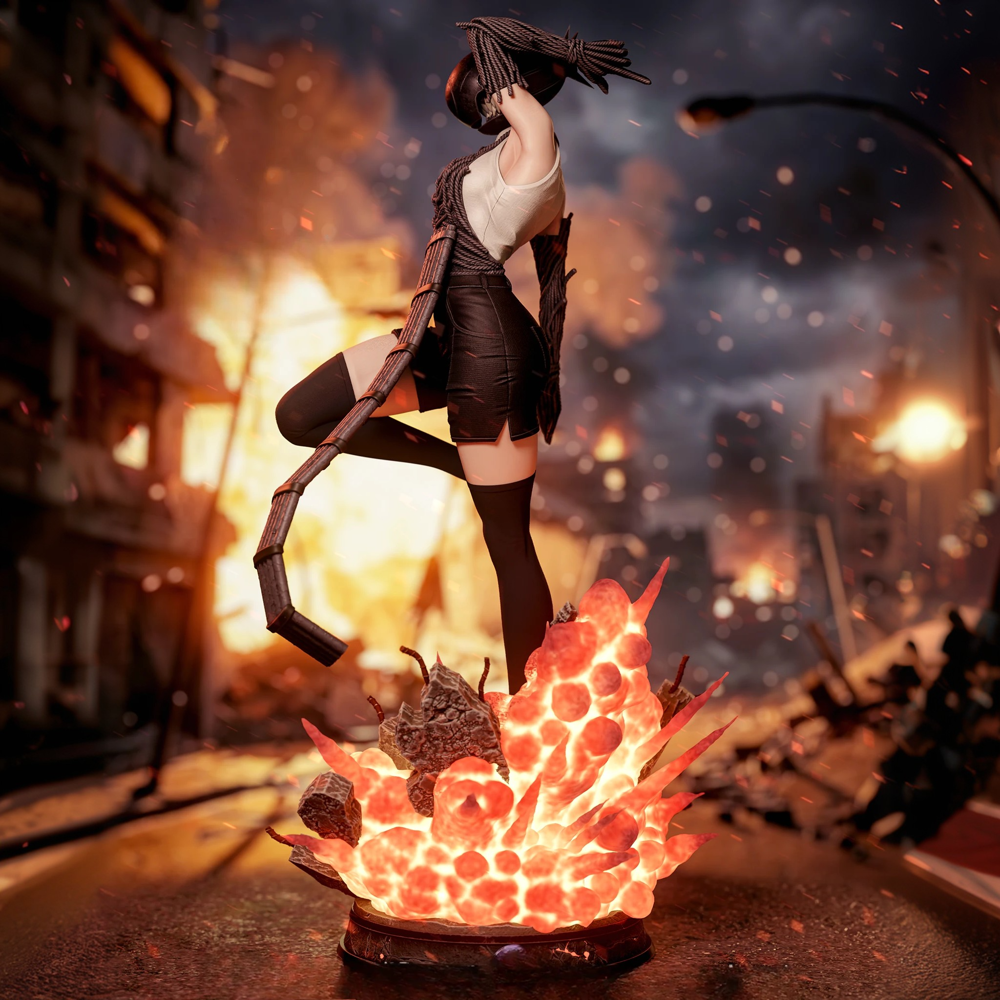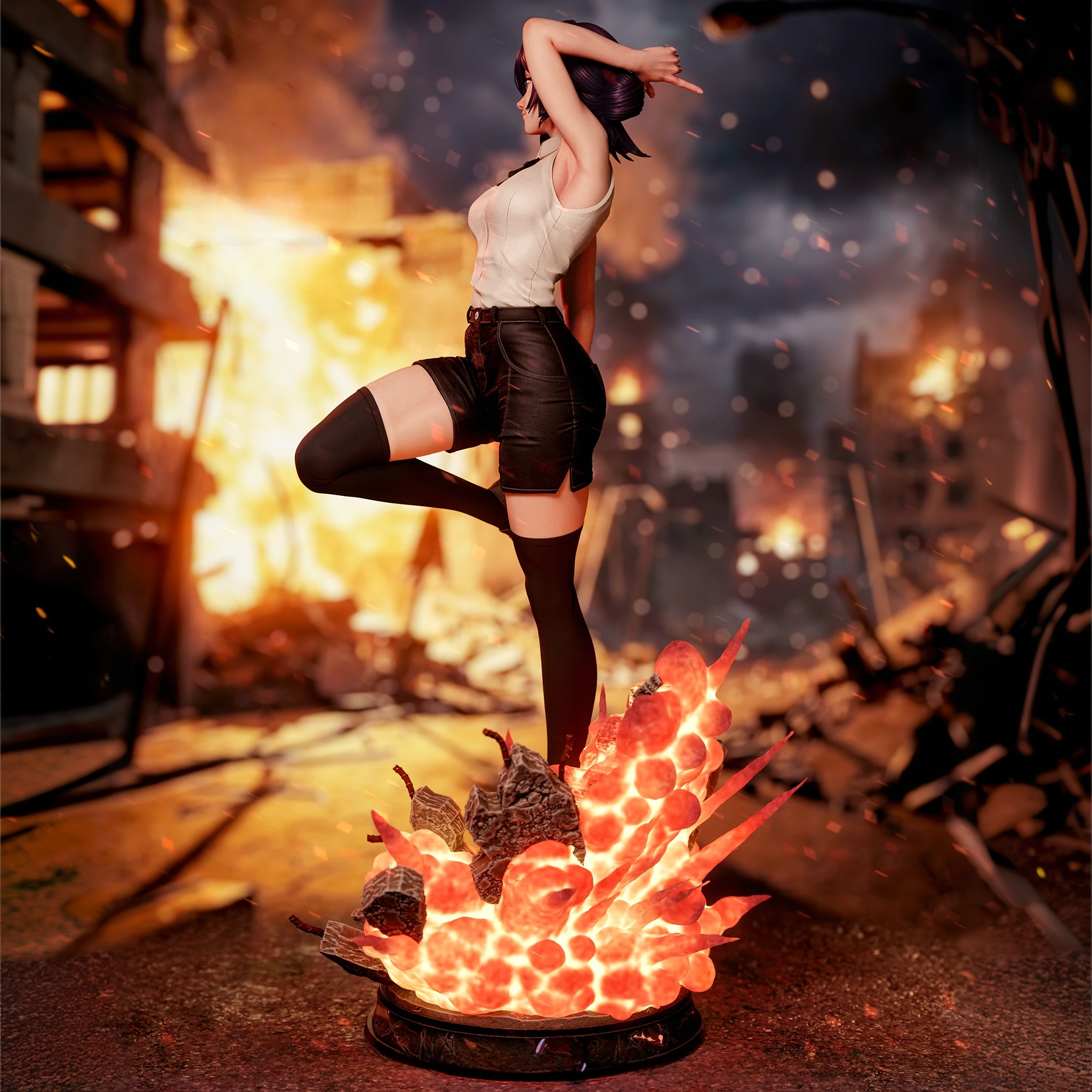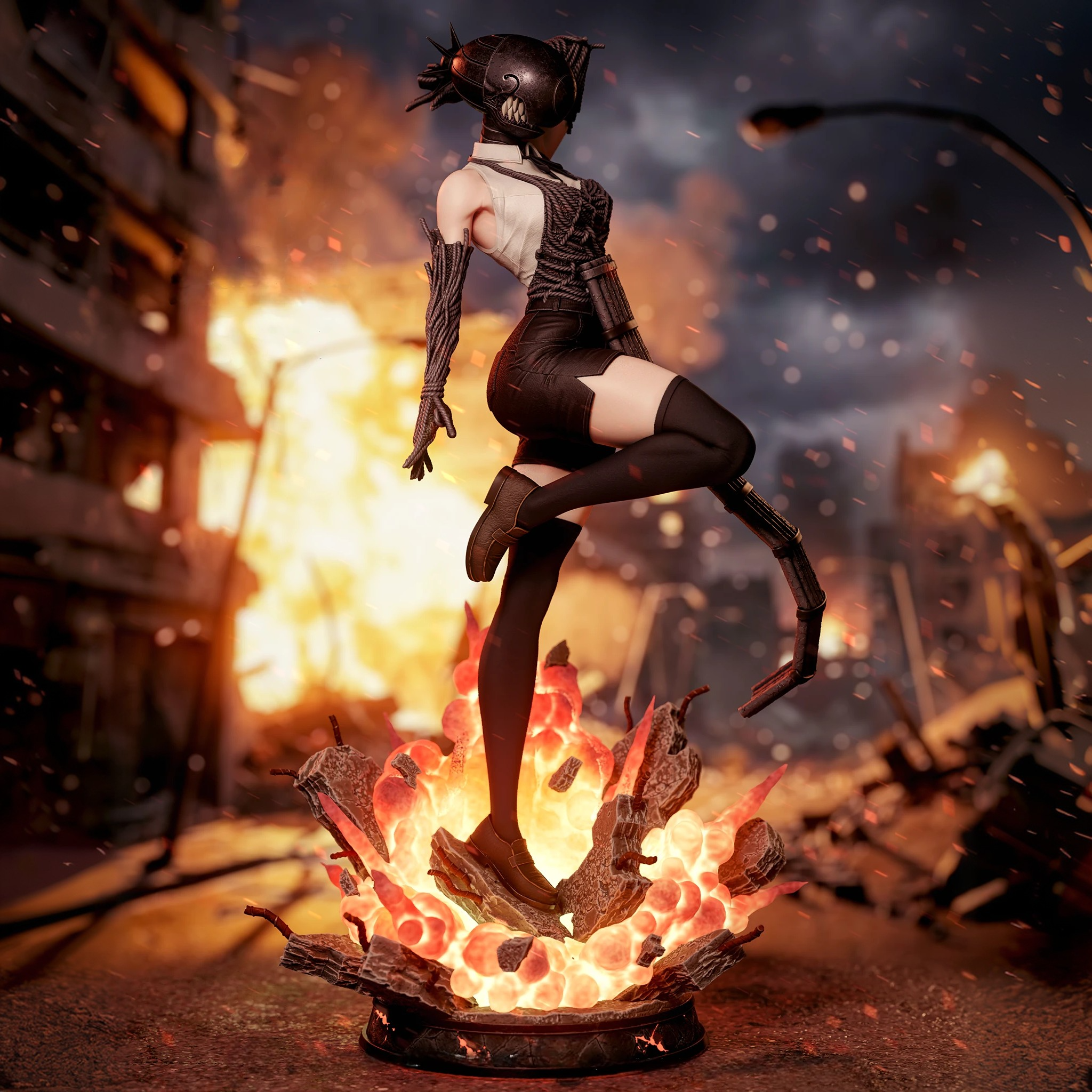 Фигура Reze в демонической форме из Chainsaw Man передаёт её как живое взрывное оружие — красивое, опасное и совершенно не предсказуемое. В этой версии она уже не кажется просто загадочной девушкой: перед нами Бомб‑девушка, чья мягкость оборачивается разрушением в одно мгновение. Её образ строится на контрасте между соблазнительной пластикой и агрессивной силой: резкие линии, динамичная поза и ощущение готового взрыва в каждом жесте делают фигурку максимально напряжённой и эффектной. Динамика тела, хищный взгляд и элементы, отсылающие к взрывам, передают не только силу Reze, но и ту опасную грацию, с которой она вступает в бой. Эта фигурка фиксирует момент, когда Reze уже раскрыла свою истинную природу, но ещё не выпустила весь хаос наружу. В коллекции она станет символом двойственности: нежность, скрывающая катастрофу, и красота, за которой всегда следует удар.