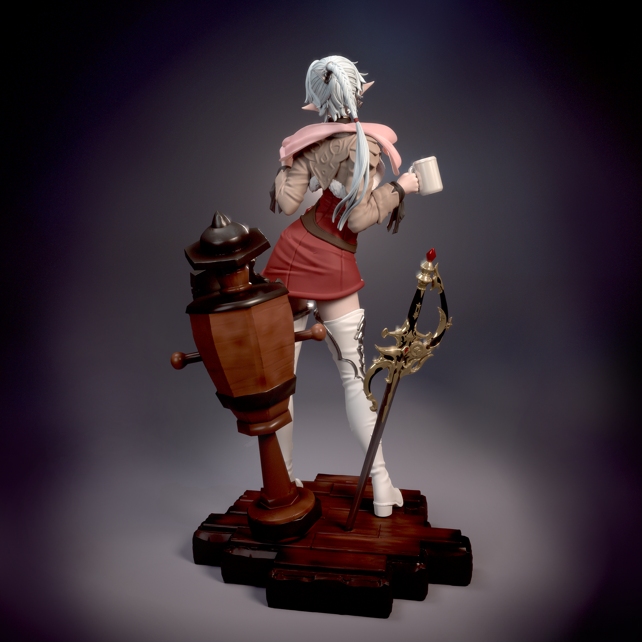 Фигурка Ализай Левейль из Final Fantasy XIV воплощает юную элезен — сестру-близнеца Альфино, внучку Луизуа, члена Круга Двенадцати, что сражается эфирным клинком как красный маг в битвах за Эорзею и Первый. Она застыла в яростной стойке: белые кудри с красным узлом хлещут воздух, голубые глаза пылают за упрямым взглядом, тёмно-синий плащ с фиолетовыми метками развевается над алым платьем, белые сапоги до бёдер блестят, а в руках призванный рапир — клинок для уколов Верфлейр, Заряда и Червича, что лечит союзников и режет врагов. Фигура передаёт её пыл: поза полна напора, вокруг вьётся астральная энергия, а дельта-кольцо на ухе подчёркивает родословную Шарлейна. Подробности оживляют её путь — исследования Катушек Бахамута, схватки с Воинами Тьмы, исцеление Ангело-поркси, битвы в Доме и на Луне, подставка с осколками кристаллов и шестерёнками аэрогена. Поза динамична: Ализай не плетёт чары издалека, а бросается в секу, мешая магию с клинком. Эта фигурка схватывает суть неукротимой искательницы — огненной мощи в свите Воителя Света, безупречно дополняя собрание Final Fantasy подле скорости Клауда на Фенрире и льда Шивы.