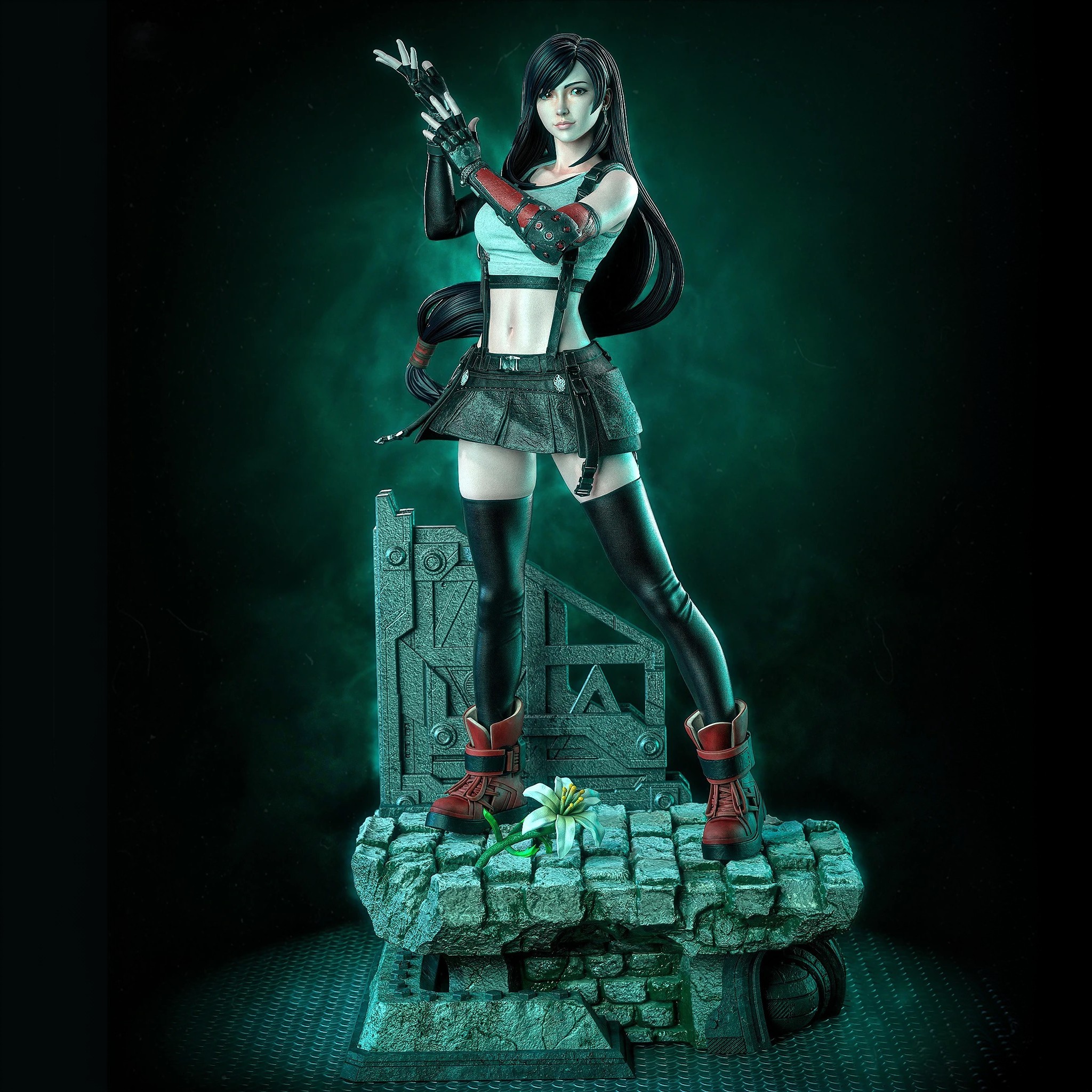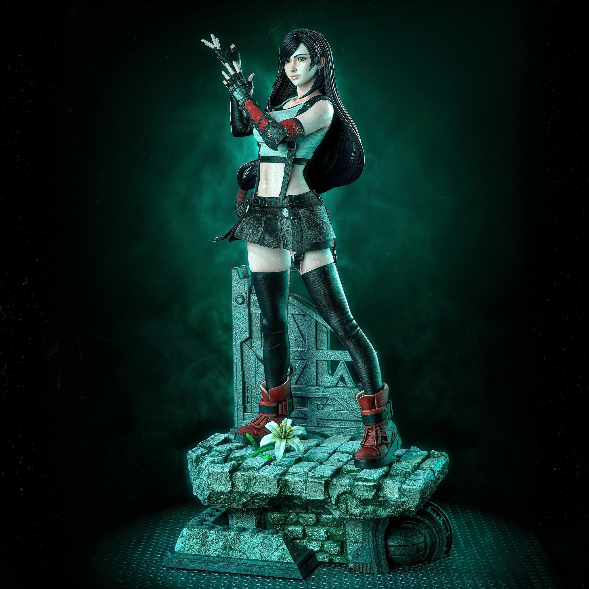 Фигурка Тифы Локхарт из Final Fantasy VII передаёт её как сердце Аваланши — барменшу из 7-го неба с кулаками, способными сокрушить Sephiroth, чья сила растёт из утраты Ниибельхейма и верности друзьям. Она застыла в боевой стойке: тело напряжено в выпаде, руки в перчатках сжаты для удара, длинные тёмные волосы развеваются, а взгляд пылает решимостью защитницы планеты от Метеора. Детали образа усиливают её легенду — белый топ с подвязками, чёрная мини-юбка с ремнями, высокие сапоги и металлическая подставка с обломками, символизирующими разрушения Мидгарa, где каждая линия мускулов напоминает о Limit Break и танце с Cloud. Поза динамична и грациозна: Тифа не просто боец — она символ надежды, чья нежность скрывает ураган. В глазах Тифы — смесь заботы и ярости за потерянное. Фигурка фиксирует её икону, идеально воплощая эпос Final Fantasy в коллекции.