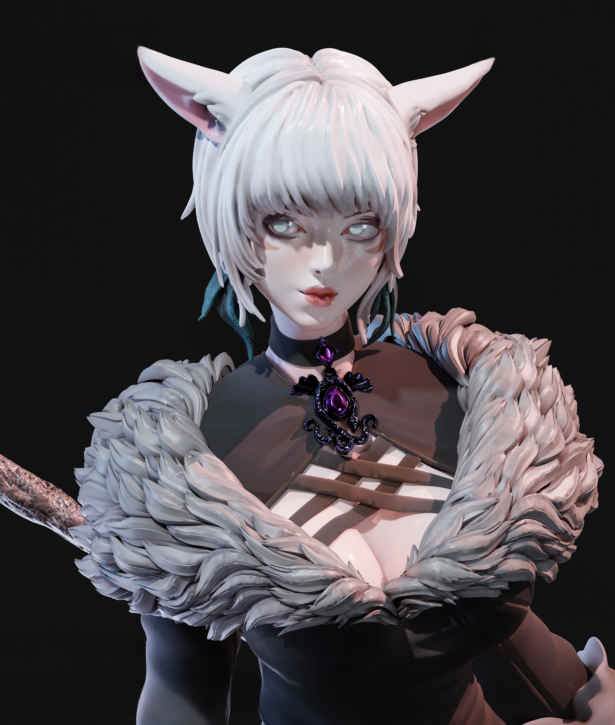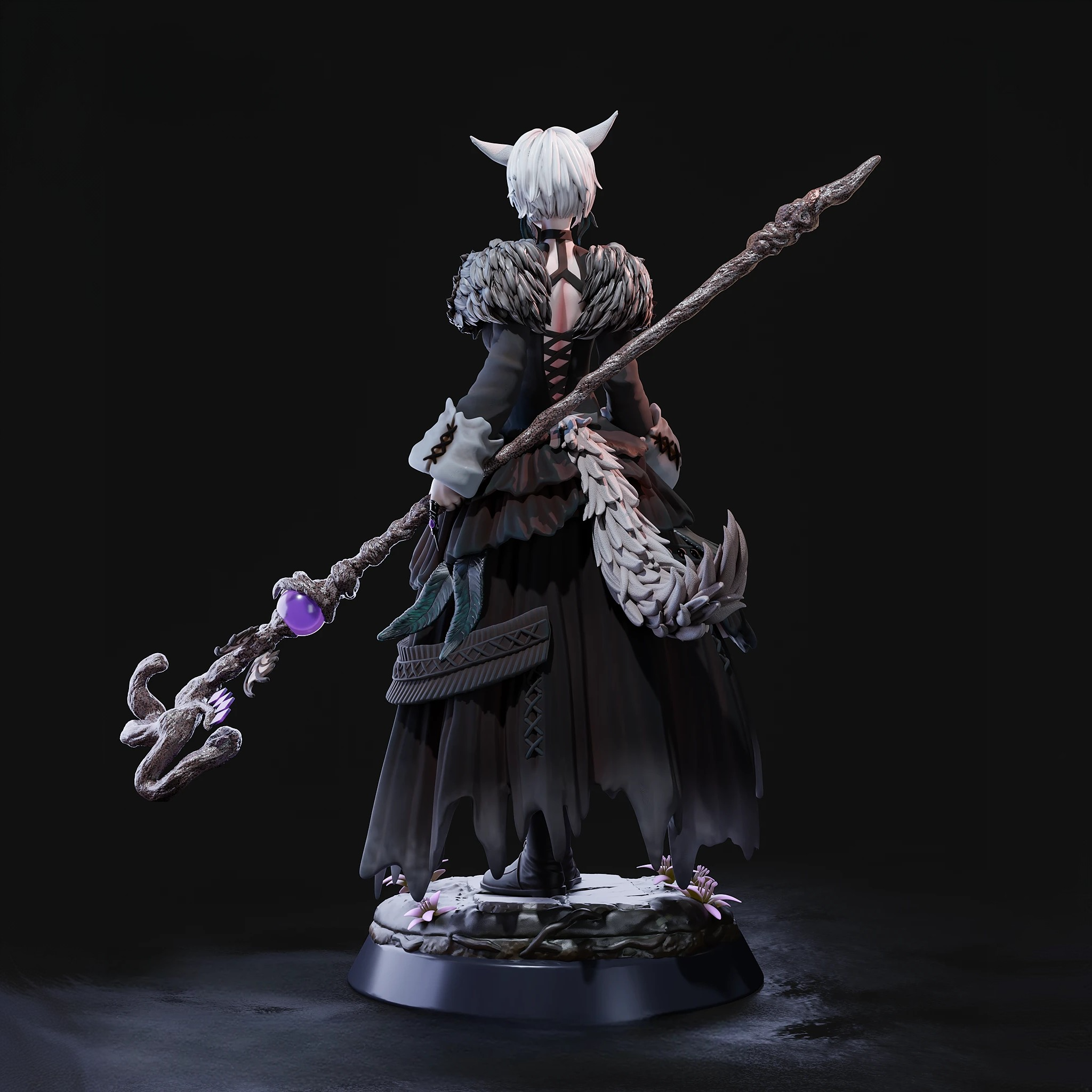 Длинные белоснежные волосы ниспадают на её черное одеяние, вышитое серебряными нитями и украшенное символами Школы Балдесий. Её посох украшен кристаллом, будто сотканным из сияния эфира, его грани переливаются холодным синим светом. Каждая деталь фигурки — от тонких когтистых перчаток до плавных линий мехового воротника — воплощает высшую элегантность мага, для которого магия — не оружие, а язык мира. Эта фигурка Y’shtola Rhul из Final Fantasy XIV — дань грации, силе и внутренней гармонии. Она наполняет коллекцию спокойствием и глубиной, напоминая: истинная мощь — в знании, а настоящая красота — в том, кто смотрит в бездну с мудрой улыбкой.