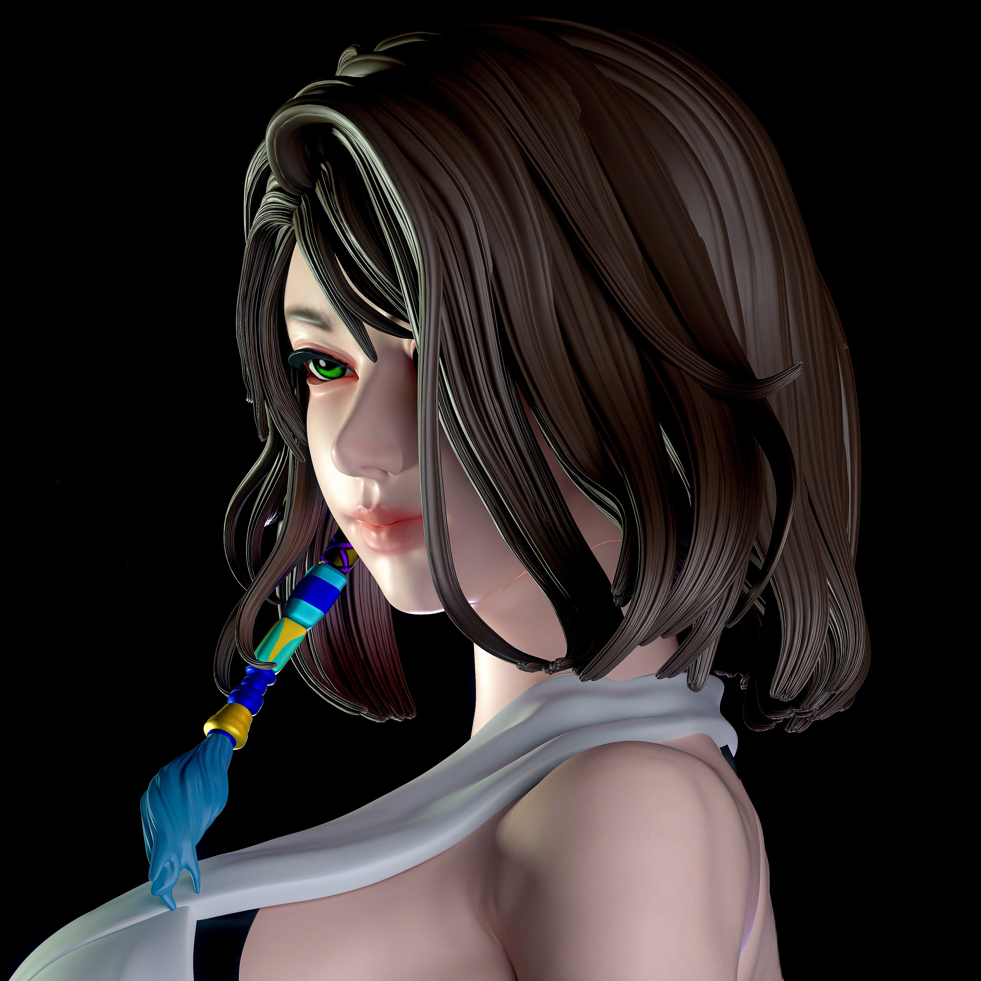 Юна из Final Fantasy X — воплощение света, который не меркнет даже перед лицом жертвы. Спокойная, но исполненная внутренней силы, она застыла в моменте молитвы — словно на грани между миром людей и сферой вечности. Её мягкие черты отражают веру, достоинство и ту хрупкую решимость, что делает её не просто призывательницей, а символом надежды.