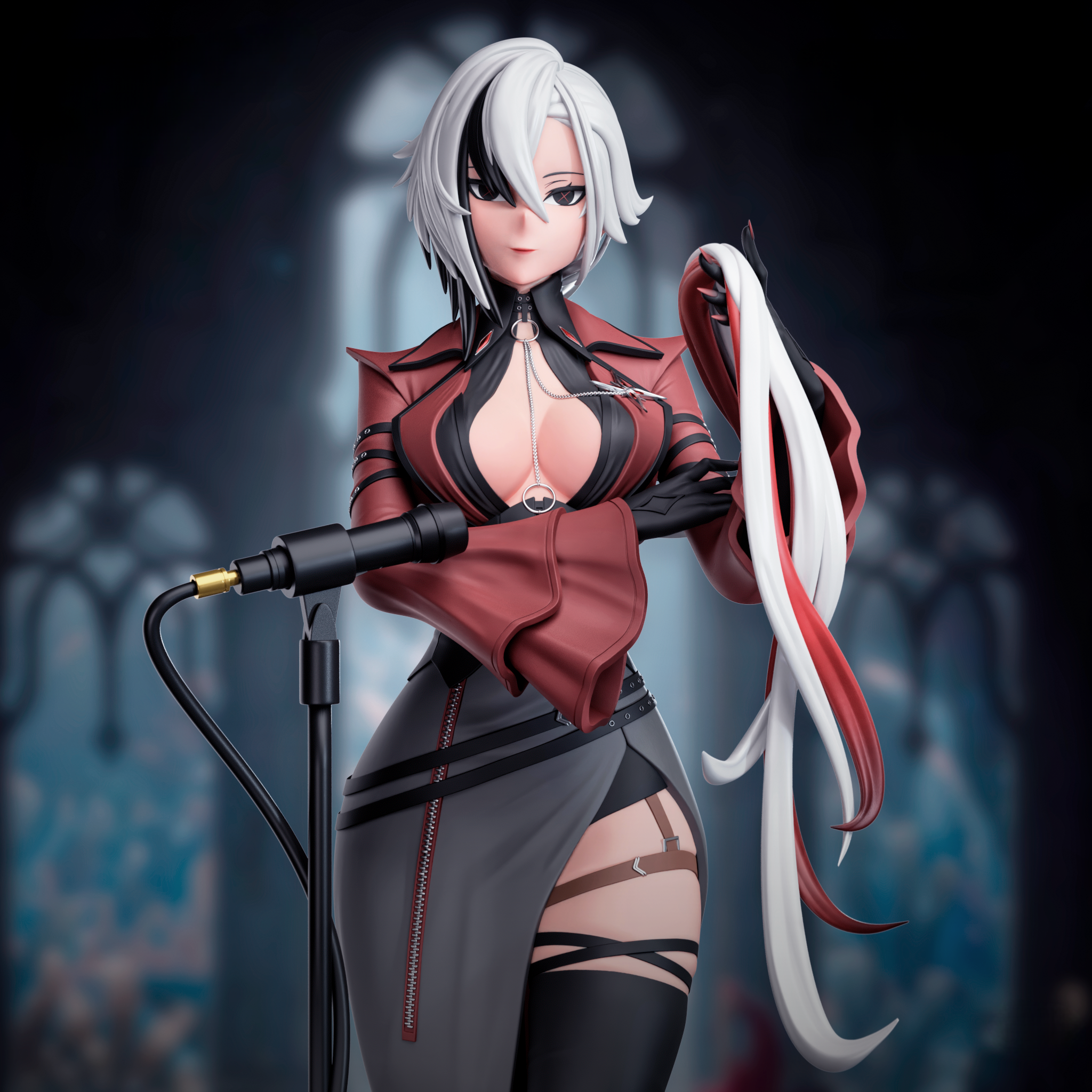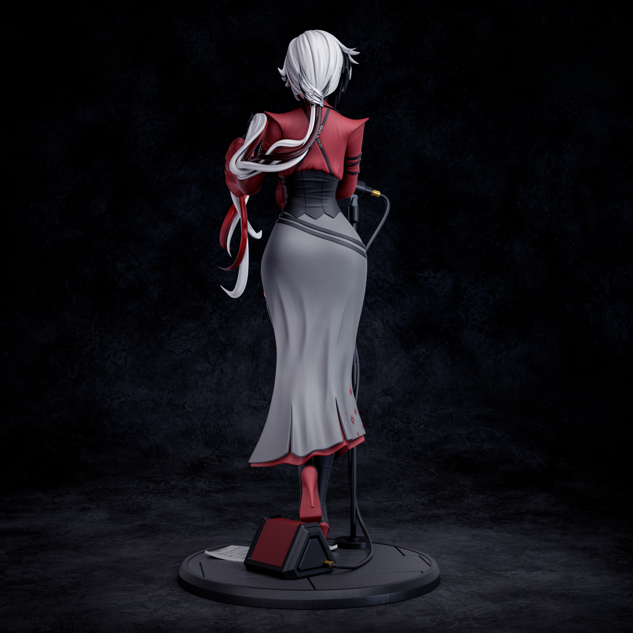 Фигурка Arlecchino — это визуализированное напряжение между порядком и безумием, скрытым за безупречно выверенным обликом. Поза подчёркнута и статична, но за ней ощущается хищная готовность к действию. В чертах лица — сдержанное презрение и что-то почти театральное, как будто она играет роль, правила которой знает только она. Детализация костюма построена на контрастах: чёрное и алое, острые формы и гладкие поверхности создают образ, одновременно притягательный и опасный. Это не просто представительница Фатуи — это идеология, воплощённая в человеке.