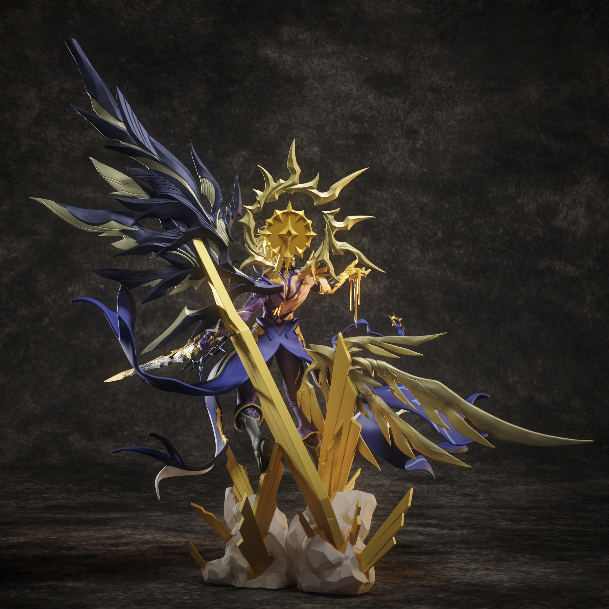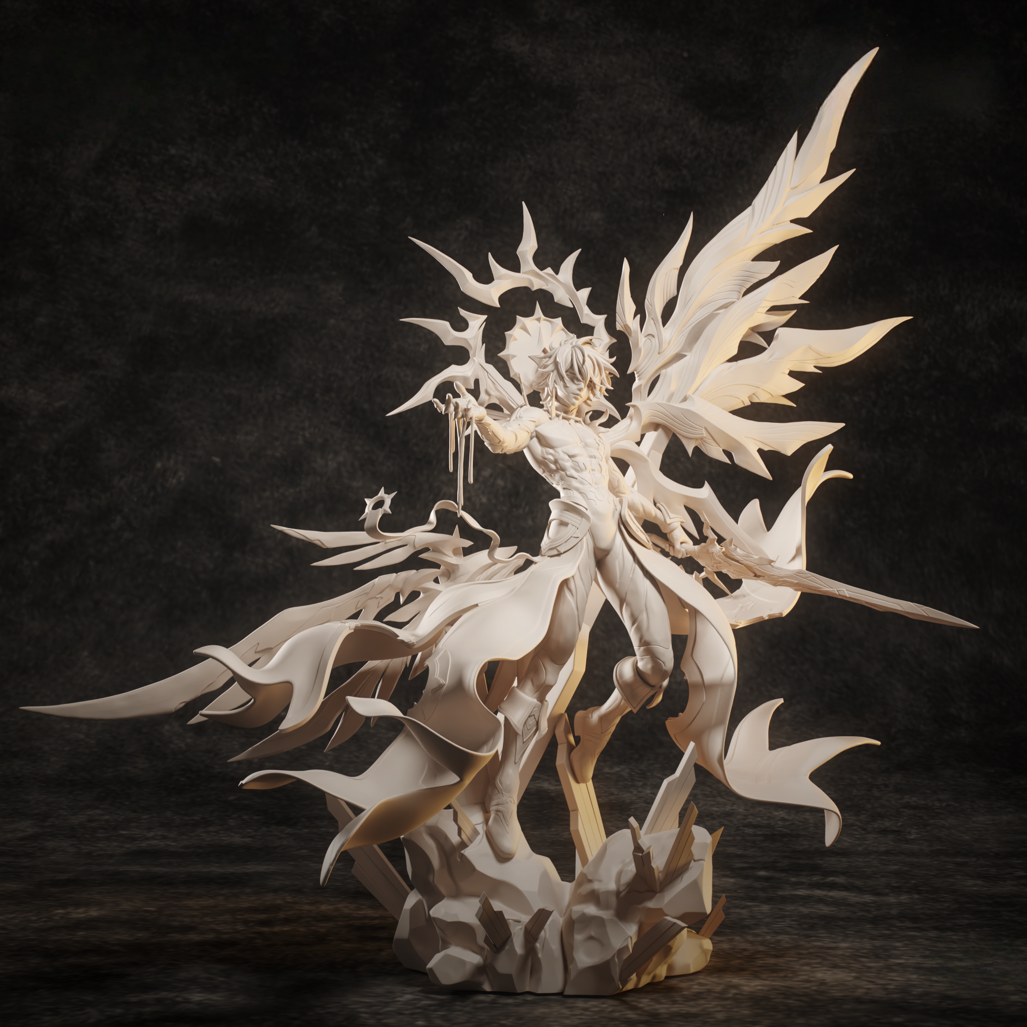 Фигура Phainon из Honkai: Star Rail передаёт его как героя, который одновременно несёт в себе свет и пламя, способное сжечь всё вокруг. Его образ — это напряжённое сочетание надежды и смертоносной силы: он не просто воин, а «Deliverer» — тот, кто взваливает на плечи судьбу целого мира и идёт вперёд, зная, что сам может стать катастрофой. В его позе чувствуется тяжесть роли Хранителя, но и внутренняя сила того, кто не боится оборвать цепь проклятий, даже ценой собственного существования. Длинные волосы, блеск светящегося оружия и сложные элементы доспехов подчёркивают его мифологическое происхождение и связь с могущественными титанами. Линии плаща и фрагменты нагрудника напоминают древние знаки, будто сама форма Phainon отмечена печатью богов, выбранных им не случайно. Его взгляд сосредоточен и чуть устал, как у человека, который прошёл через милионы циклов, снова и снова сталкиваясь с той же судьбой, но всё равно решив остаться в ней последним защитником, а не безвольной тенью. Фигурка фиксирует момент, когда он готов зайти в свою «Территорию» — когда пламя Coreflame разгорается вокруг, а реальность на мгновение сжимается в точку, где он становится почти неконтролируемой силой. В этом образе есть ощущение того, что он не просто сражается за выживание, а пытается проломить саму систему, которая вечно возвращает его к той же точке. Такой Phainon в коллекции станет символом вечного огня: надежды, что не гаснет, и силы, которая не щадит даже самого себя.