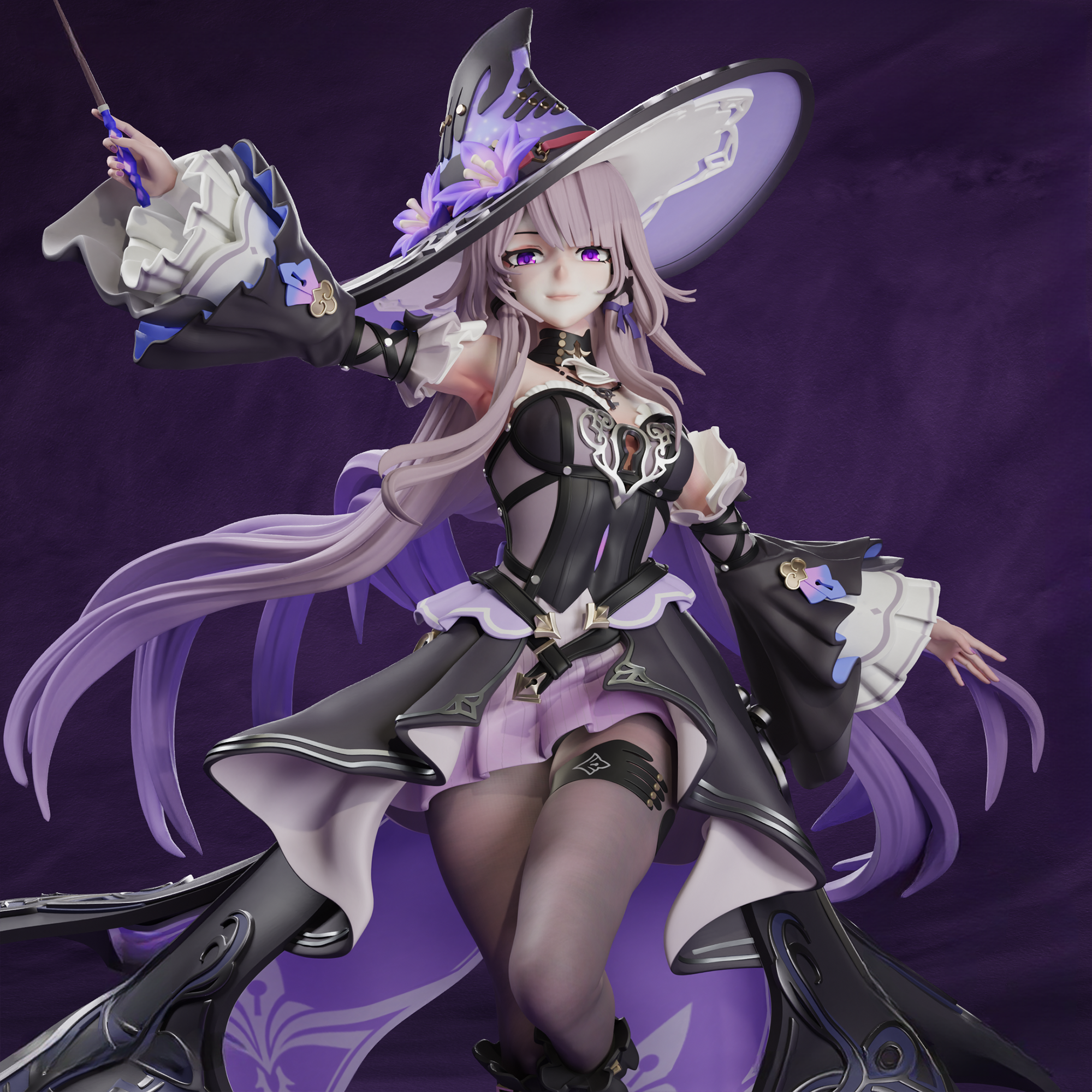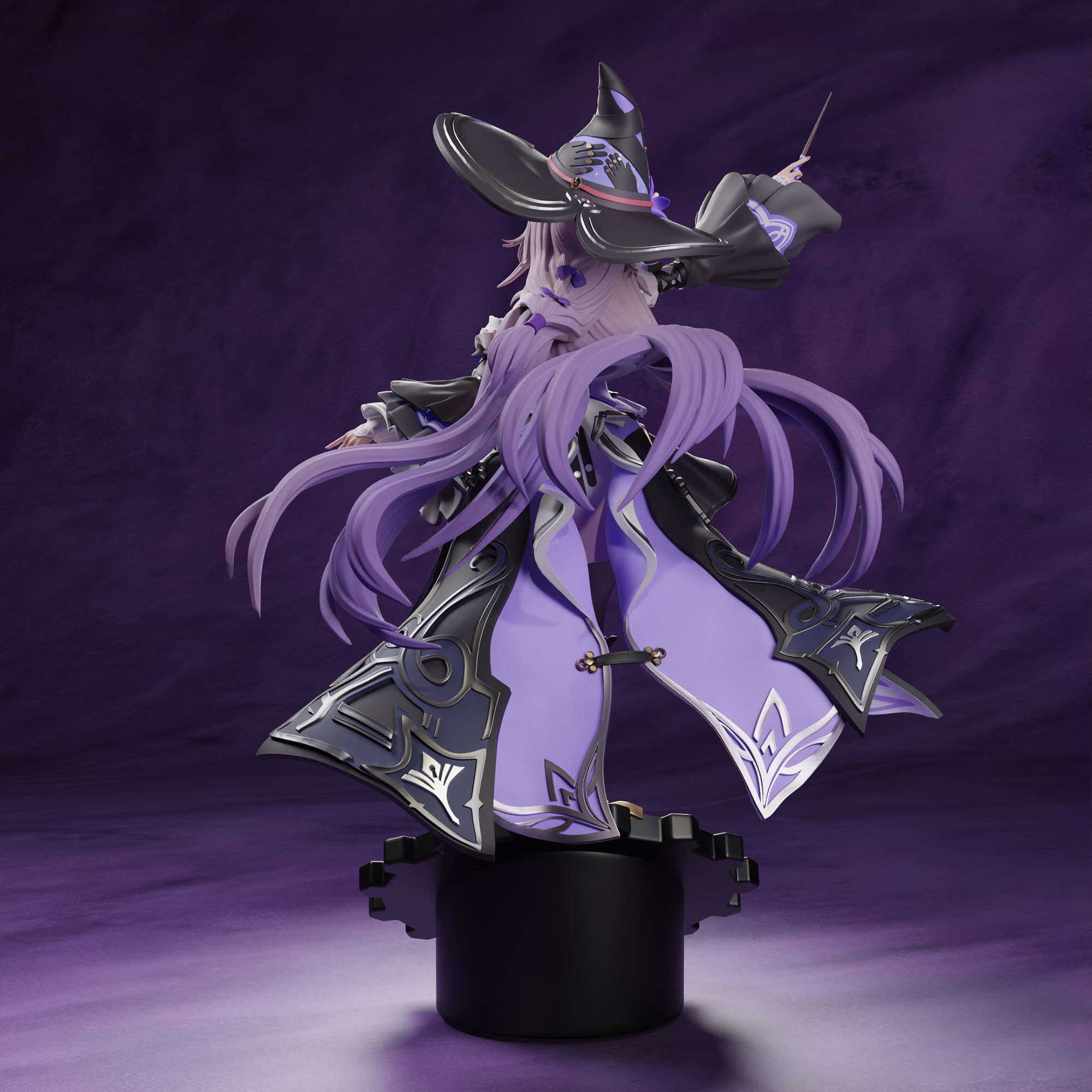 Фигура Herta построена вокруг ощущения холодного превосходства и интеллектуальной дистанции. Образ считывается не как «живая» героиня, а как идеально контролируемая проекция — поза уверенная, почти демонстративная, с подчёркнутой отстранённостью. Визуально она будто присутствует здесь лишь формально, оставляя ощущение, что её настоящее внимание направлено куда-то гораздо дальше. Одежда и декоративные элементы проработаны с акцентом на аккуратную симметрию и чёткие формы: гладкие поверхности, строгие линии, минимальные и выверенные акценты. В деталях нет эмоциональной мягкости — всё выглядит как результат расчёта, а не импровизации. Даже мелкие элементы подчёркивают ощущение искусственности и контроля. Лицо передано с характерным выражением лёгкого пренебрежения и интеллектуального превосходства. Взгляд холодный, почти насмешливый, будто фигура осознаёт собственную условность и играет с этим. В результате образ воспринимается не как классическая героиня, а как концепт — воплощение разума, дистанции и самоуверенности, что делает фигурку особенно выразительной и нестандартной в экспозиции.
