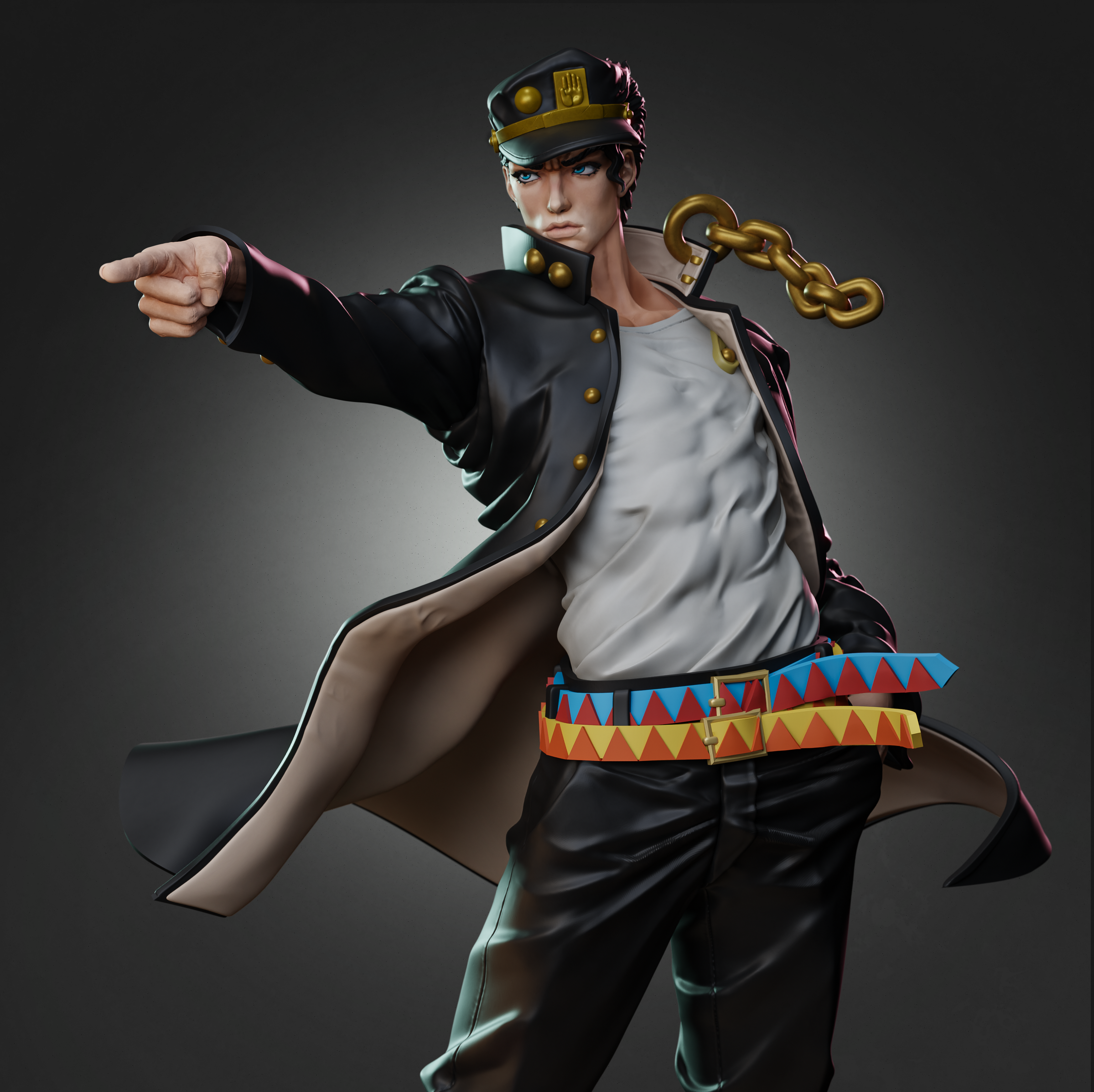 Фигура Jotaro Kujo из JoJo’s Bizarre Adventure передаёт его непоколебимую решимость и хладнокровную уверенность, которые делают персонажа мгновенно узнаваемым. Поза собрана и сдержанна: она демонстрирует готовность к действию без лишней театральности, подчёркивая характер стойкого и стратегически мыслящего героя. Экипировка выполнена с акцентом на характерные детали: длинное пальто, рубашка и фирменная шляпа создают визуально узнаваемый силуэт, а складки ткани и линии форм придают ощущение объёма и динамики, не перегружая образ. Композиция выглядит гармонично и целостно, подчёркивая строгую и уверенную натуру персонажа. Лицо Jotaro выражает сосредоточенность и внутреннюю силу: взгляд прямой и холодный, губы сжаты, без лишней эмоциональности. Фигурка фиксирует момент, когда персонаж полностью готов действовать, делая образ живым и выразительным, подчёркивая его стойкость и хладнокровие для коллекции.