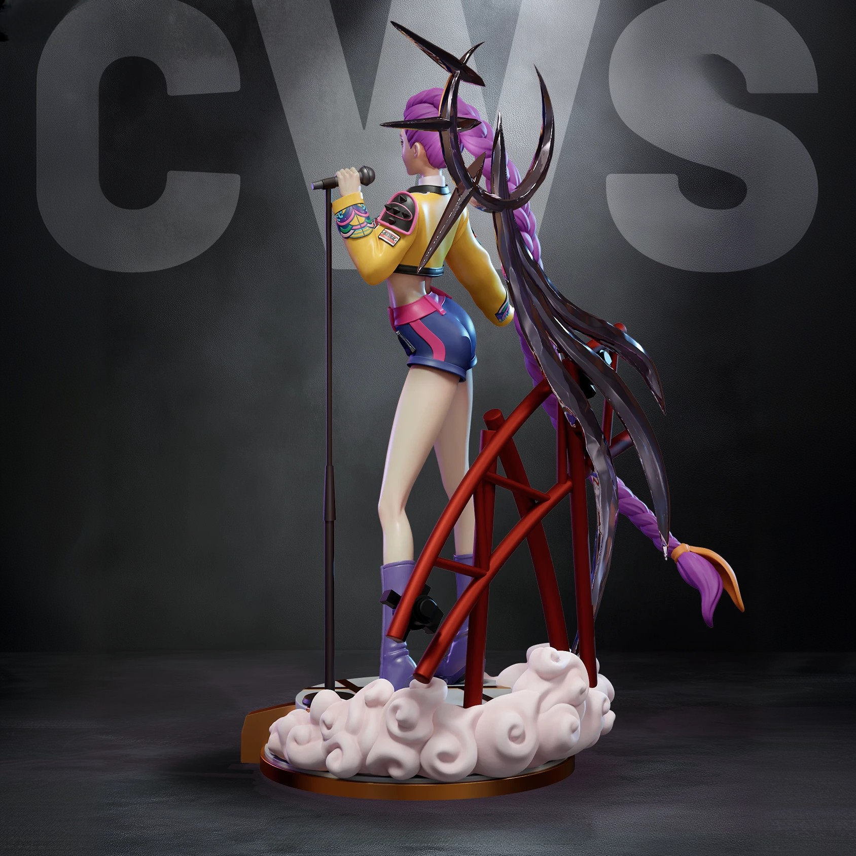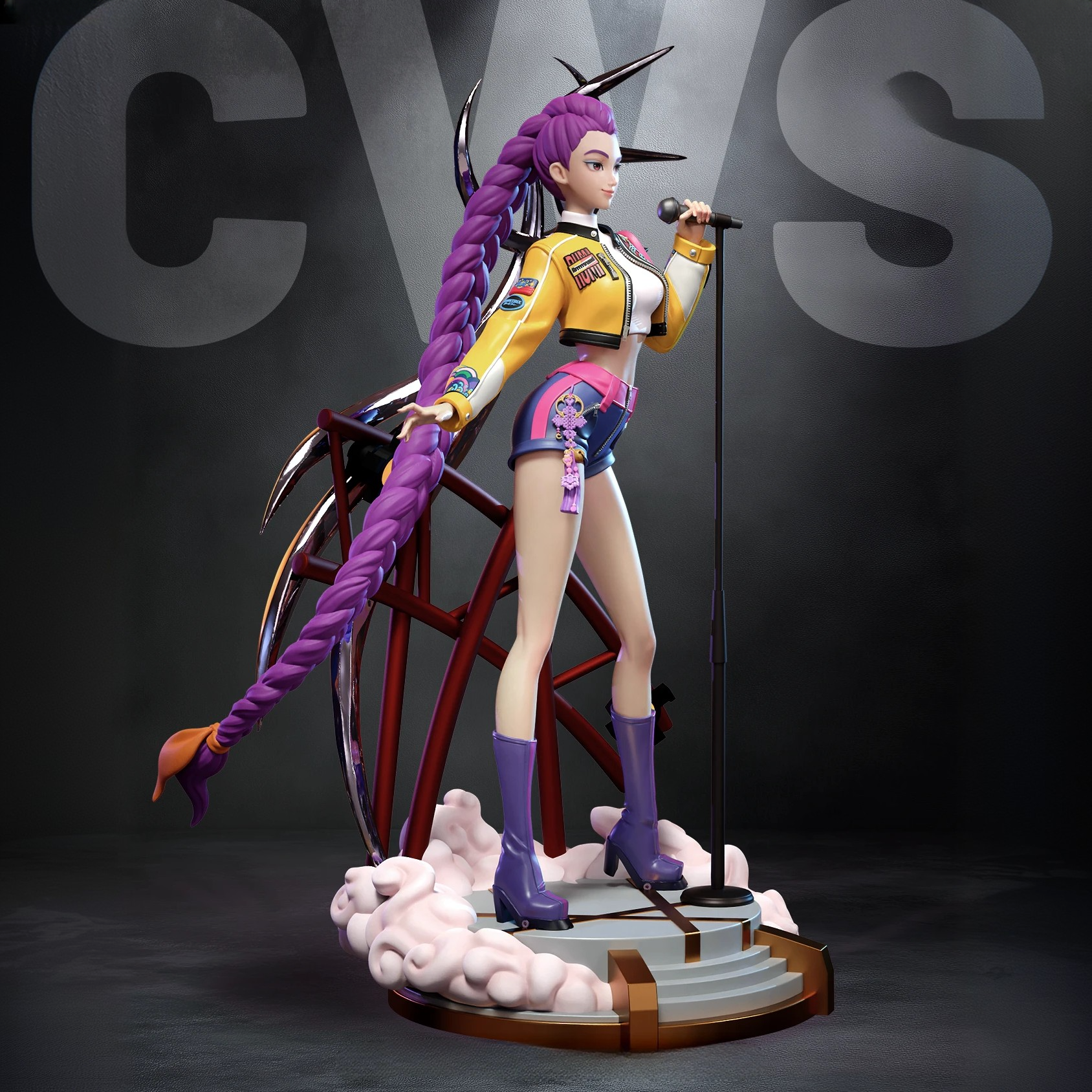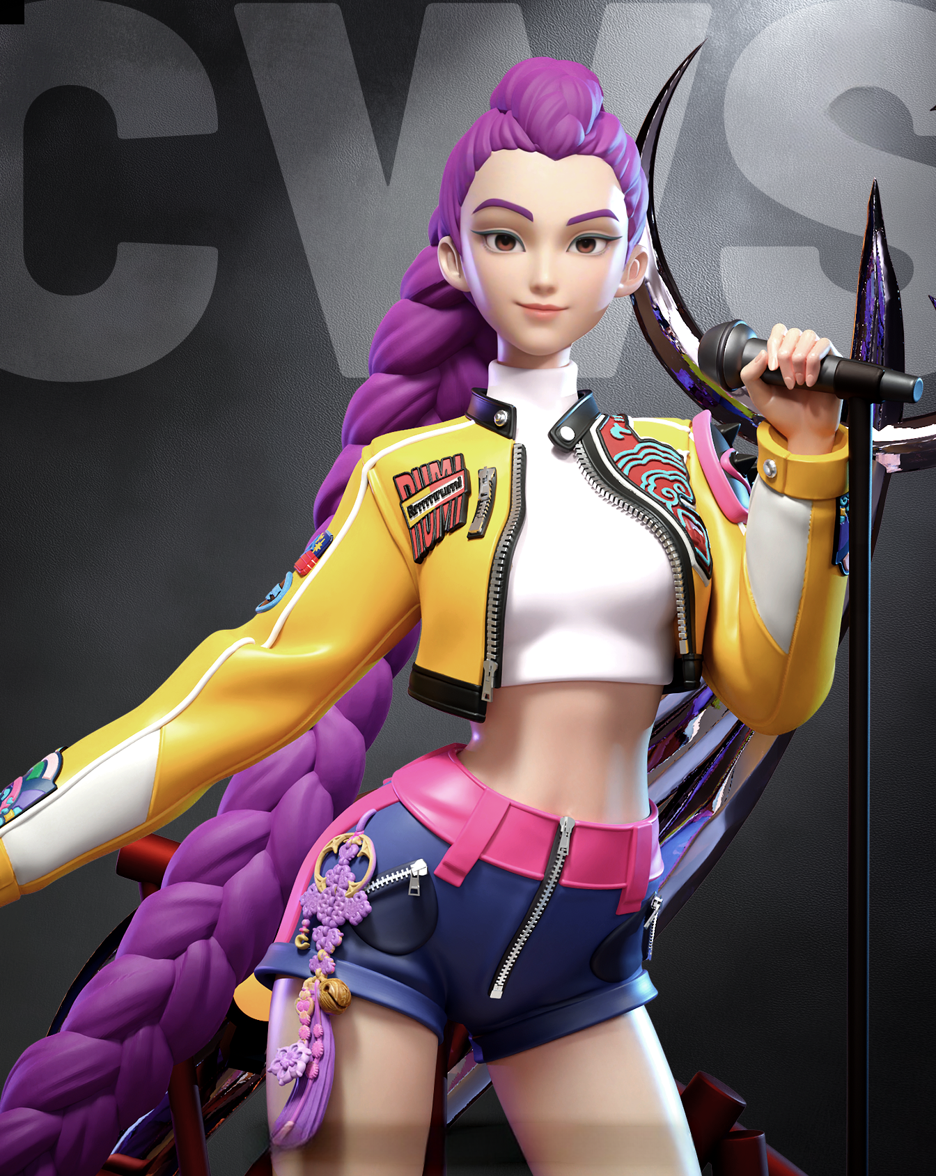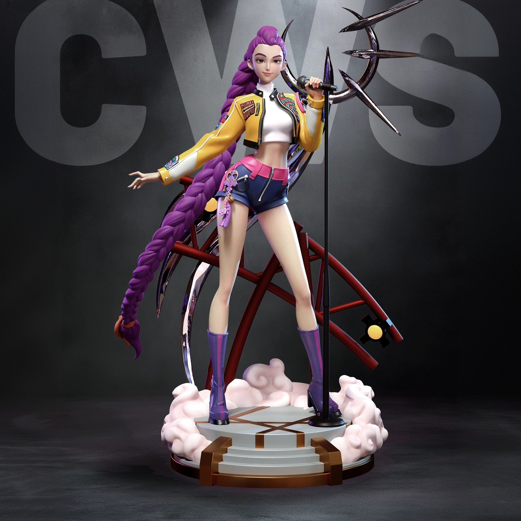 Фигура Rumi из K-Pop Demon Hunters передаёт её яркий, экспрессивный характер и энергию сцены, которая не исчезает даже вне движения. Она не просто участница группы — она центр внимания, чья харизма ощущается сразу: глаза наполнены огненной решимостью, губы слегка приподняты, будто вот-вот зазвучит бит. Её костюм отражает стиль, где танцевальные мотивы переплетаются с боевыми акцентами: мягкие ткани соседствуют с массивными ремнями и аксессуарами, а линия силуэта подчёркивает динамику и активность. Текстуры выполнены так, что зритель ощущает свободу движения, будто она только что сошла с подиума или закончила эффектную сцену боя с демоном. Лицо Rumi не демонстрирует агрессию — это уверенность, которая не нуждается в выкриках. Взгляд направлен прямо, с ясной целью и внутренним ритмом, как у исполнителя, который слышит музыку даже в тишине. Такой образ делает фигурку не просто внешним портретом персонажа, а визуальным выражением её энергии — живой, мощной, музыкальной и готовой к следующему движению. В результате статуя выглядит не как пафосная сцена, а как зафиксированный момент живого выступления, который не теряет своей силы и без звука.