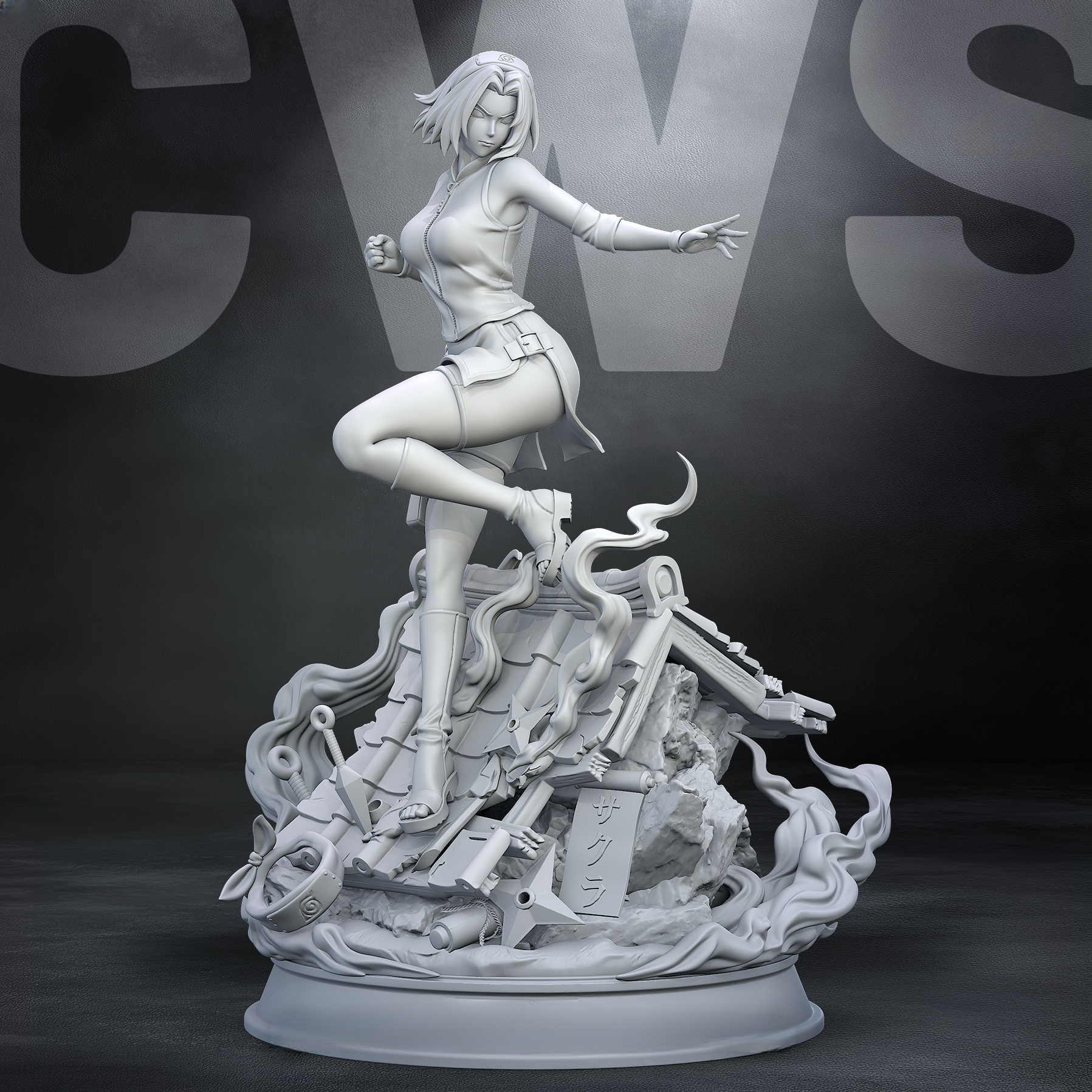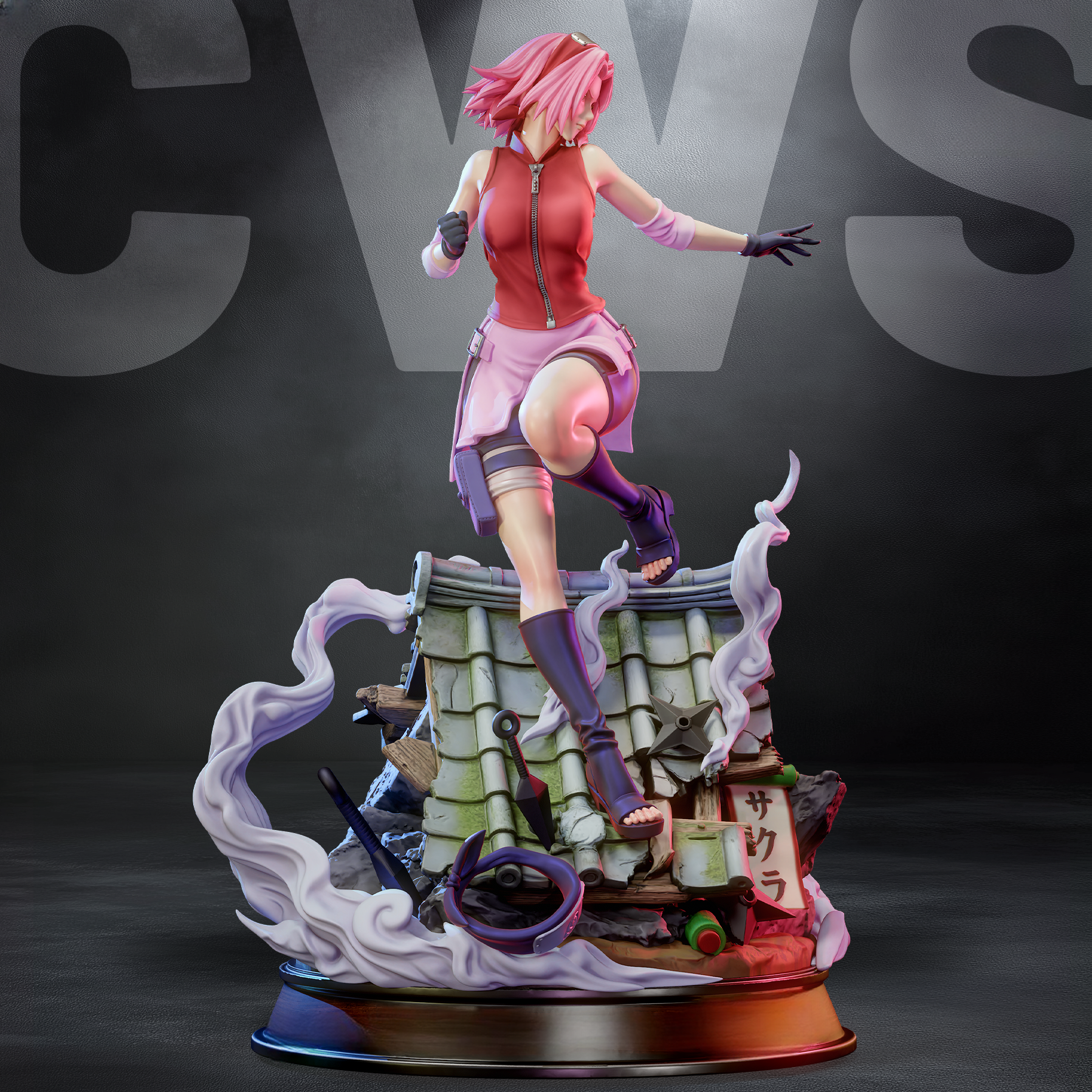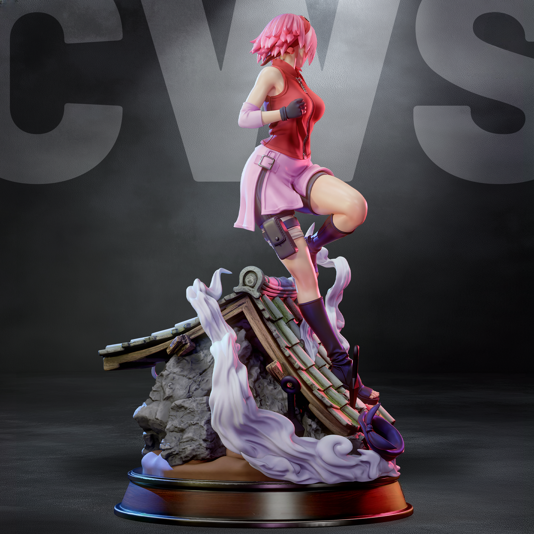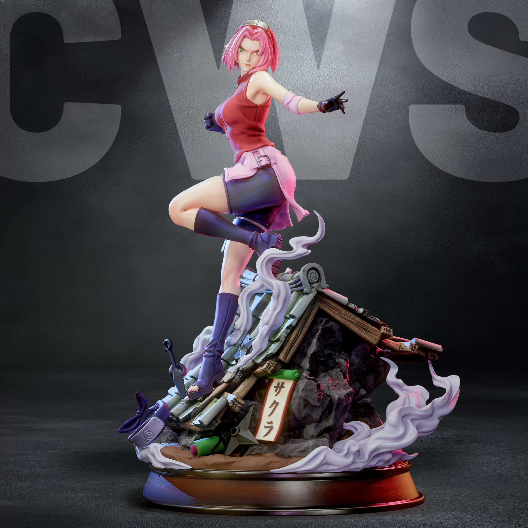 Фигура Sakura Haruno из Naruto передаёт её как сильную, уверенно выглядящую кунночи, через которую чувствуется путь от робкого школьника до профессионального мед‑ниндзя и бойца высокого уровня. Внешне она выглядит аккуратной и подтянутой: короткие розовые волосы, чёткие черты лица, спокойный, но внимательный взгляд, в котором уже нет прежней робости, а больше чувствуется собранность и готовность к бою или лечению. В фигурке подчёркнута её сила и работа с чакрой: она стоит в уверенной, слегка напряжённой позе, как будто только что заняла оборонительную или ударную стойку, а в руках ощущается мощь «сверхчеловеческой силы», которую она развивает после обучения у Цунаде. Одежда выглядит сочетанием практичной кунночи и элемента медика — лёгкая броня, закрытый рукава, ремни и элементы, которые позволяют легко двигаться, но при этом не мешают быстро накладывать печати или наложить повязку. Эта фигура фиксирует Sakura в момент, когда она уже не просто «интерес к Саске» и соперник с Ино, а полноценный оперативник, который умеет сражаться, лечить и поддерживать целый отряд. В таком образе она остаётся сильной и сдержанным героиней, опирающейся на мощный контроль чакры, медицинские навыки и прямолинейную, но честную манеру общения.