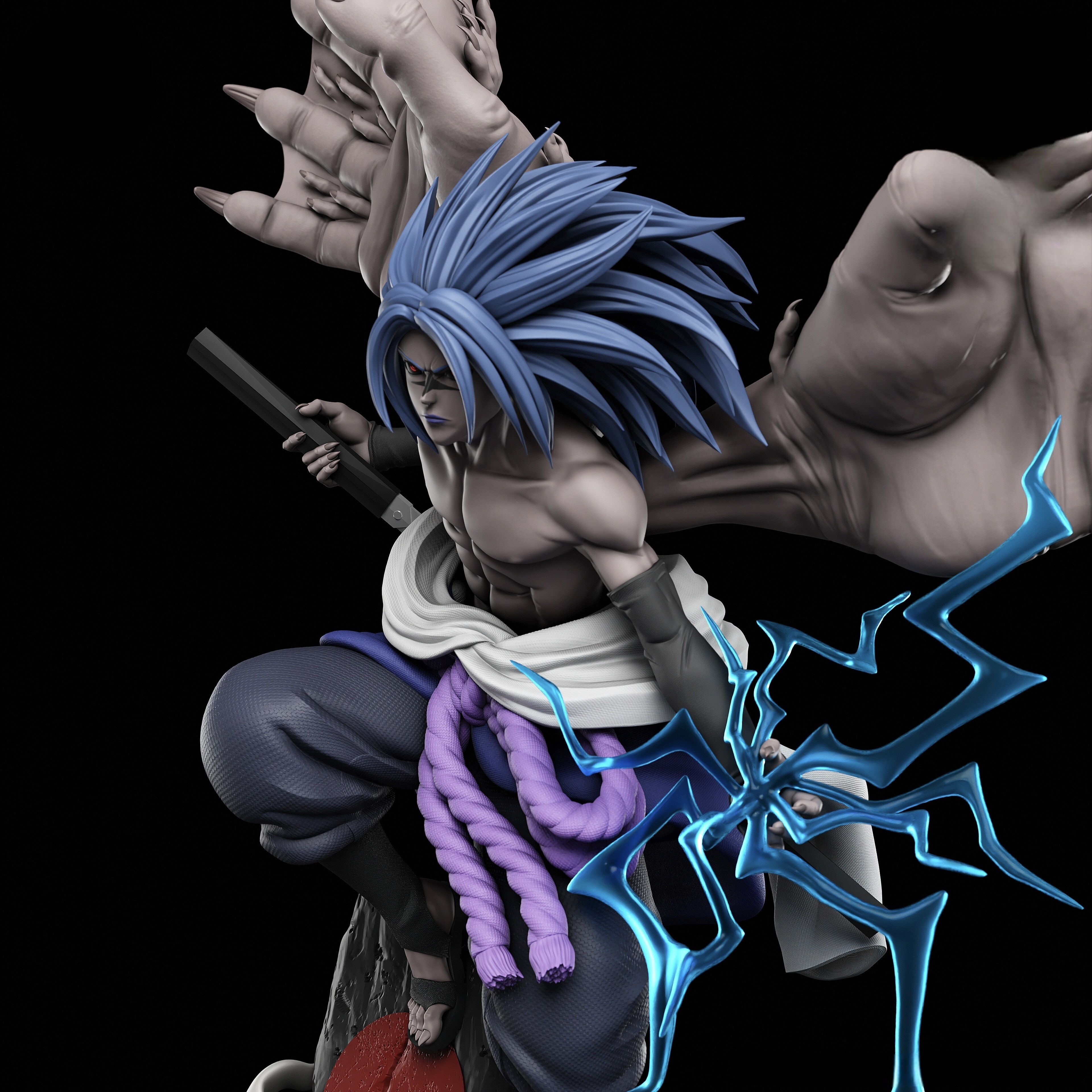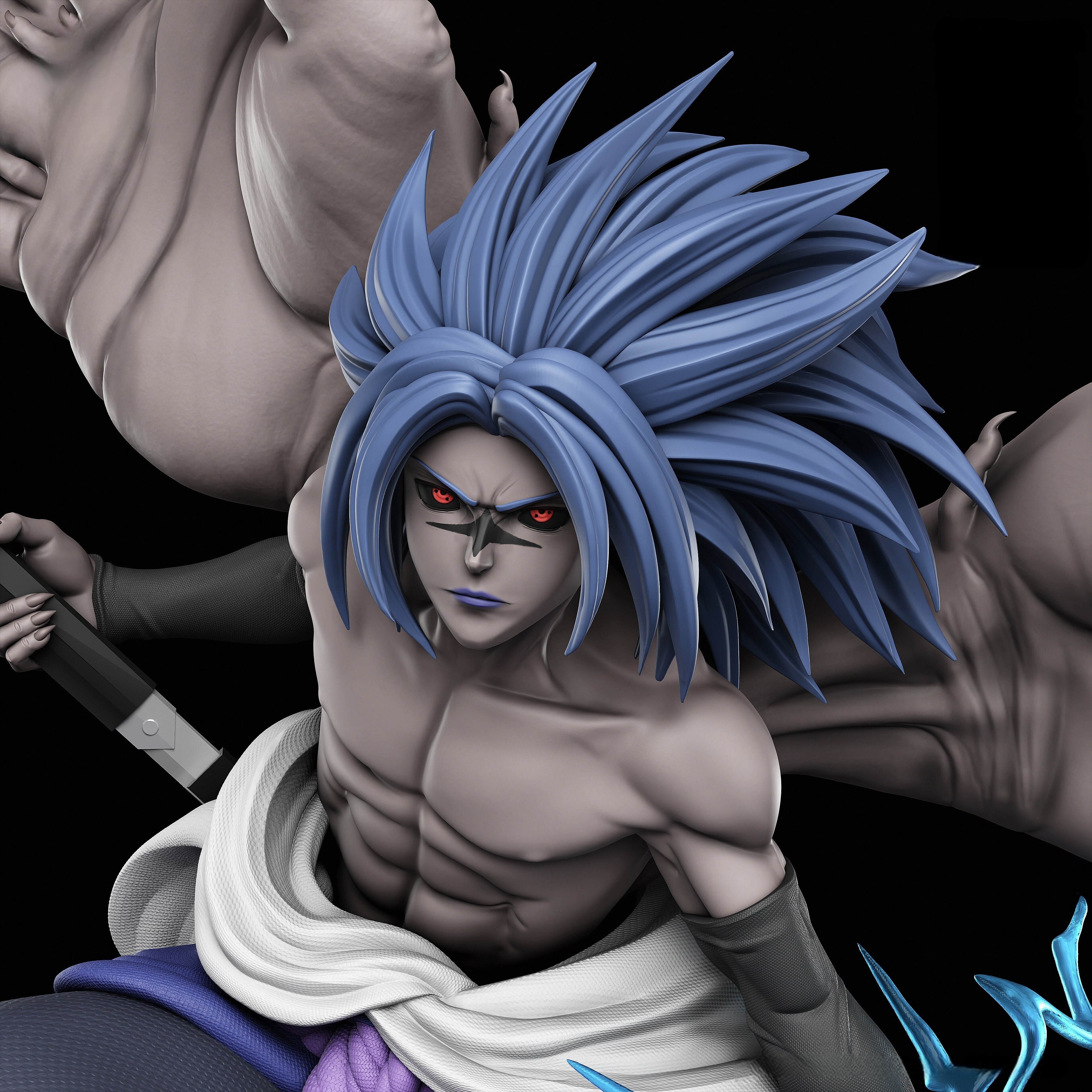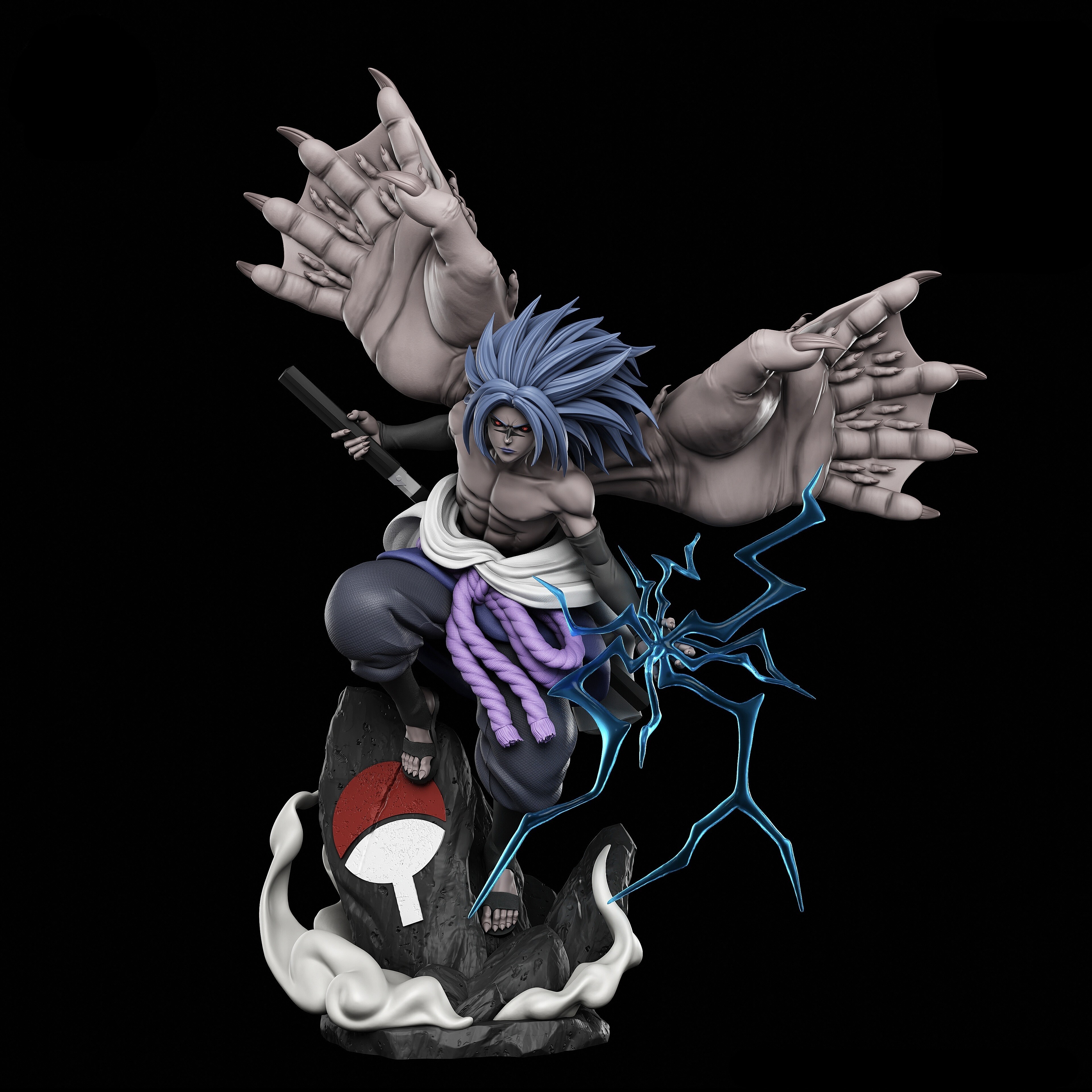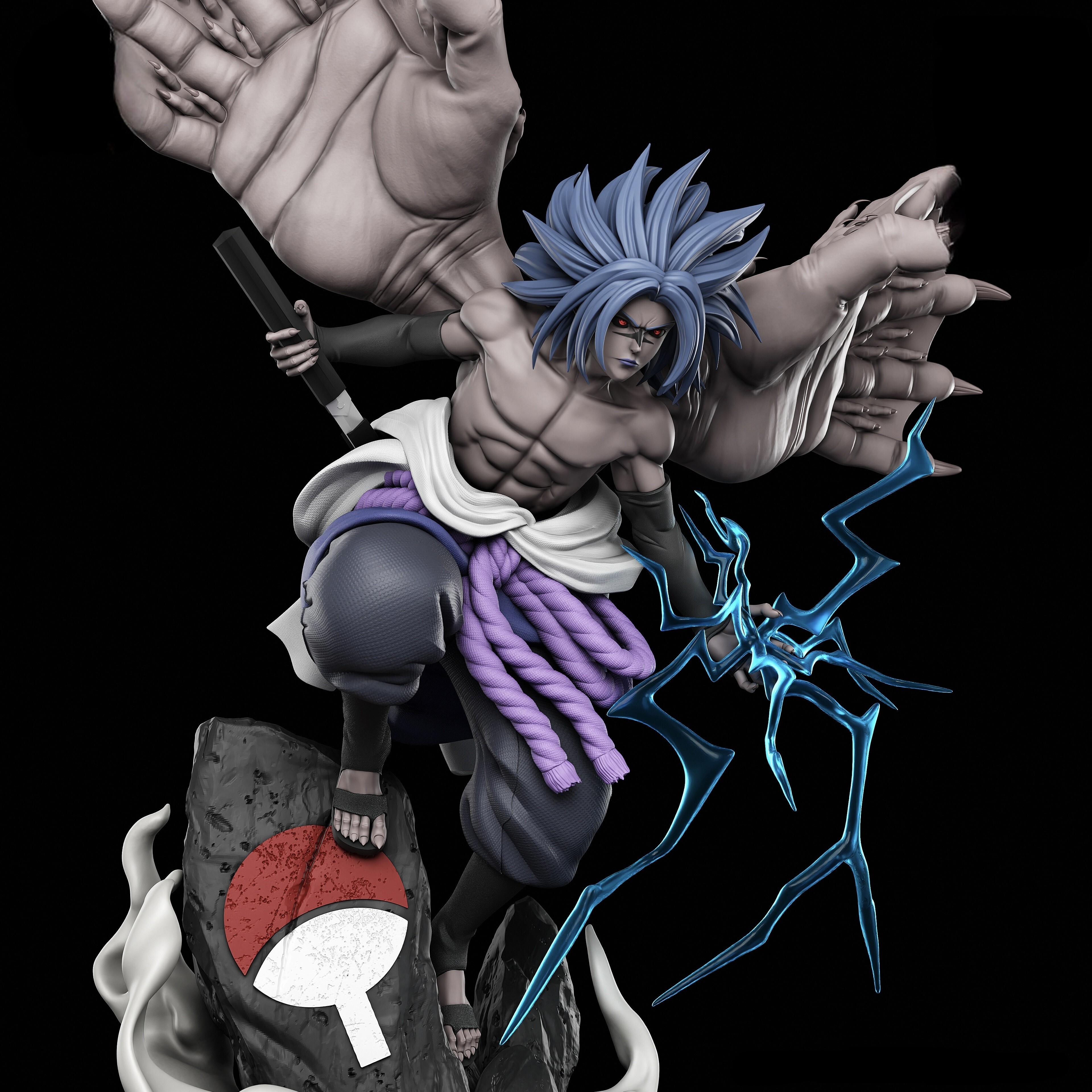 Фигура Саске в форме «Metamorphosis» превращает легендарного шиноби в тёмный символ внутренней борьбы и демонической мощи. Его кожа окрашена в тёмно‑серый тон, волосы стали длиннее и потемнели, глаза — жёлтые (за исключением моментов с Шаринганом), склеры — чёрные, а на переносице — чёрная звёздчатая метка. На спине выросли перепончатые крылья — жутковатые, но стильные, превращающие фигуру в нечто большее, чем просто человек. Когтистые ногти, сине‑голубые губы, тень ядовитого синего оттенка на лице — каждая деталь подчёркивает, что перед вами не просто шиноби, а существо, опутавшее себя чужой силой. Этот образ — не про героизм, а про цену, которую Саске заплатил за власть: усиленная скорость, сила и выносливость, но и постепенная потеря себя, склонность к внутренним демонам и зависимость от чужого чакры. Фигура передаёт этот конфликт: она не агрессивна в пафосном смысле — она статична, но напряжённая. Стоя, Саске будто слышит в себе тот самый зов печати. Тяжесть крыльев, мрачность цвета кожи и пустой взгляд говорят об одиночестве, которое сильнее любого противника.