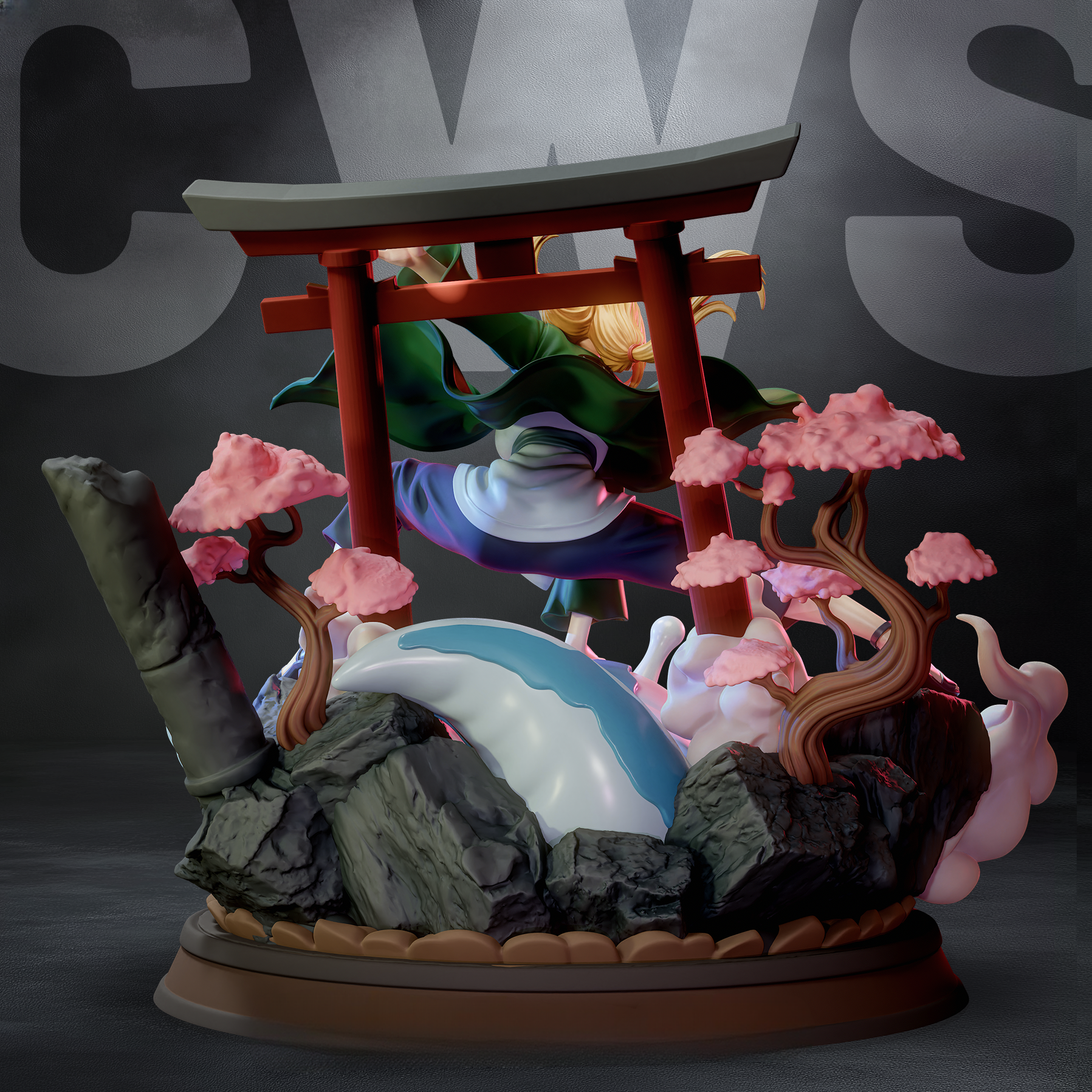 Фигура Tsunade и Katsuyu из Naruto передаёт их как идеальную связку силы и заботы, где одна из самых сильных куновичей в мире сочетается с гигантским живым инструментом целительства и защиты. Tsunade — это масштабная фигура власти и мастерства медицинского ниндзюцу, а Katsuyu — её элегантное, пластичное «продолжение», способное превратиться в облако слизней‑целителей, окутывающих поле боя и деревню одновременно. В фигурке подчёркивается момент их совместной работы: Tsunade стоит в уверенной, почти монаршей позе, а часть Katsuyu обволакивает её плечи или разделяется наveral мелких слизней, как во время вторжения Пейна, когда Konoha оказывается в опасности, и Katsuyu, напитавшись её чакрой, тянется к каждому раненому, образуя живой щит и сеть лечения над городом. В Katsuyu чувствуется спокойная, рабочая сознательность: она не рычит и не нападает, но именно эта слабая на вид слизь может спасти целую армию, перенося чакру, информацию и защиту, словно живой интернет деревни. Эта композиция фиксирует связь между человеком и зверем‑суммой, где лидерство и сострадание идут в руках. В коллекции такой образ станет символом того, как настоящая сила выглядит не только в разрушении, но и в умении удержать весь мир, который ты любишь, на ладони — даже если эта ладонь принадлежит гигантской слизи, управляемой рукавом Hokage, украшенной красной повязкой.