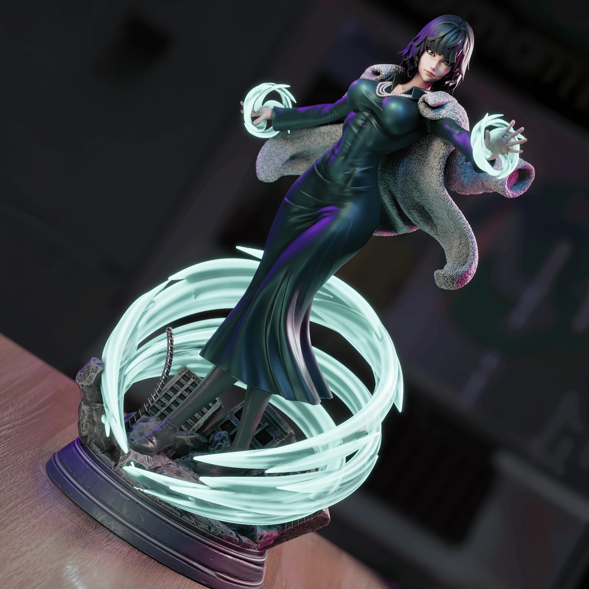 Фигура Fubuki из One Punch Man передаёт её характер через сочетание спокойной уверенности и скрытой мощи. Поза выверена и собрана: она не демонстрирует силу театрально, но ощущается, что в любой момент может её проявить, оставаясь при этом сдержанной и контролирующей ситуацию. Одежда выполнена с акцентом на плавные линии и аккуратные детали: лёгкий плащ, текстуры тканей и складки создают ощущение естественного движения и объёма, подчёркивая стройность фигуры и её динамичность без лишнего декора. Композиция остаётся целостной, гармоничной и визуально сбалансированной. Лицо Fubuki выражает сосредоточенность и внутреннюю решимость: взгляд прямой, губы сжаты, нет лишних эмоций — только уверенность и контроль. Фигурка фиксирует момент, когда Fubuki готова действовать, оставаясь при этом воплощением силы, интеллекта и самообладания, делая образ живым и выразительным в любой коллекции.