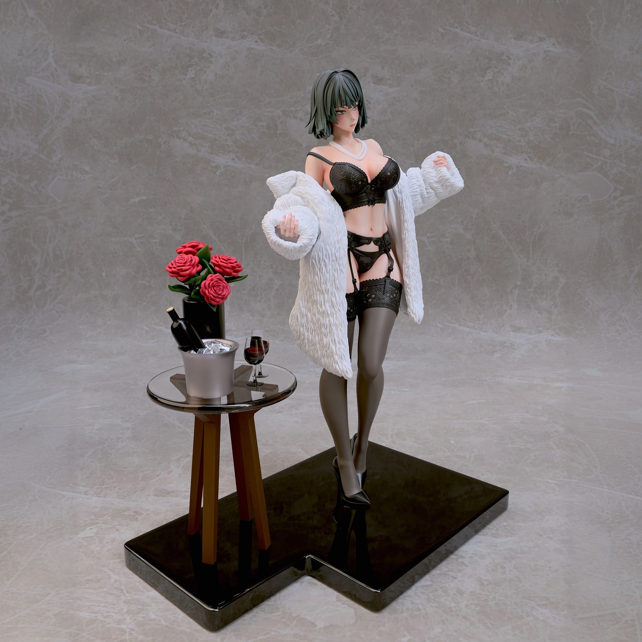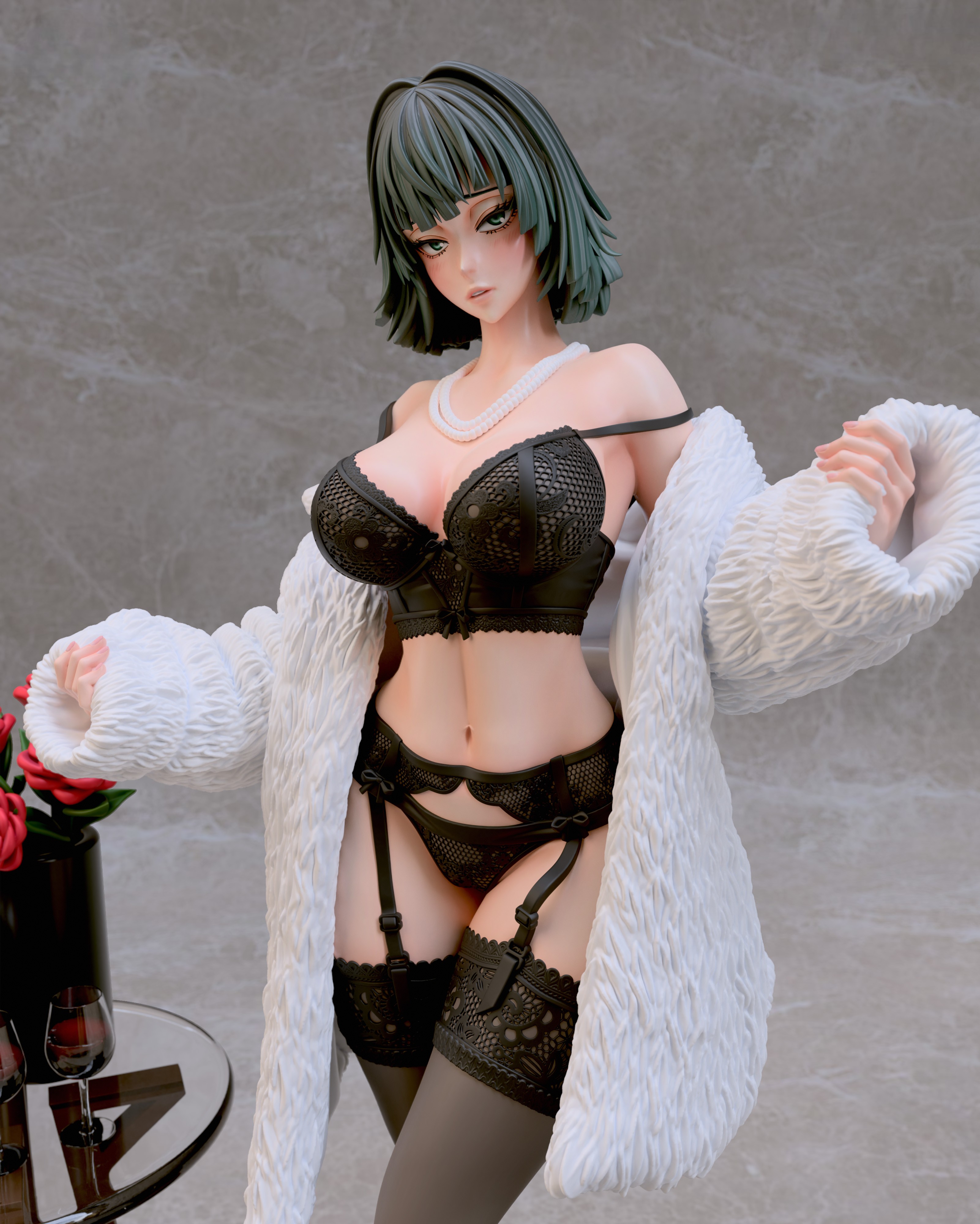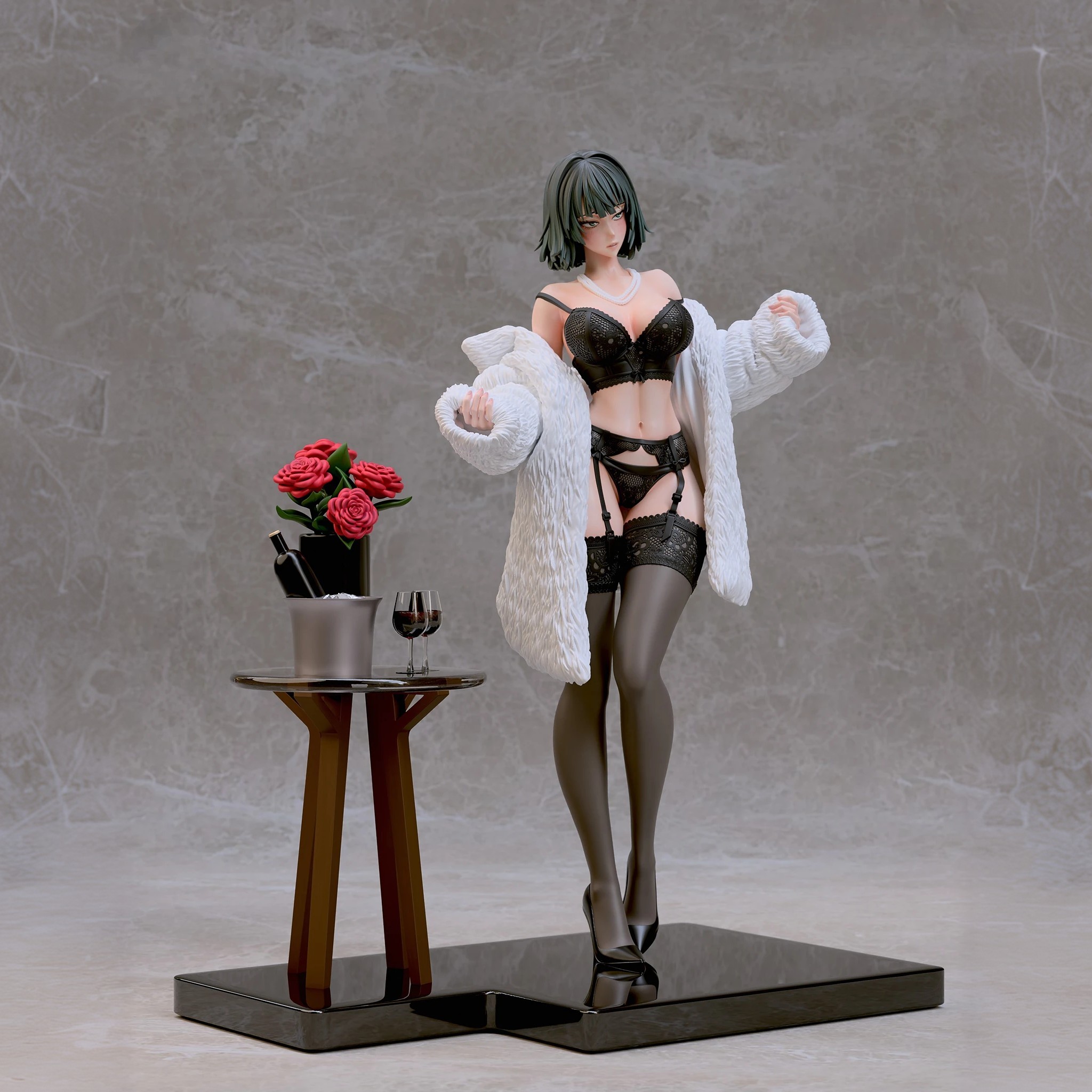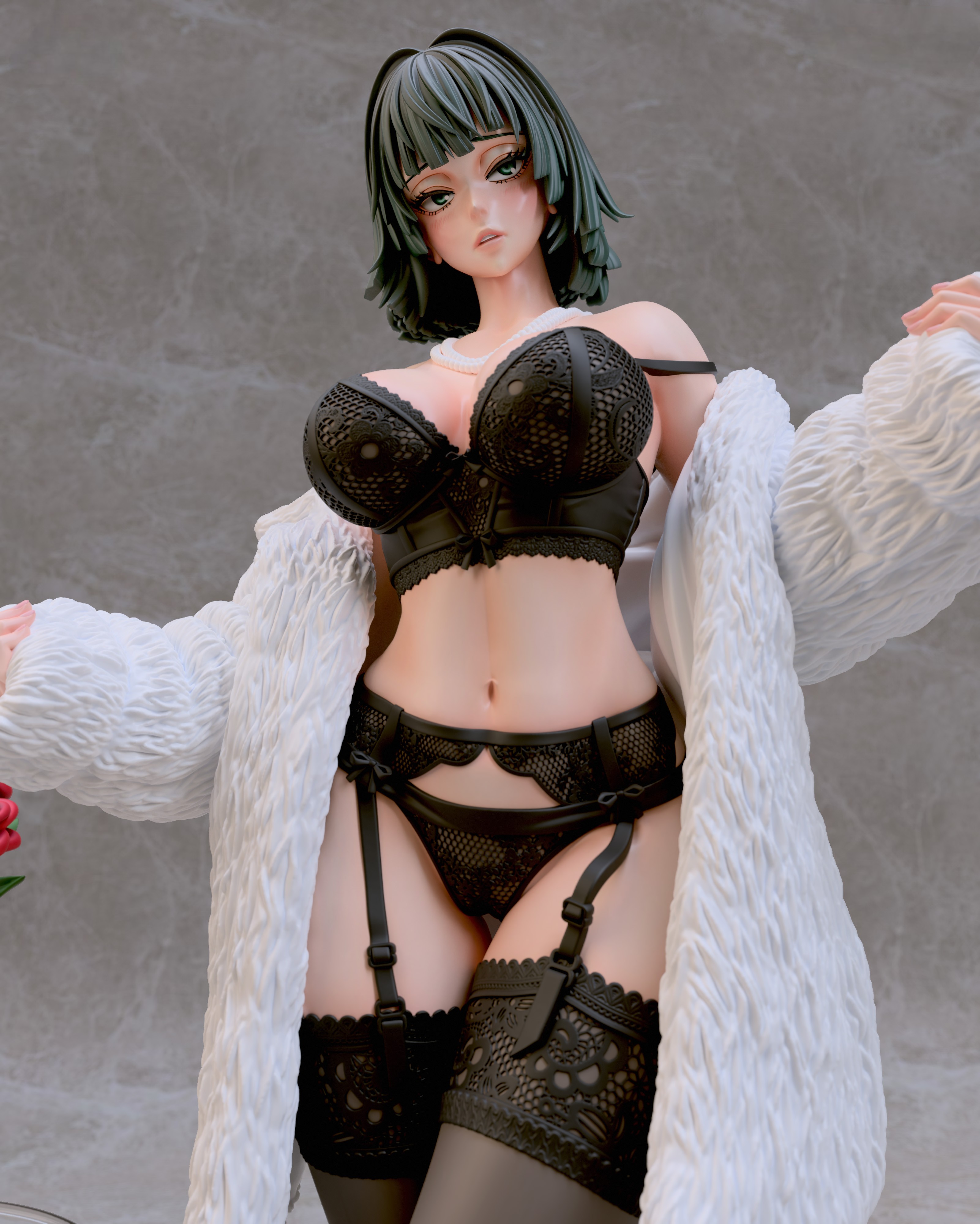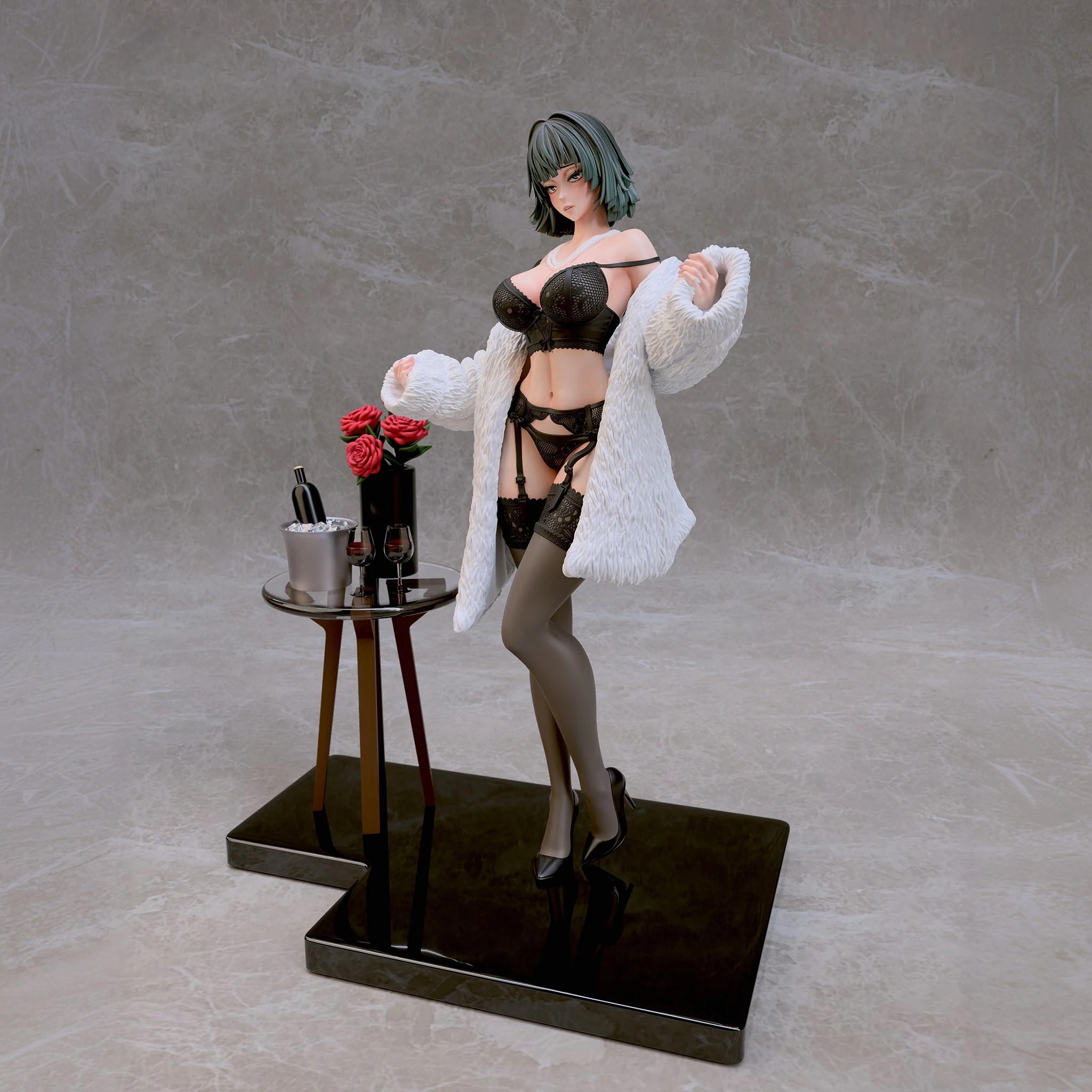 Фигура Fubuki в нижнем белье передаёт её характер через спокойную уверенность и внутреннюю собранность. Образ не строится на откровенности — лёгкая обнажённость подчёркивает природную грацию и уверенность персонажа, не превращая фигуру в фан-сервисный вариант. Поза сдержанная, без лишней театральности, создавая ощущение контроля и готовности к действию даже в непривычной обстановке. Нижнее бельё аккуратно подчёркивает силуэт, линии чистые и гармоничные, без перегруженных деталей. Это создаёт баланс между мягкостью внешнего образа и скрытой мощью персонажа, делая фигуру цельной и естественной. Выражение лица спокойное и уверенное: взгляд прямой, губы слегка приподняты, без кокетства. Фигурка фиксирует Fubuki в момент, когда её характер остаётся неизменным — сдержанным, сильным и самодостаточным, делая образ выразительным и интересным для коллекции.
