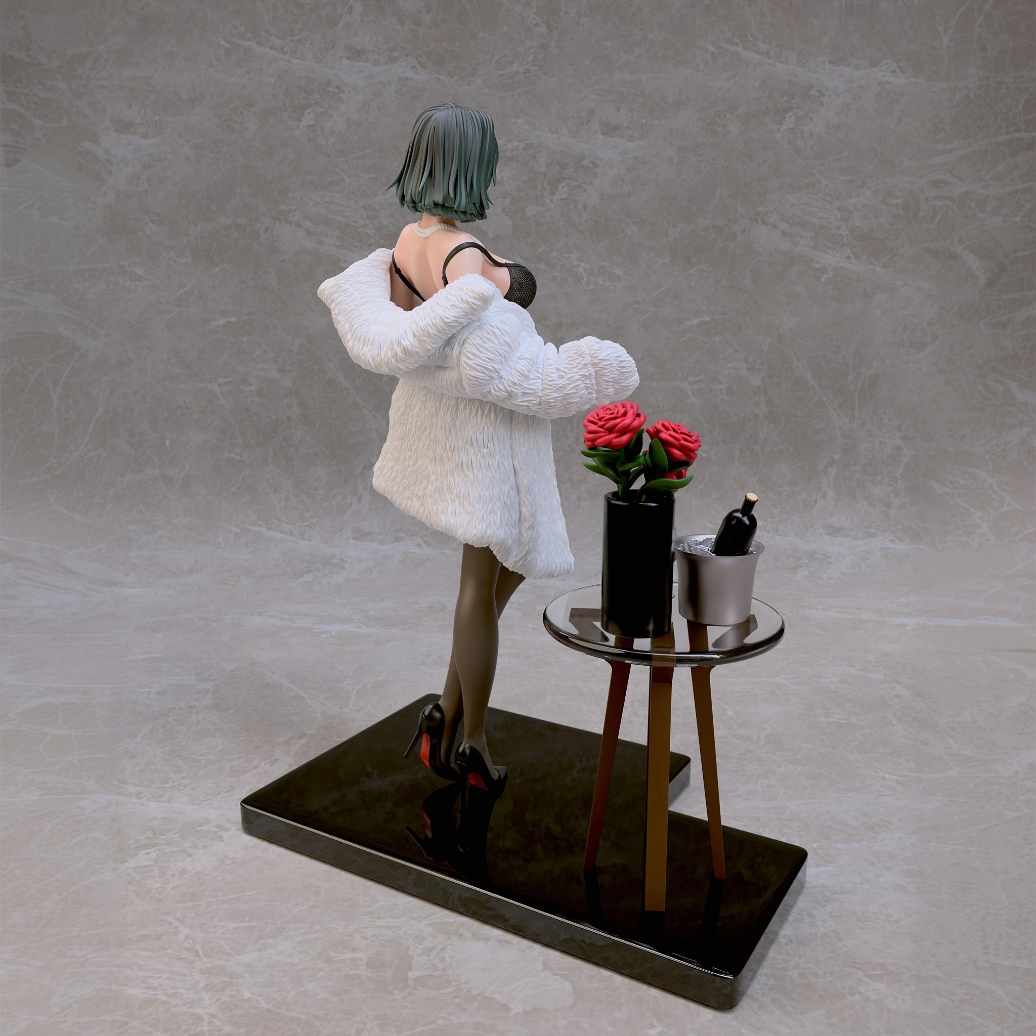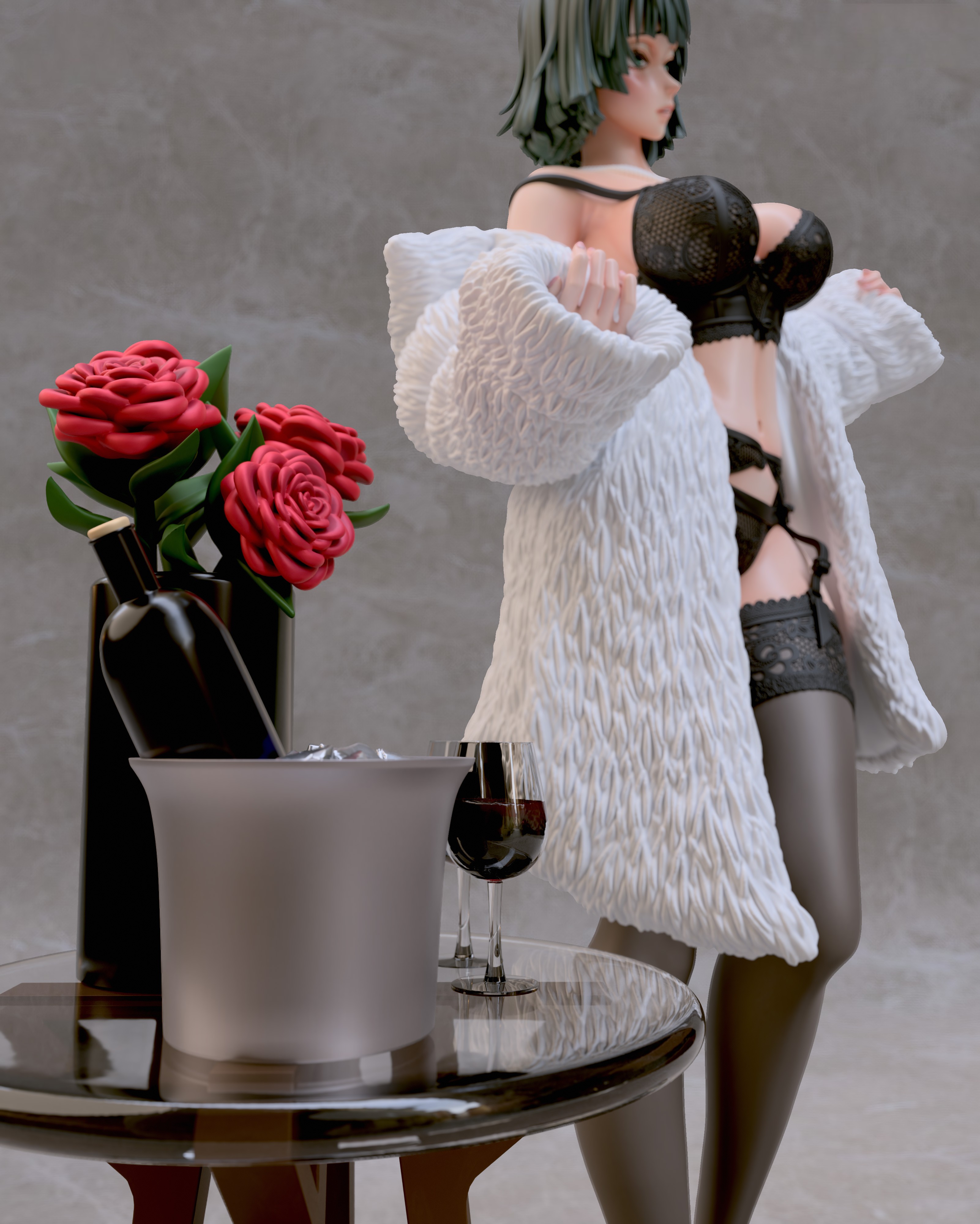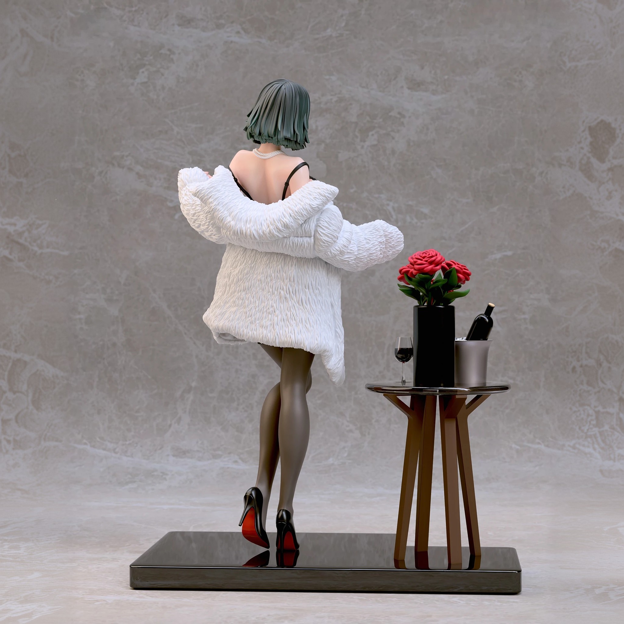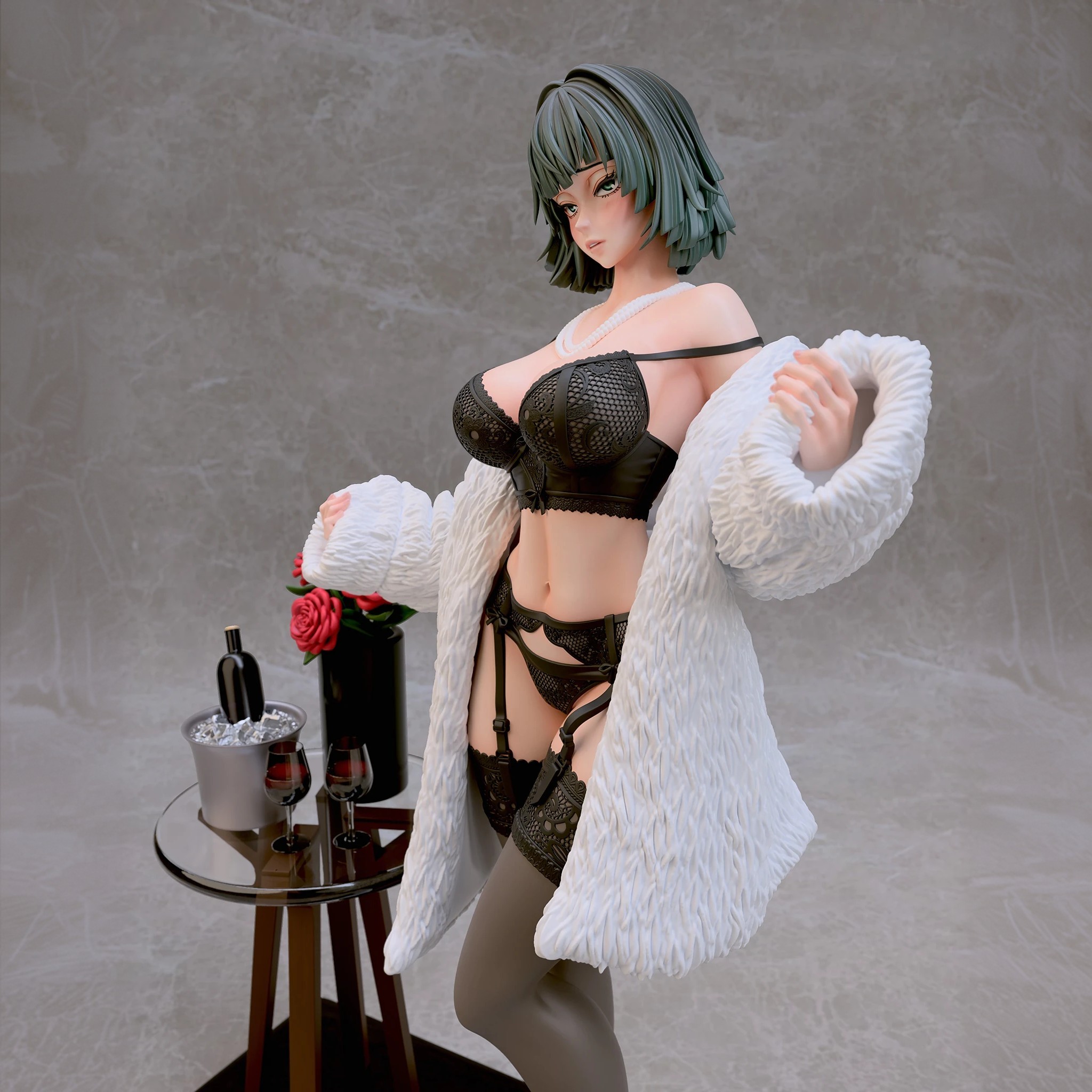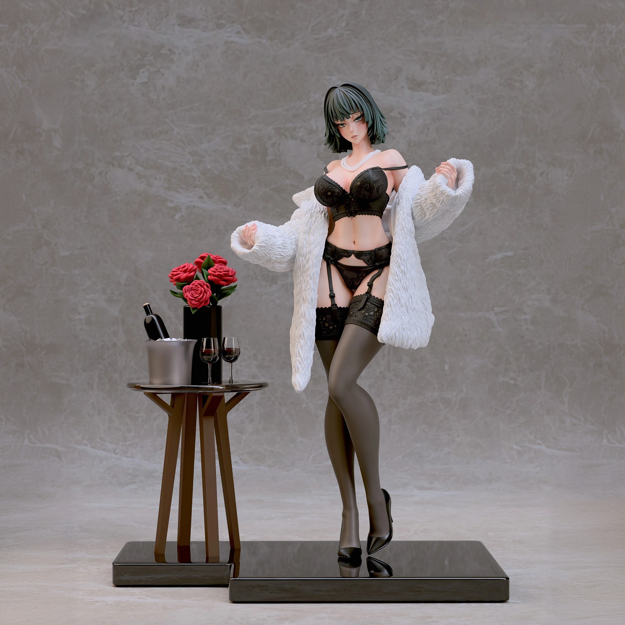 Фигура Fubuki в нижнем белье передаёт её характер через спокойную уверенность и внутреннюю собранность. Образ не строится на откровенности — лёгкая обнажённость подчёркивает природную грацию и уверенность персонажа, не превращая фигуру в фан-сервисный вариант. Поза сдержанная, без лишней театральности, создавая ощущение контроля и готовности к действию даже в непривычной обстановке. Нижнее бельё аккуратно подчёркивает силуэт, линии чистые и гармоничные, без перегруженных деталей. Это создаёт баланс между мягкостью внешнего образа и скрытой мощью персонажа, делая фигуру цельной и естественной. Выражение лица спокойное и уверенное: взгляд прямой, губы слегка приподняты, без кокетства. Фигурка фиксирует Fubuki в момент, когда её характер остаётся неизменным — сдержанным, сильным и самодостаточным, делая образ выразительным и интересным для коллекции.