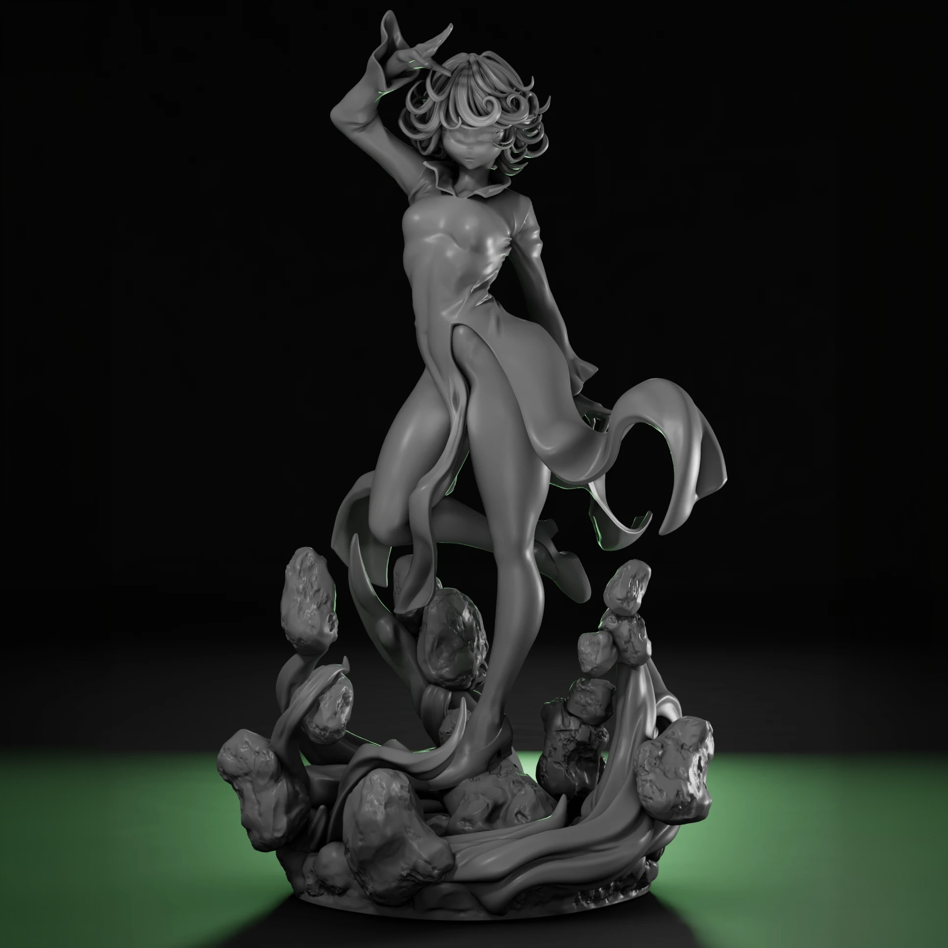 Фигура Tatsumaki из One Punch Man передаёт её непреклонную силу и характер, где каждая деталь образа подчёркивает внутреннюю концентрацию и готовность к действию. Она не демонстрирует агрессию через резкие позы — напряжение читается в естественной собранности фигуры, словно она контролирует пространство вокруг без лишних жестов. Экипировка и линии силуэта просты, но точны: лёгкое платье и элементы одежды подчёркивают хрупкость, которая контрастирует с невероятной мощью, скрытой внутри. Текстуры выполнены аккуратно, складки и драпировки создают ощущение объёма и естественности, а плавные линии формируют гармоничную композицию. Лицо выражает уверенность и решимость: взгляд сосредоточенный, губы слегка сжаты, без излишней эмоциональности. Фигурка фиксирует Tatsumaki в её привычной роли — маленькой, но опасной, сосредоточенной и безупречно контролирующей ситуацию, делая образ выразительным и узнаваемым для любой коллекции.