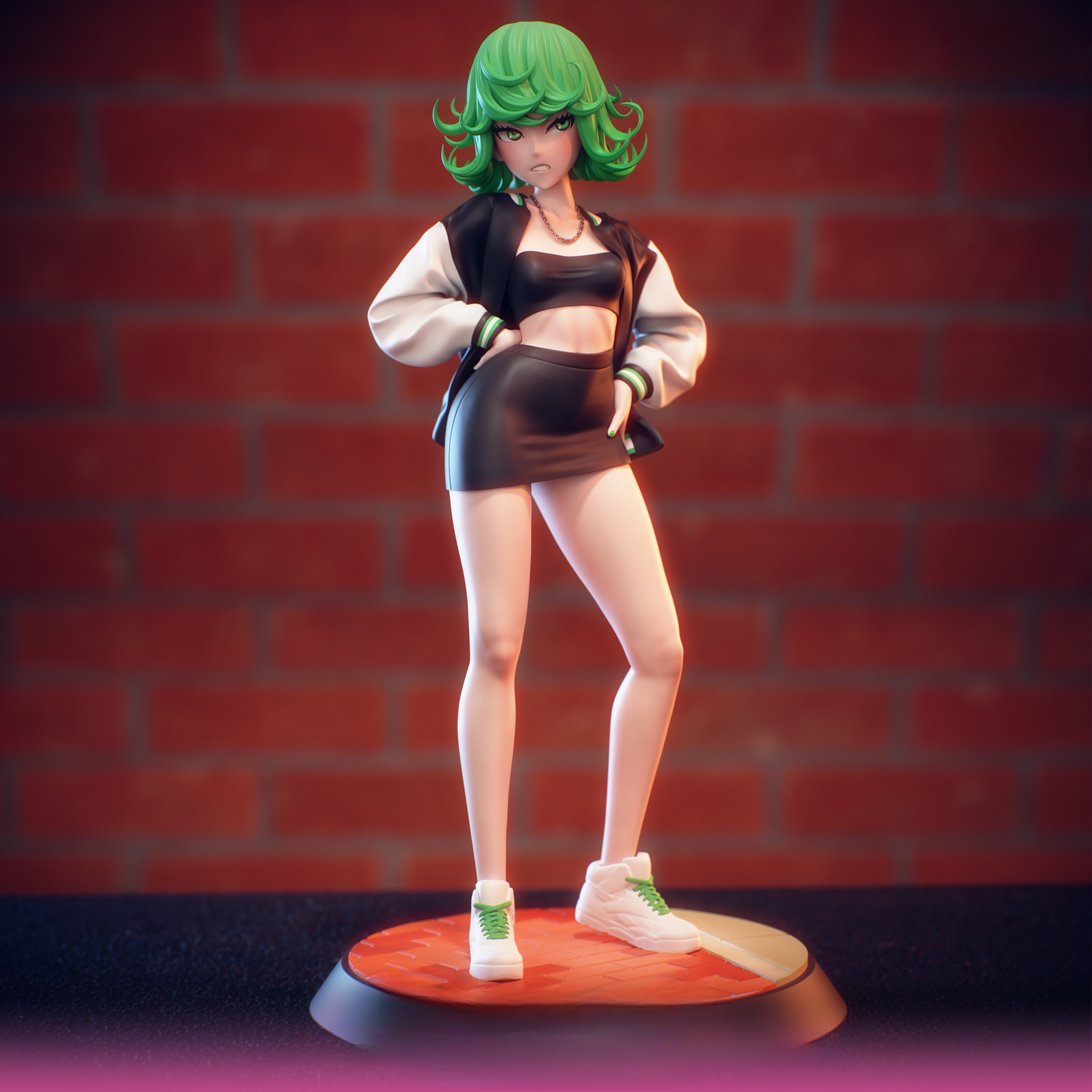 Фигура Tatsumaki в уличной одежде передаёт её характер через ощущение современного, почти повседневного присутствия, не лишённого внутреннего давления. Образ выглядит так, будто она вышла в город ненадолго, не меняя своей сути: даже в street wear чувствуется раздражающая уверенность и привычка быть выше окружающих — во всех смыслах. Одежда выполнена в лаконичном, городском ключе: свободный крой, чёткий силуэт, отсутствие лишнего декора. Street wear здесь не смягчает образ, а наоборот подчёркивает контраст между внешней небрежностью и внутренней концентрацией. Линии фигуры читаются ясно, а общий силуэт остаётся собранным и напряжённым, несмотря на кажущуюся простоту. Выражение лица остаётся характерным: холодный, немного высокомерный взгляд, минимальная мимика, ощущение постоянного контроля. Эта фигурка показывает Tatsumaki не в бою и не в экзотичном образе, а в редком, почти будничном состоянии — где она всё равно остаётся силой, с которой невозможно не считаться.