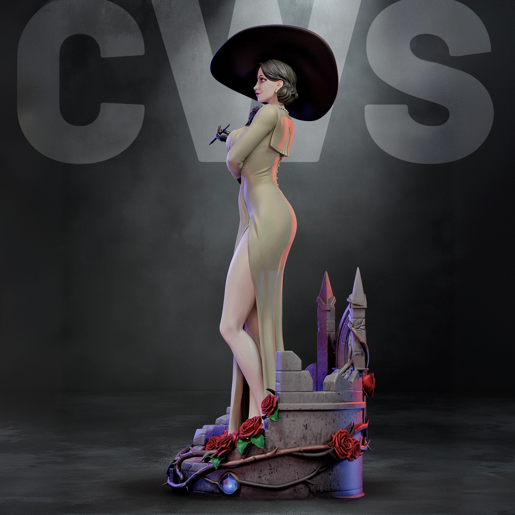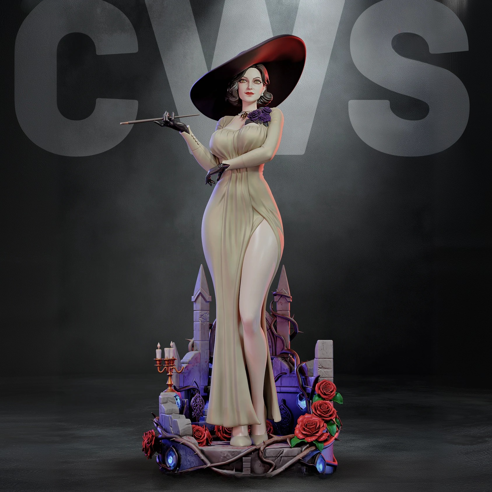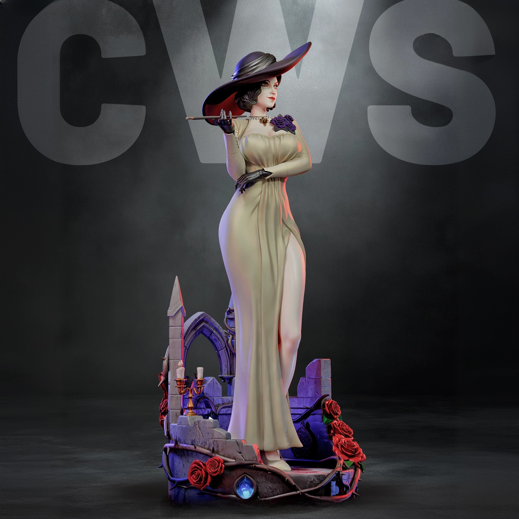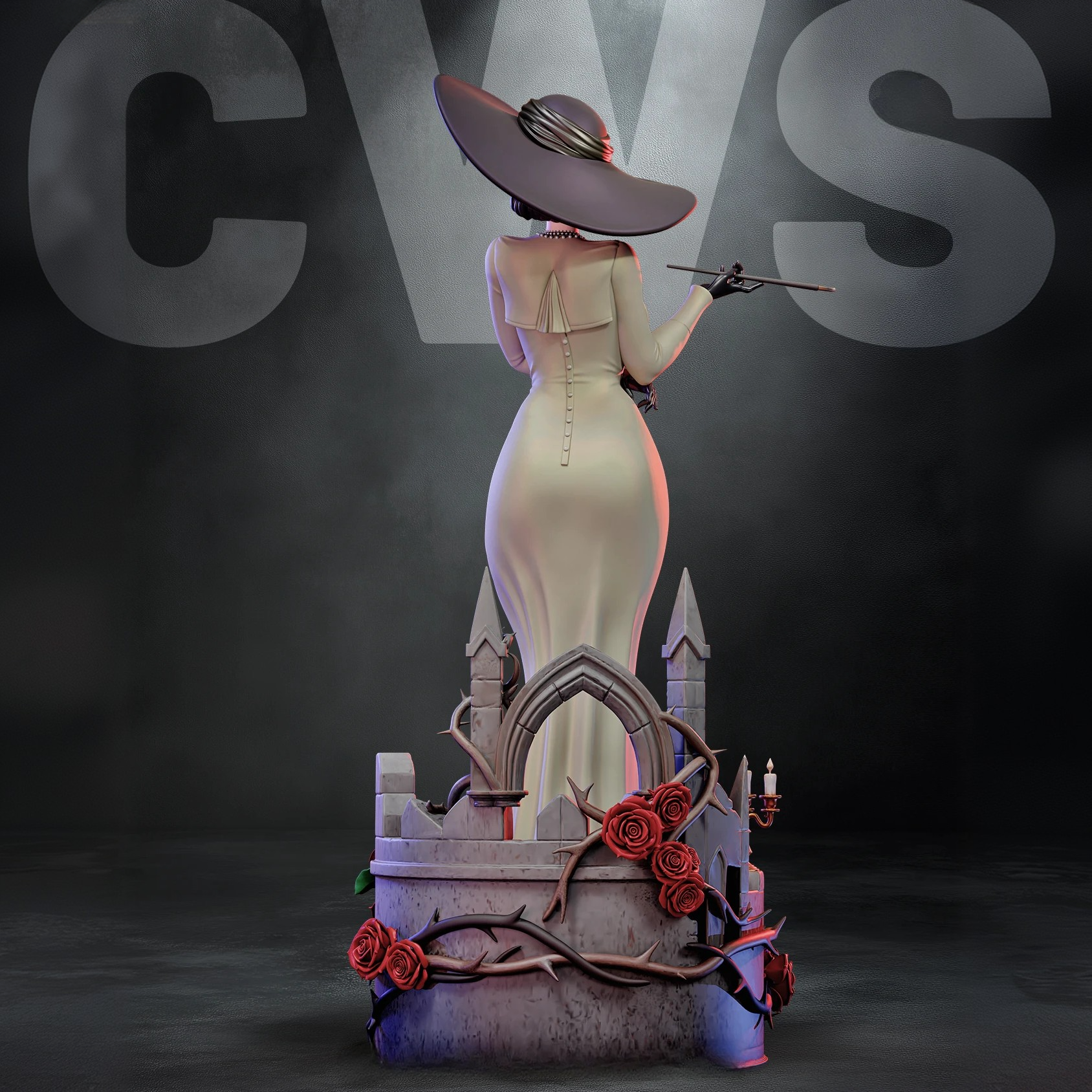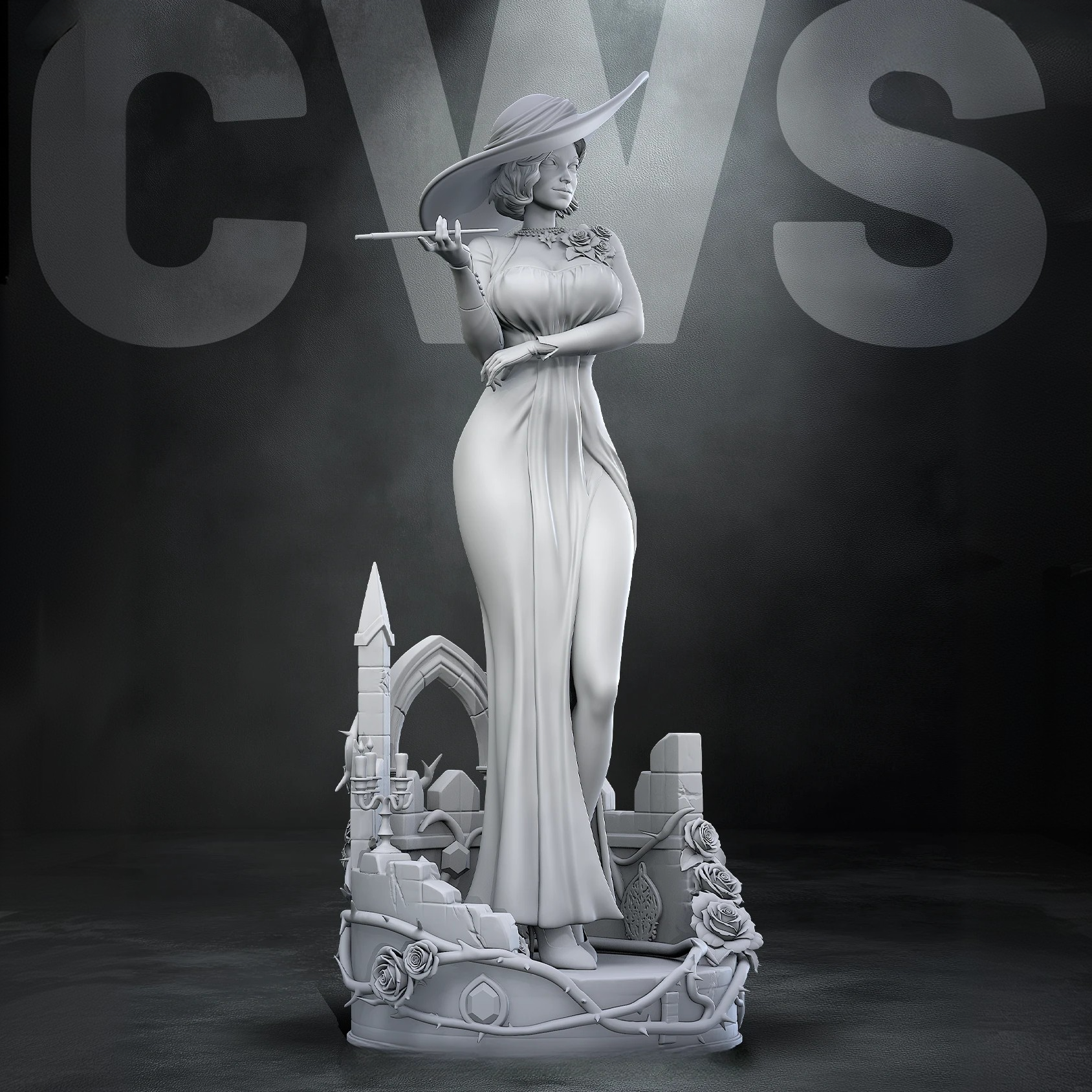 Фигура Lady Dimitrescu передаёт ощущение подавляющего присутствия и врождённого превосходства. Высокий силуэт воспринимается монументально даже в статике — не за счёт агрессии, а благодаря уверенной, почти ленивой позе, в которой читается привычка доминировать над пространством. Она не демонстрирует силу напрямую, она ею просто обладает. Образ выдержан в строгой эстетике: вытянутые пропорции, плавные линии, подчёркнутая элегантность. Одежда выглядит тяжёлой и цельной, создавая ощущение веса и статуса, а не декоративности. Детали не перегружают композицию, а работают на общее впечатление — холодной роскоши и старинного аристократизма. Лицо выполнено с тонким акцентом на выражение превосходства: спокойная полуулыбка, взгляд сверху вниз, ощущение безнаказанности. Эта фигурка передаёт Lady Dimitrescu не как монстра в прямом смысле, а как фигуру власти — величественную, опасную и пугающе спокойную, будто всё вокруг уже принадлежит ей по праву.