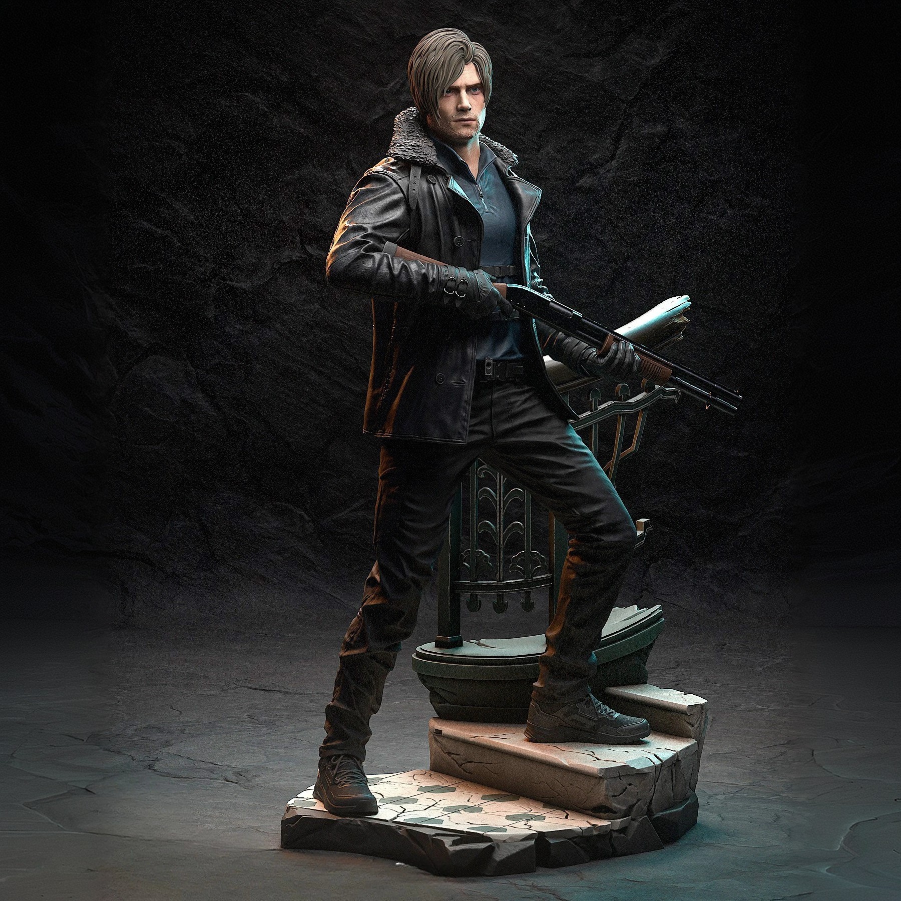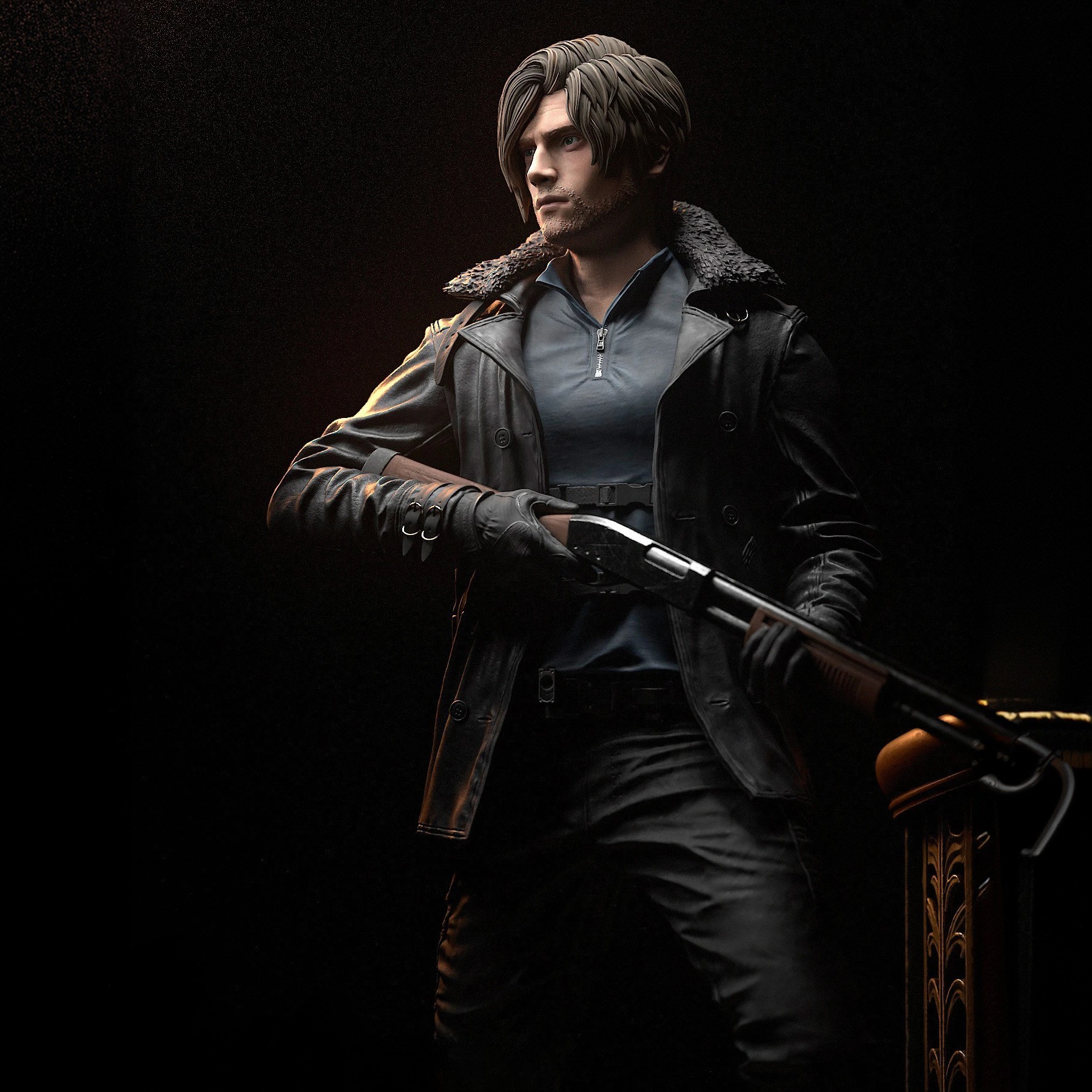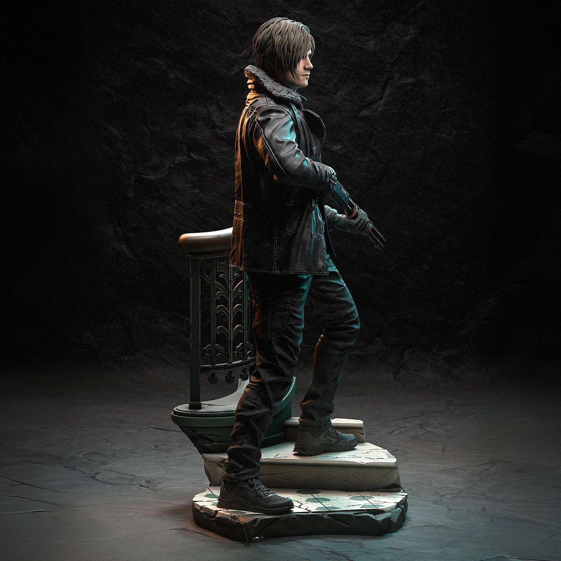 Фигура Leon S. Kennedy из Resident Evil Requiem передаёт его как ветерана, который выглядит старше, тяжелее и спокойнее, чем в прежних играх, но при этом остаётся узнаваемым. Внешне он выглядит более уставшим, фигура чуть приземистее, чем в Resident Evil 4, с чуть шире плечами, короткой, более практичной причёской и лицом, на котором заметны морщины и напряжённый, спокойный взгляд человека, проводящего уже не первый десяток миссий с биооружием. В фигурке подчёркнута его типичная тактическая эстетика: плотная куртка или тактическая рубаха, ремни, наплечная кобура, из‑под которой виднеется рукоять фирменного пистолета, например Alligator Snapper, а в руках ощущается привычка держать винтовку, дробовик или тот самый топор, который в Requiem часто используется как вспомогательное оружие. В позе чувствуется Leon‑овская манера — чуть сутул, но уверенно, готовый к отстреливанию, парированию атак и быстрому отходу, как в режиме смены перспективы между первым и третьим лицом. Эта фигура фиксирует его как агента DSO, который, несмотря на усталость и годы службы, снова возвращается в био‑кошмар, чтобы сопровождать и поддерживать новую героиню Grace, не только охранять, но и сражаться до конца, как в прошлых играх. В таком образе он остаётся собранным, немного саркастичным, но надёжным героем, опирающимся на опыт, оружие и спокойную, рассчитанную уверенность, а не на эмоциональную экспрессию.
