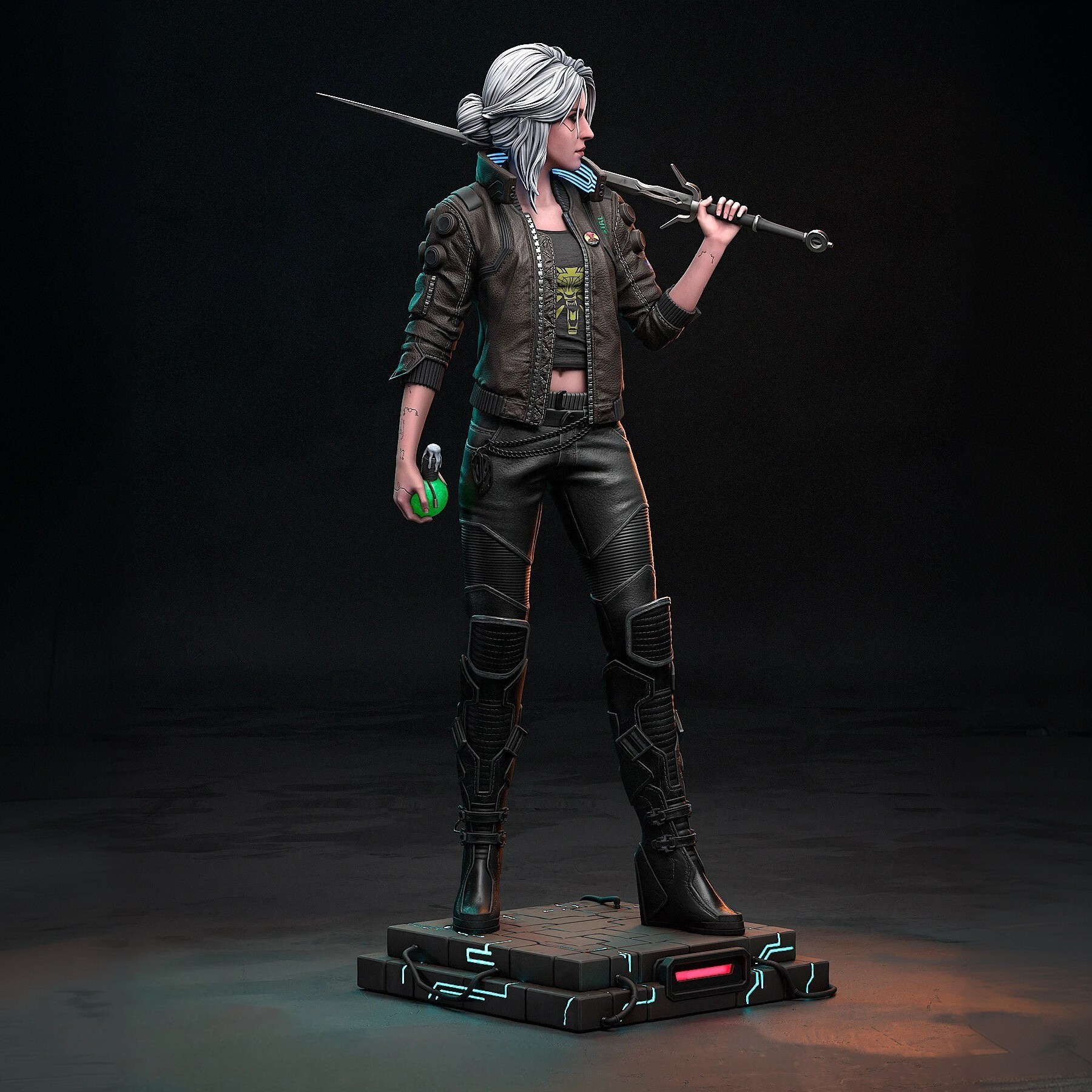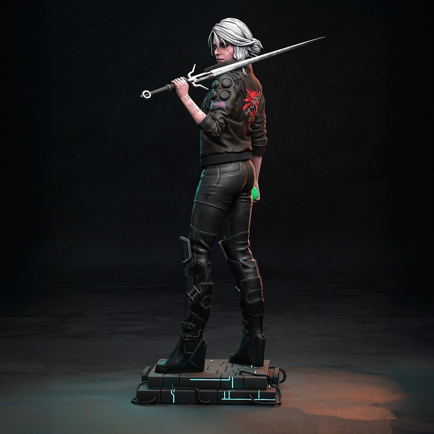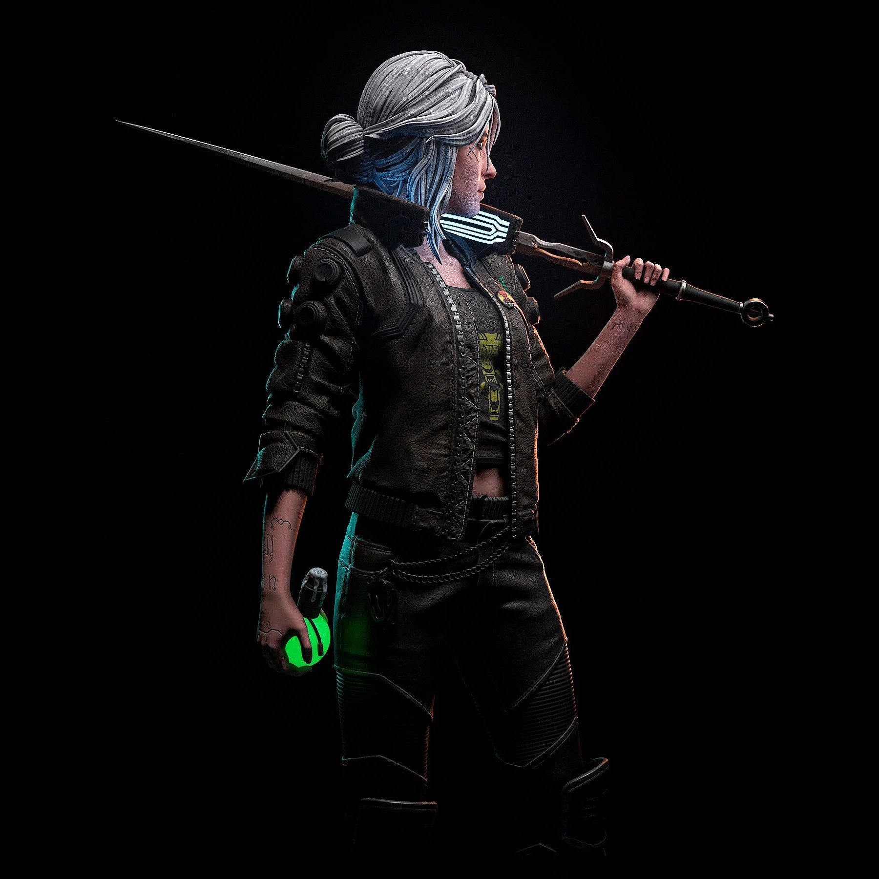 Фигура Киберпанк Цири из подчёркивает её решительность и боевую ловкость. Поза динамичная, с лёгким наклоном корпуса и напряжением в руках, создающим ощущение готовности к мгновенному действию. Детали одежды и кибернетических имплантов тщательно проработаны: складки, текстуры и элементы экипировки выглядят объёмно и правдоподобно. Лицо передано с точной мимикой, отражающей сосредоточенность и решимость, благодаря чему образ остаётся читаемым даже на небольшом масштабе. Баланс позы, пропорций и деталей формирует цельный и выразительный силуэт, подчёркивающий характер героини и атмосферу вселенной.