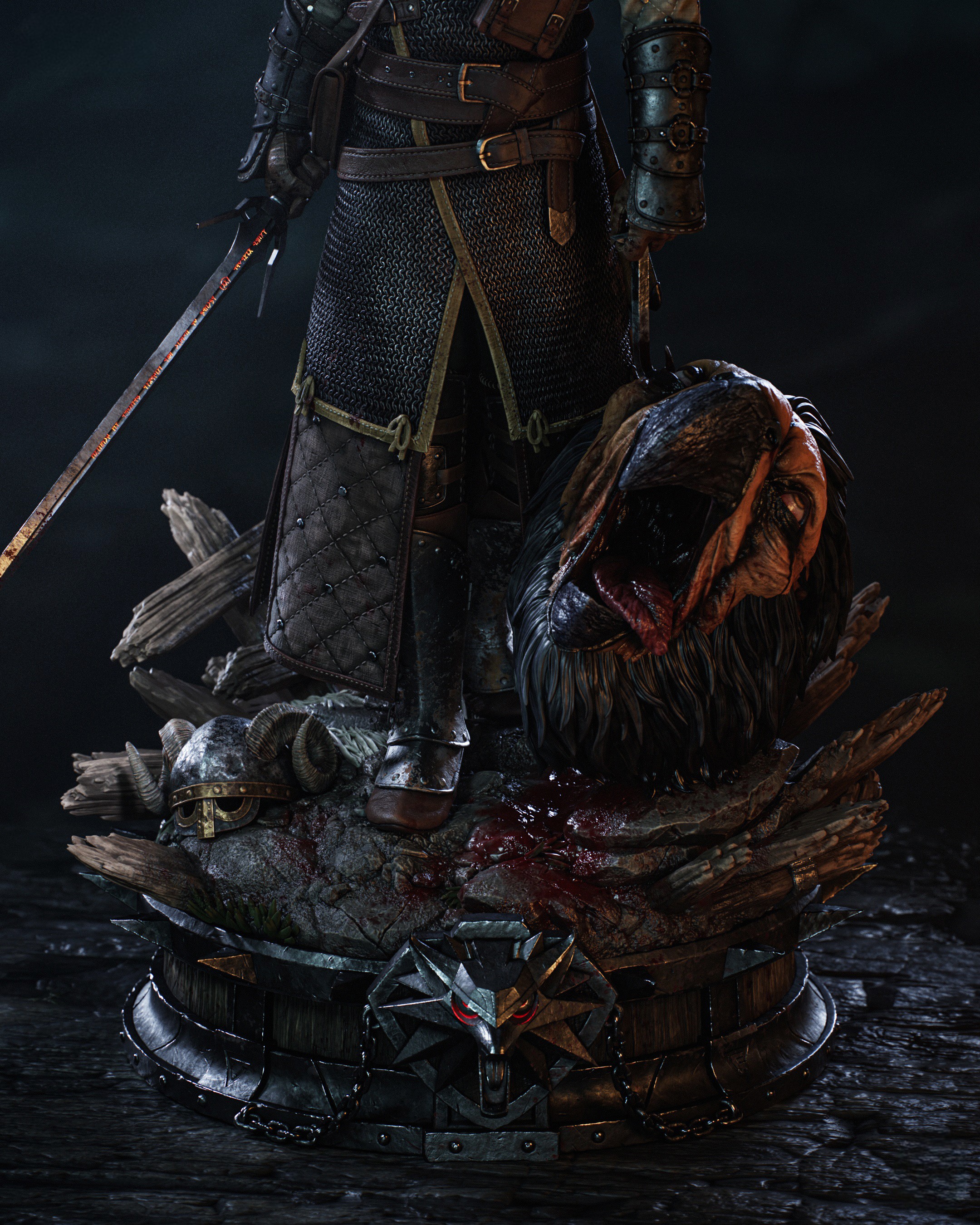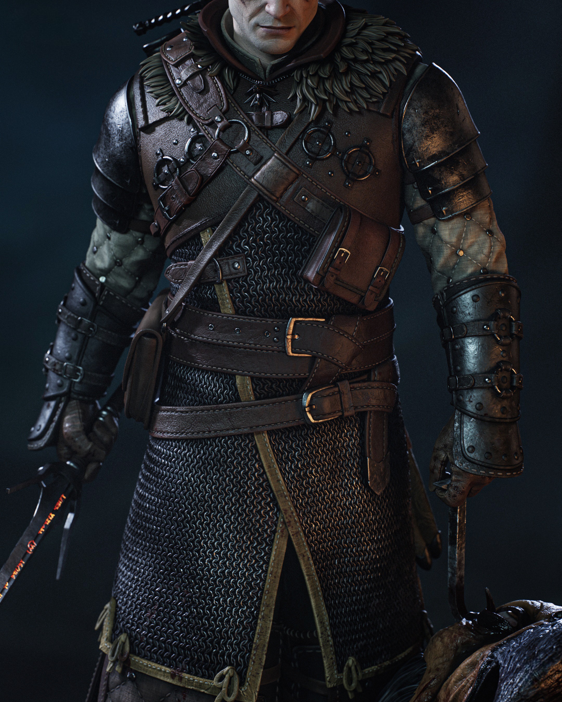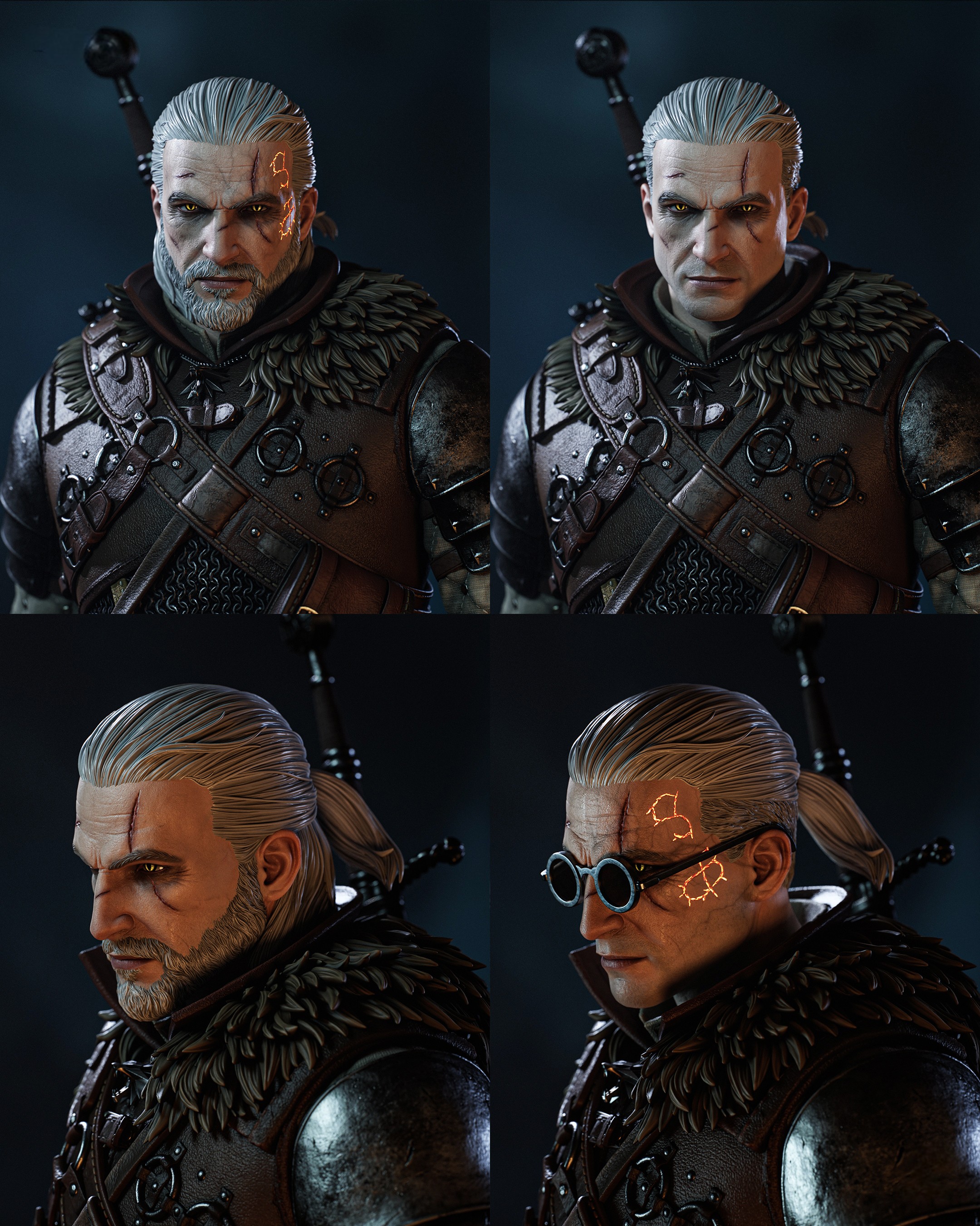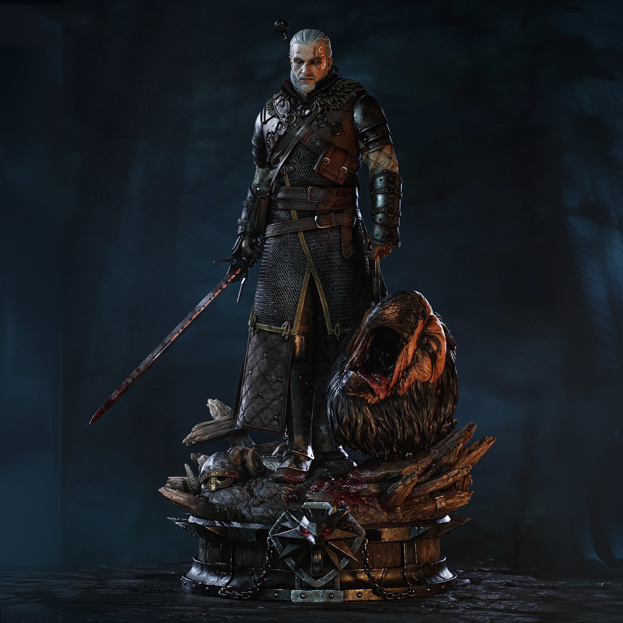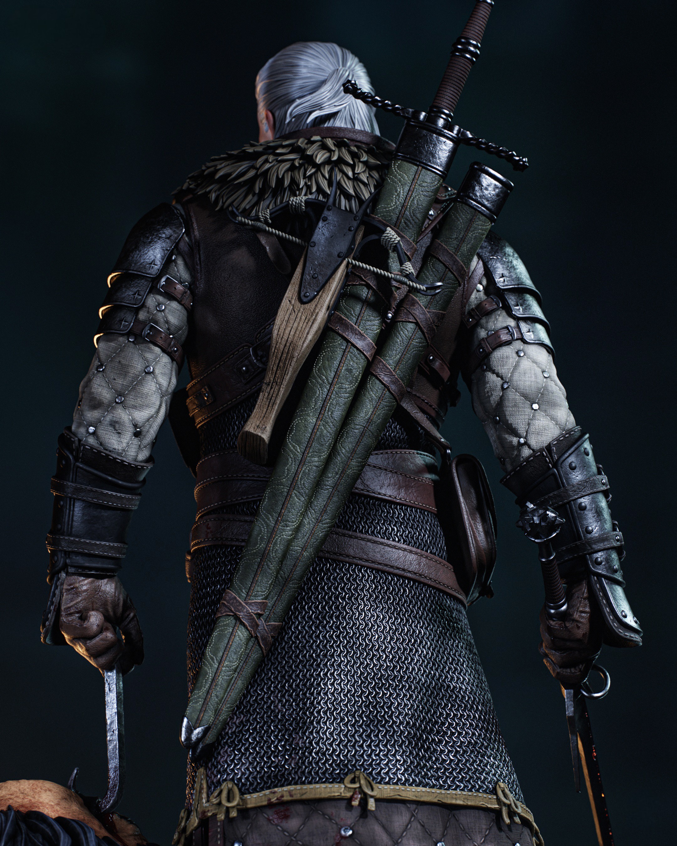 Фигура Geralt из The Witcher передаёт его как профессионального охотника, который не ищет славы, но всё равно оставляет за собой следы разрушения. В его образе чувствуется сдержанная усталость людей, видевших слишком много, и одновременно внутренняя боевая собранность того, кто привык ходить по краю между монстрами и людьми. Поза фигурки — уверенная, немного склонённая вперёд, как будто он уже оценил маршрут, врага и расстояние до ближайшего укрытия, но пока не торопится делать первый шаг. Длинные белые волосы, шрам над глазом и холодный, слегка отстранённый взгляд сразу выдают в нём привычного ко всему ветерана. В фигурке подчёркнуты характерные элементы доспехов: бронированная кожаная куртка, наплечники, наручи и ремни, удерживающие клинки, — всё это выглядит не как театральный костюм, а как снаряжение солдата, который прошёл через сотни боёв. Серебряный меч на поясе и стальной на спине будто уже вспоминают каждую схватку, которую им пришлось вести против самых невероятных существ. Эта фигура фиксирует Geralt в момент перед очередной охотой — когда он ещё не вступил в бой, но уже чувствует запах монстра и тяжесть решений, которые с ним связаны. В такой интерпретации он становится символом тихой, упрямой морали: человека, который знает, что мир не делится на чёрное и белое, но всё равно каждый раз делает свой выбор, потому что именно так и живут ведьмаки.